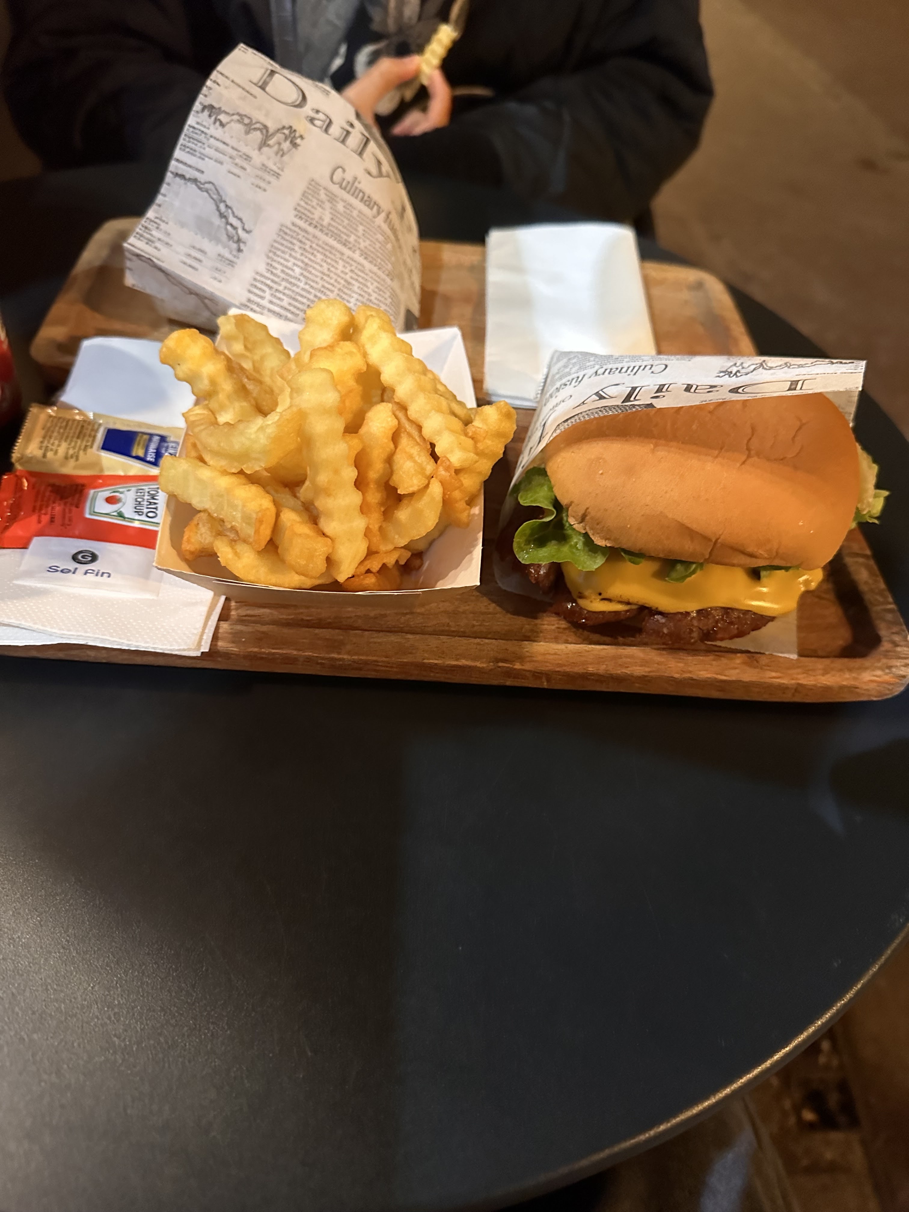 Smash burger sans grand intérêt, ça va pour dépanner mais je prefère largement le roster qui est à deux pas de là. Le burger n’a pas beaucoup de goût surtout le cheese burger qui baigne entre ketchup et le fromage, je pense qu’on peut faire mieux pour un menu enfant, je ne recommande pas