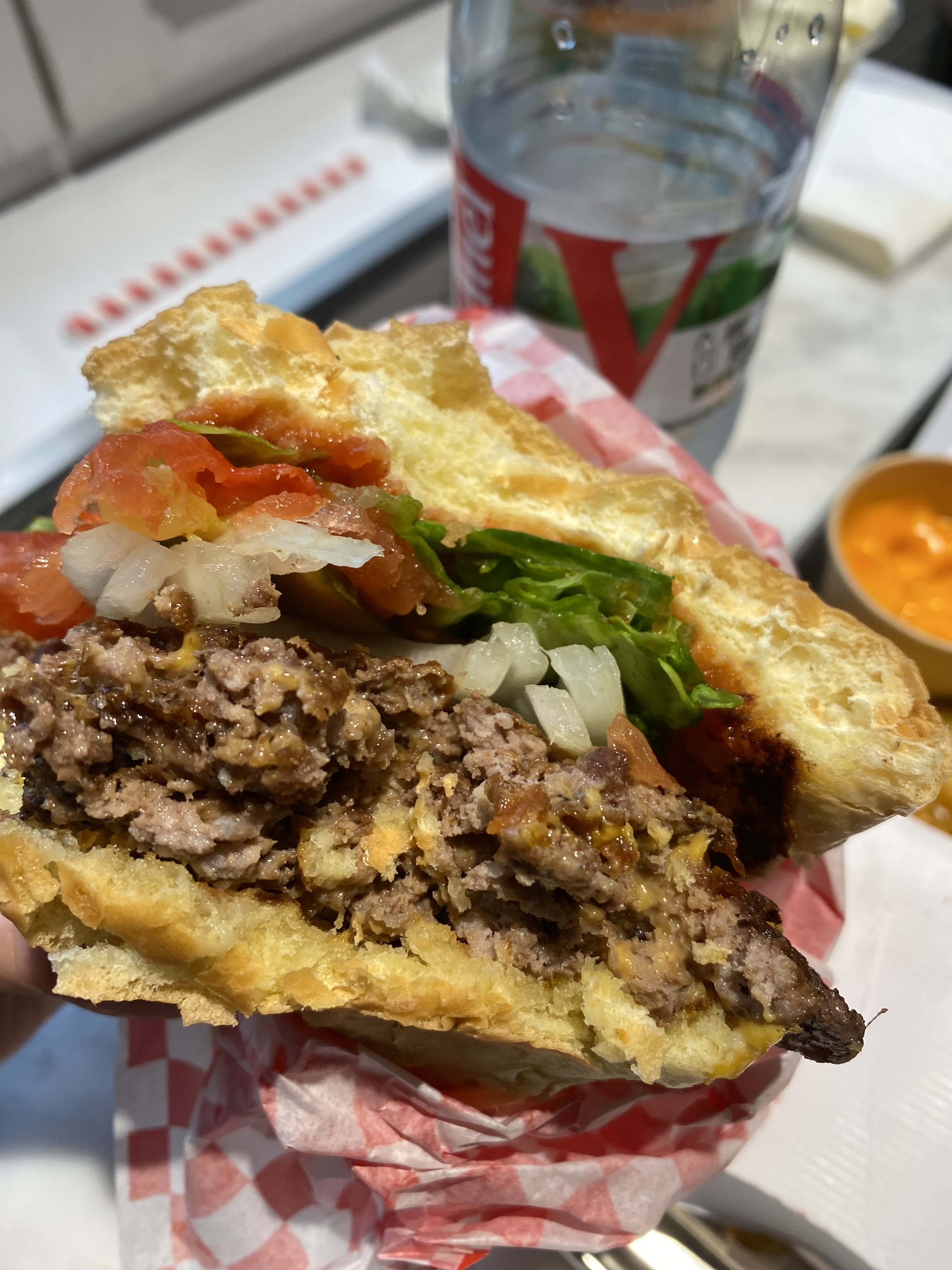 C'était bon mais moins qu'avant quand l'enseigne était steak&shake.. personne dans la salle niveau ambiance très très calme, un peu d'animation en cuisine pour avoir l'impression que c'était joyeux..