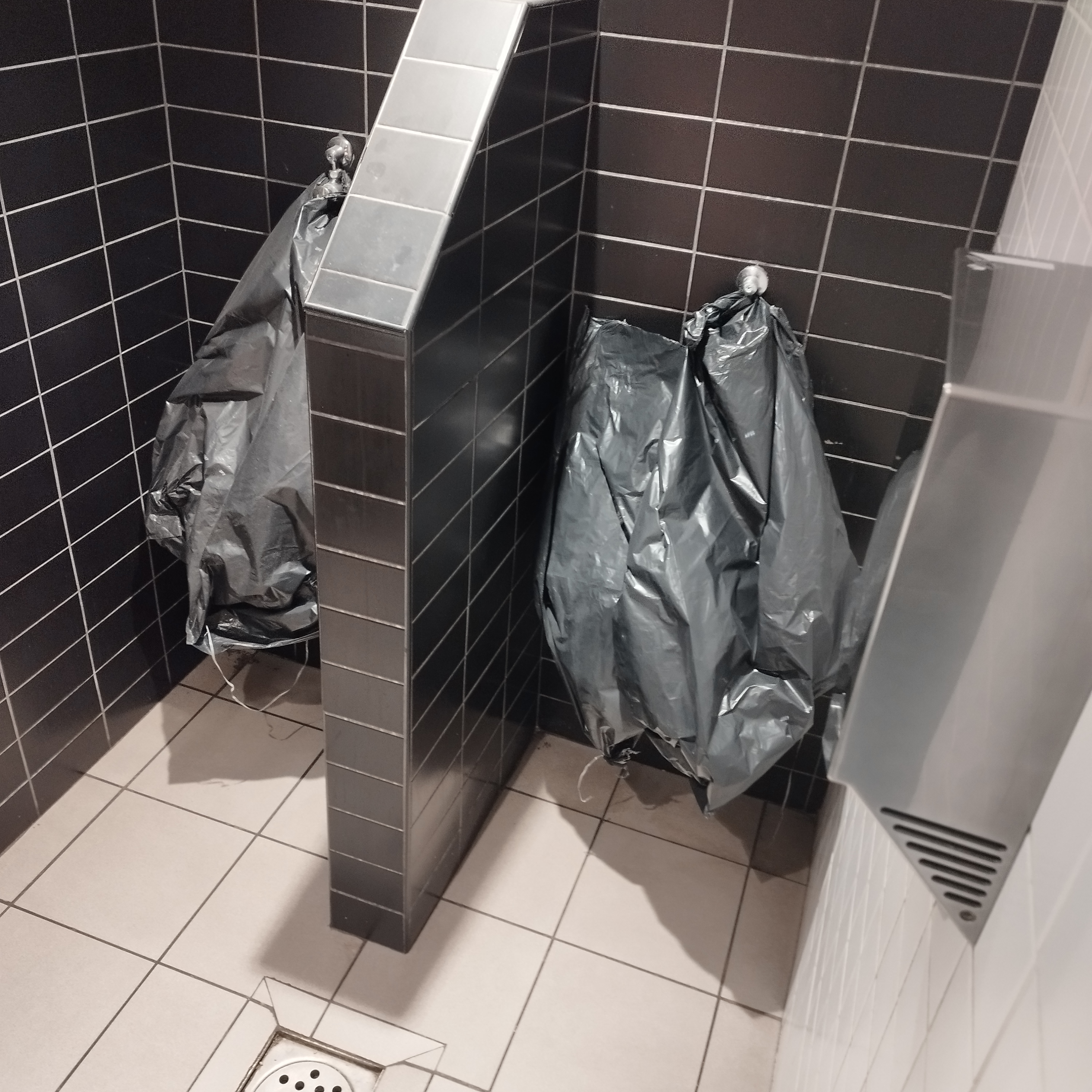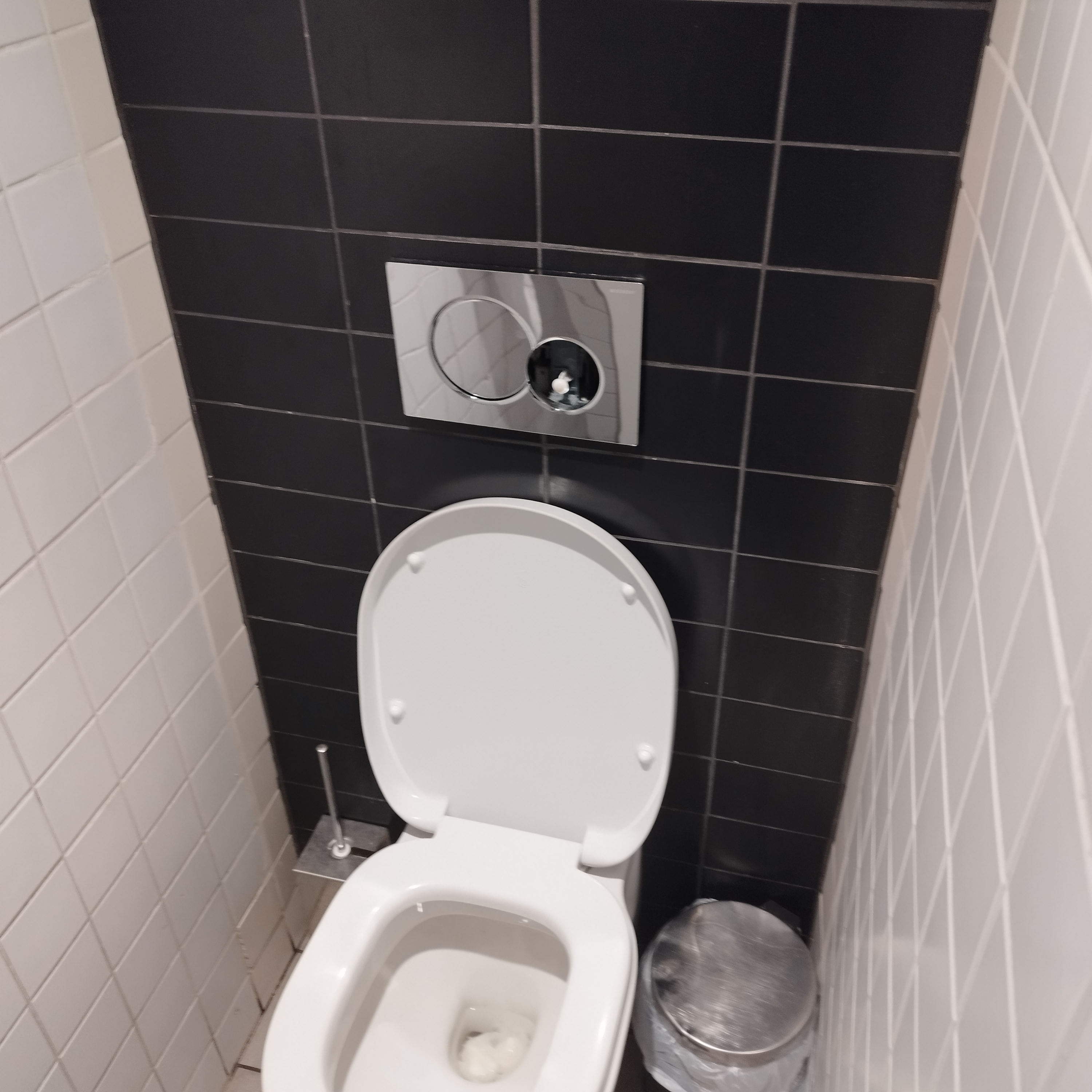Sol collant partout dans l'établissement Carreaux cassés et décollés au sol WiFi qui ne fonctionne pas Toutes les toilettes sont avec les boutons des chasses d'eau cassés Les pissoirs hommes HS couverts par des nylons noirs