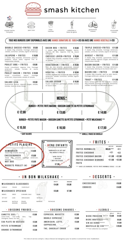 Un smash kitchen de qualité ! Allez y c’est super bon et niveau prix qualité c’est pas rentable ! Je note 5/5 et j’adore ce smash kitchen!