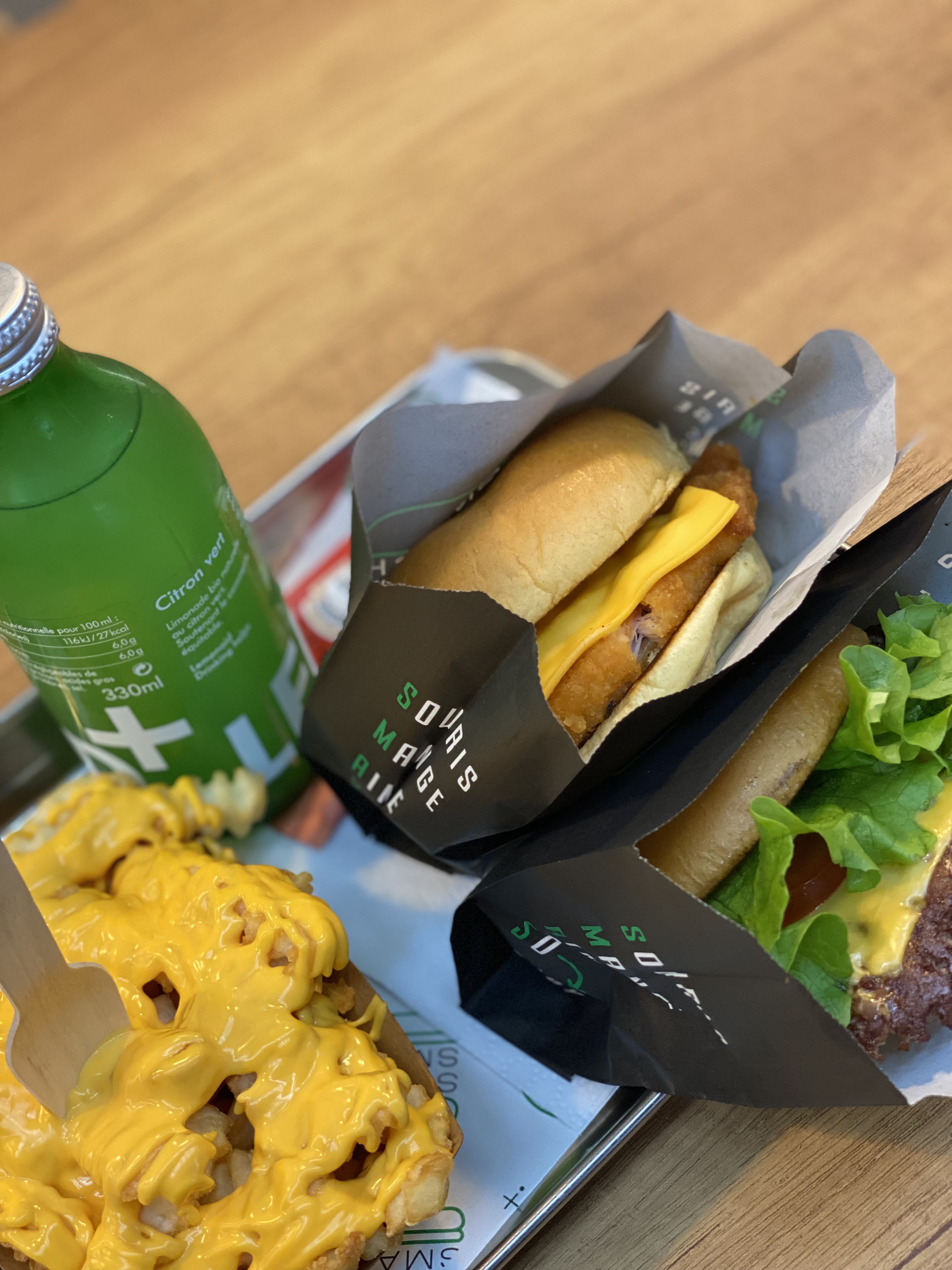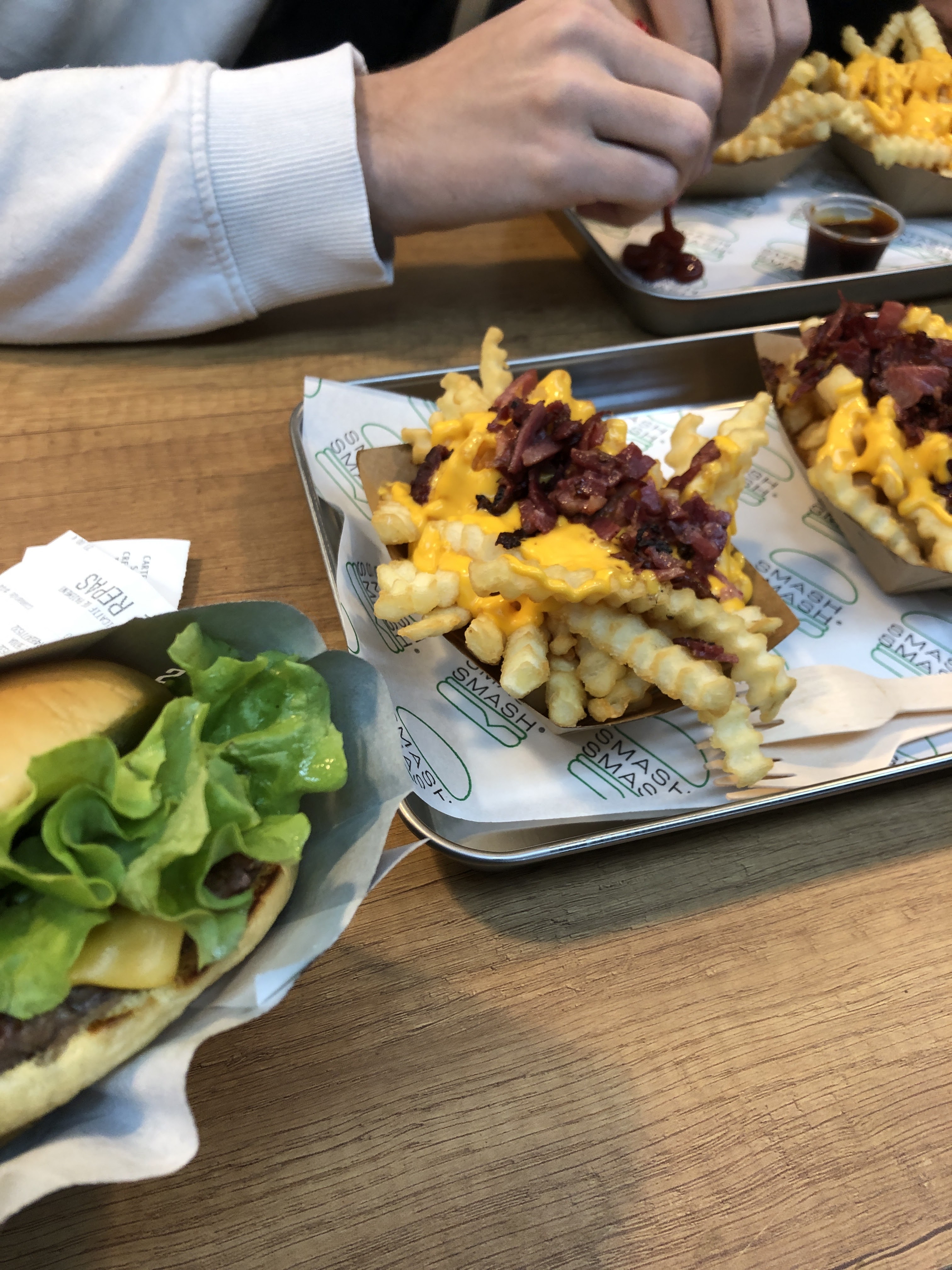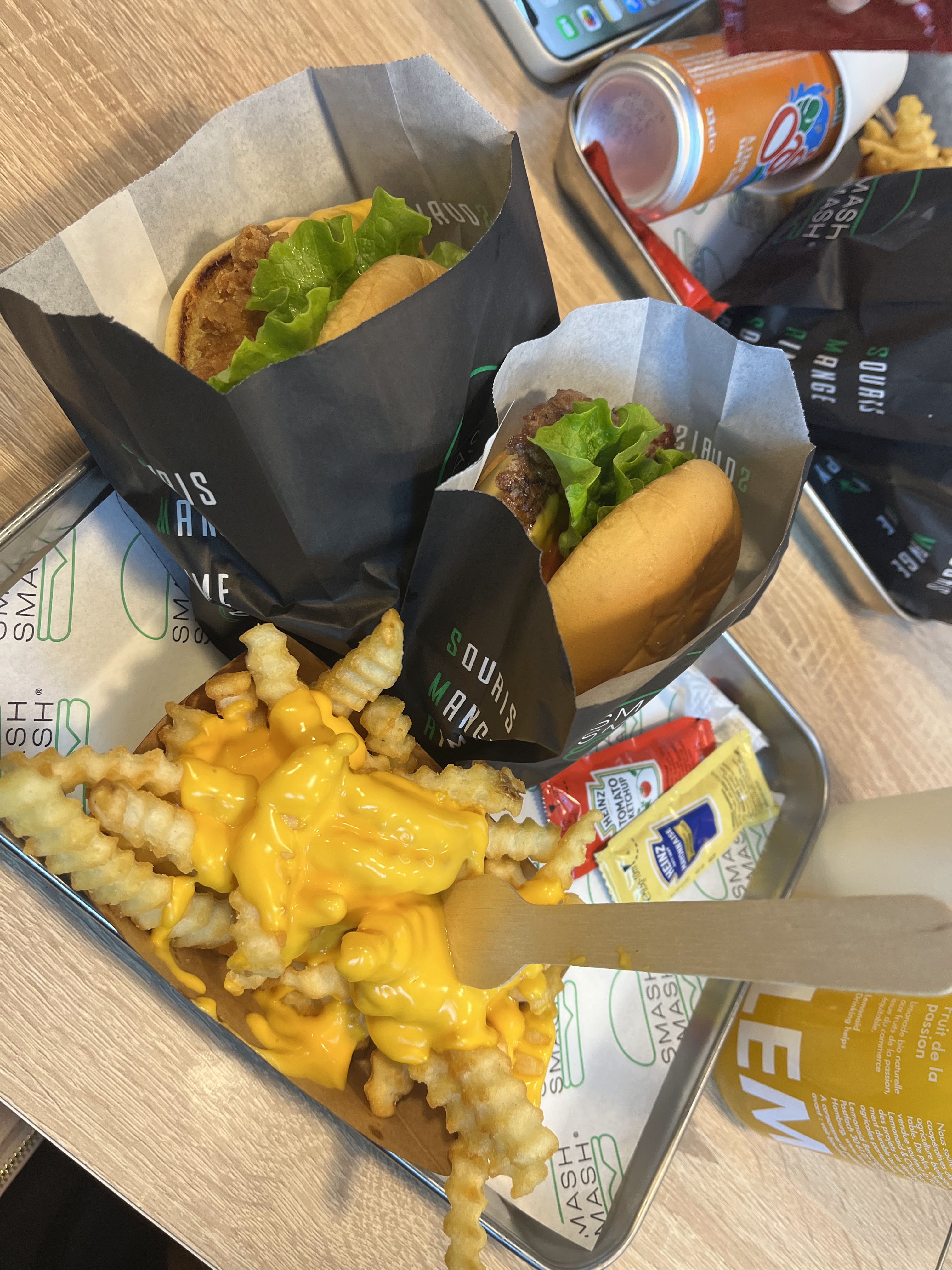 C’était très bon, je ne connaissais pas du tout le concept d’un smash burger la jeune fille a la caisse m’a très bien expliqué « smasher veux dire écrabouiller littéralement. En somme le steak sera caramélisé à l’extérieur et très tendre a l’intérieur, tout ça dans un pain briochée » elle m’a vendu du rêve et ne m’a pas mentis haha je recommande vivement smash smash JE kiffe !