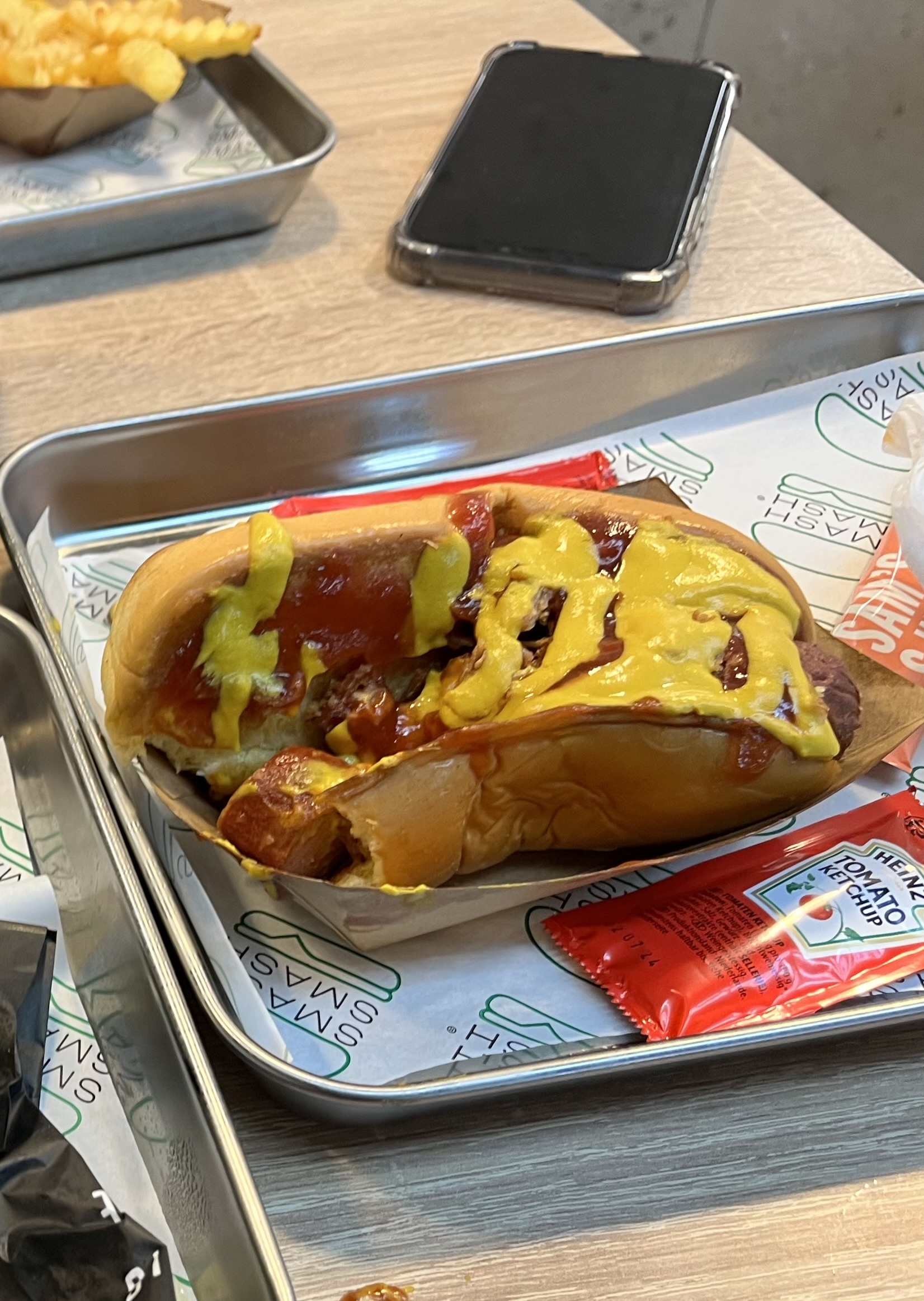 Accueil chaleureux, service rapide. Une excellente adresse que je recommande vivement. Les smash Burgers et les Hot dog sont délicieux avec des très bonnes sauces. On sent bien le goût de la viande ainsi que la qualité des produits. Les poulets tenders un vrai régal, je reviendrai !!!!! Merci smash smash