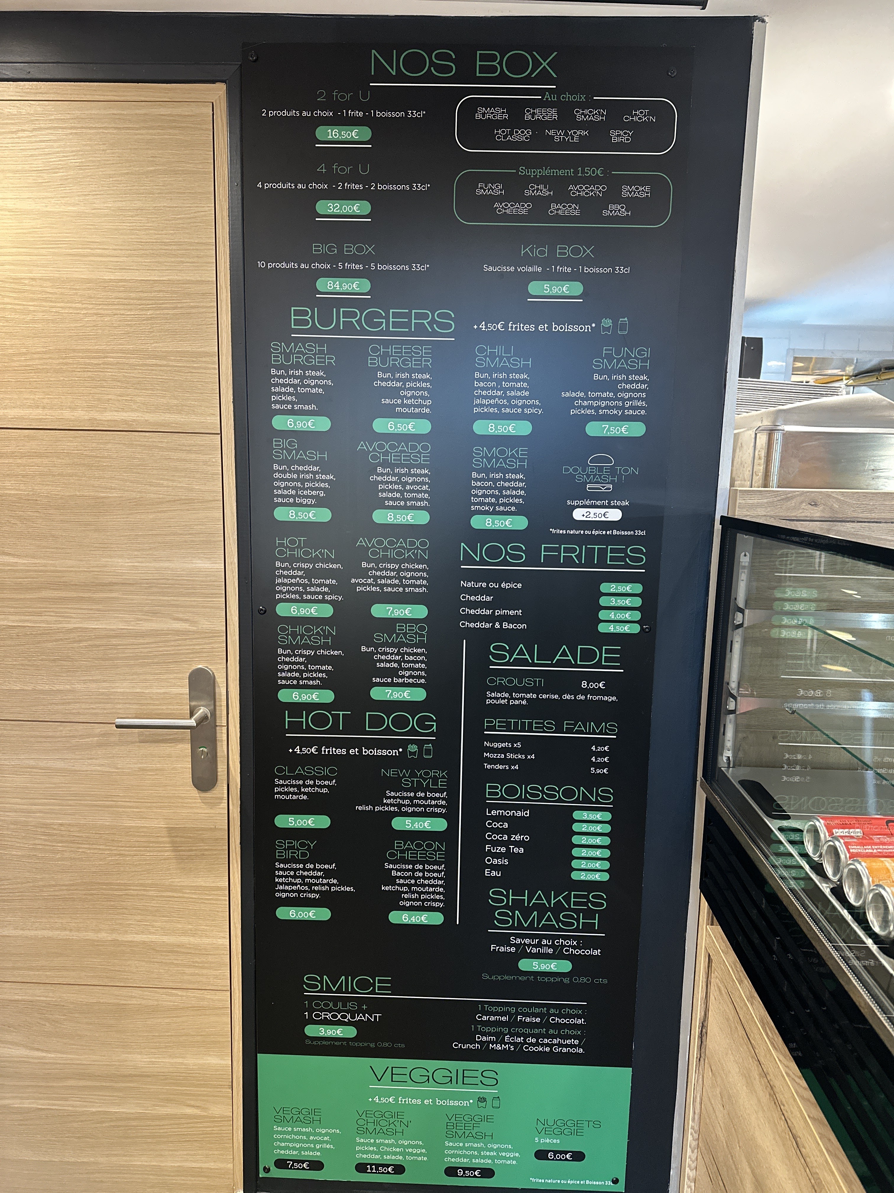 Le Smash burger y est très bon, à la fois le pain et la viande. Le service est très rapide. Je met 4 étoiles car les frites sont beaucoup trop salées.