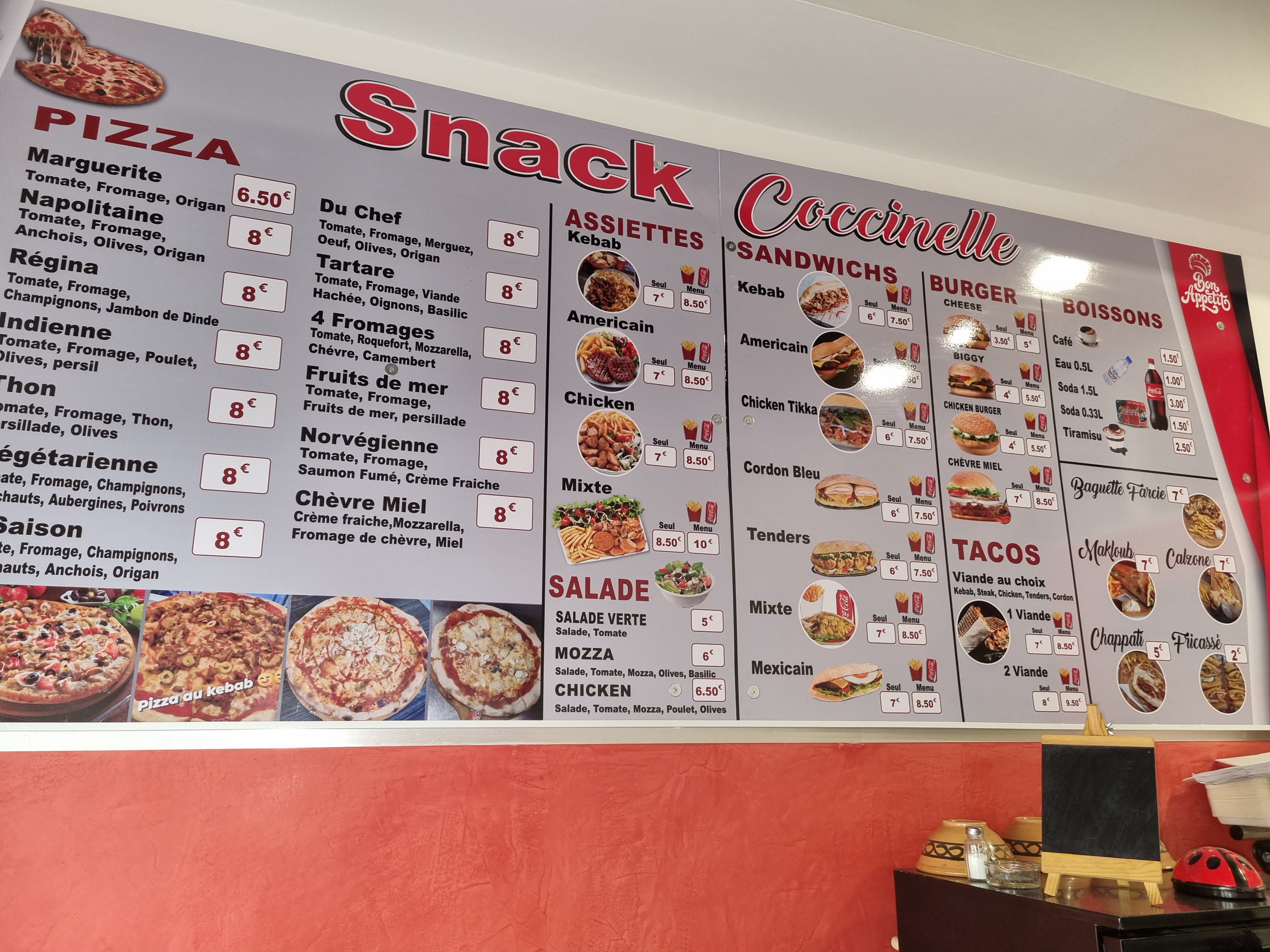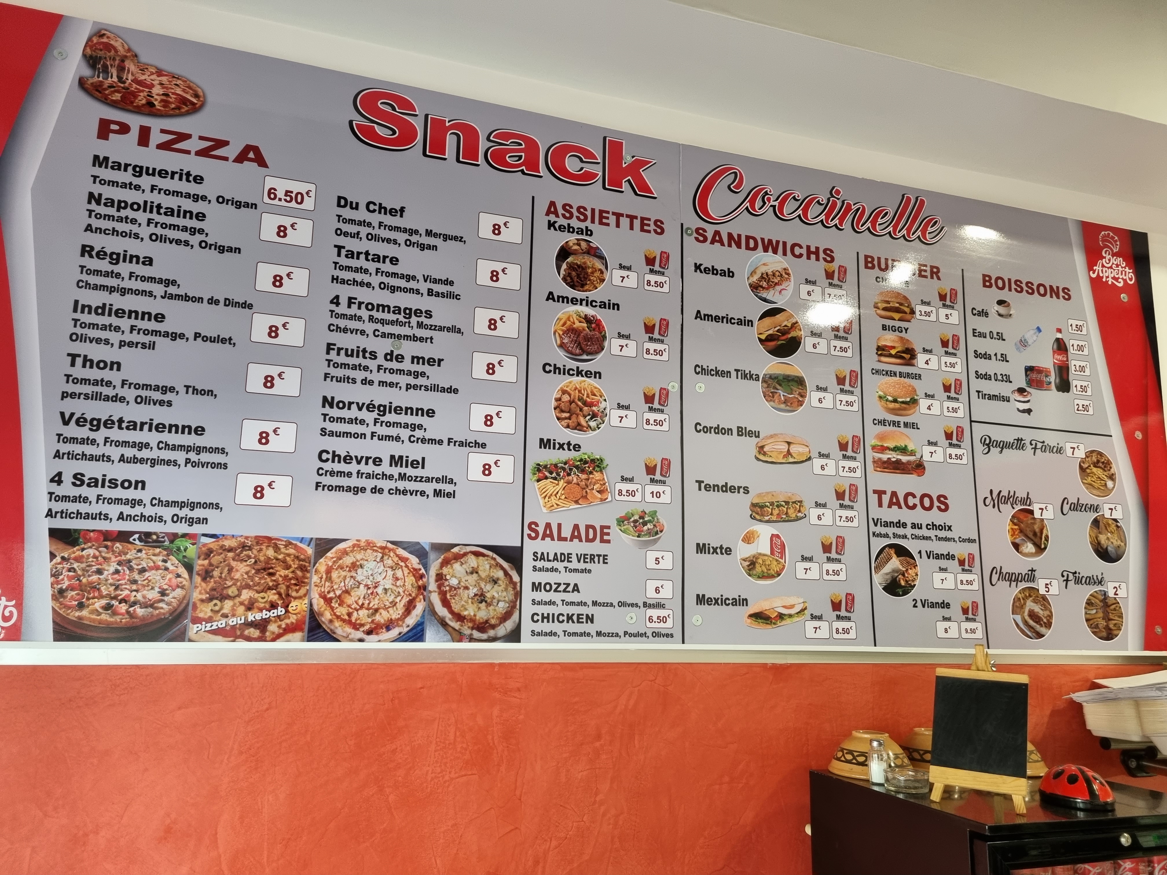 Très bon snack les burgers et les tacos son très bon plus qu'à coûter la pizza
