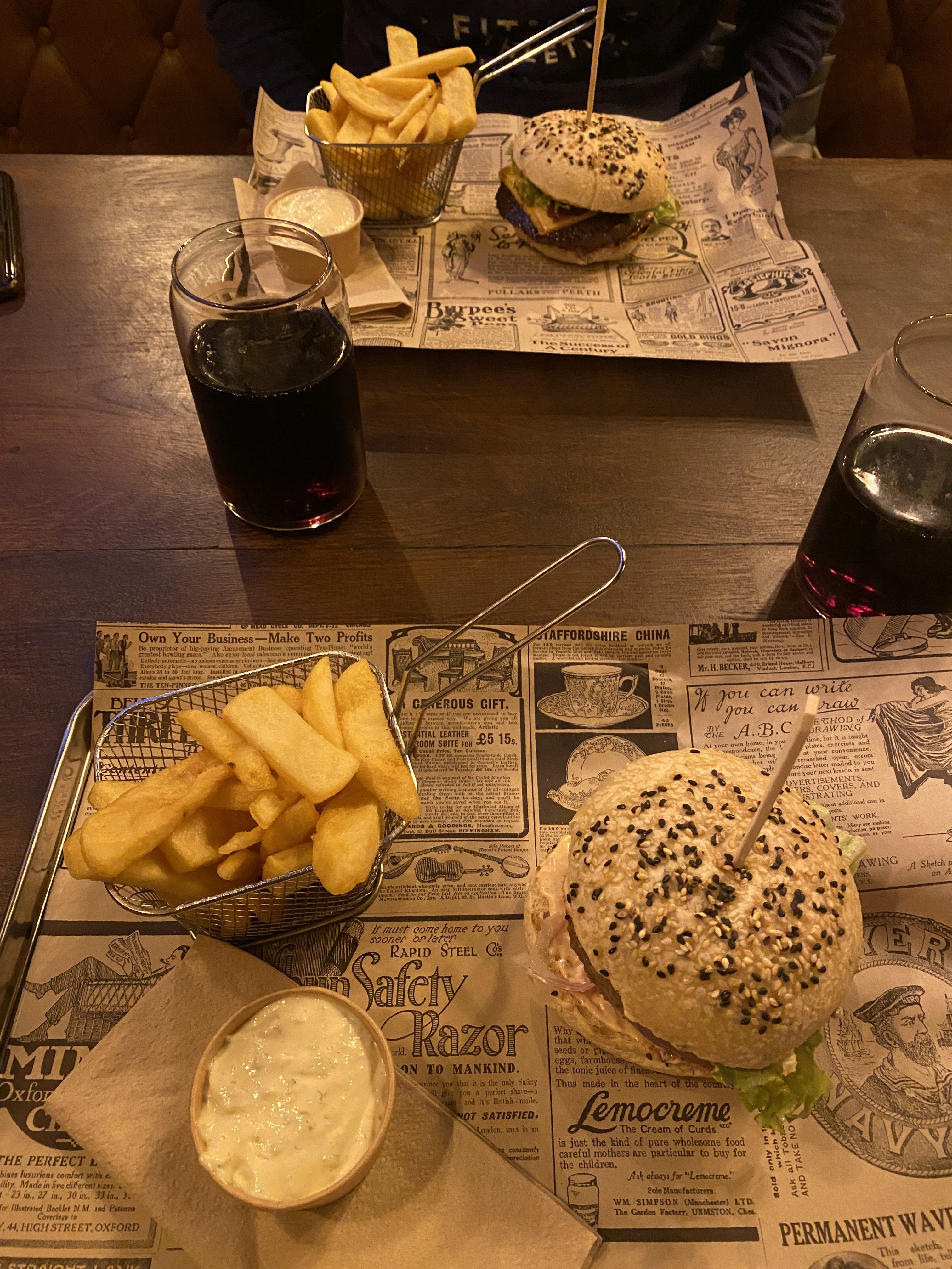 Très bons burger, grand choix de bières. Par contre une pinte c'est 50cl en France, pas 44...