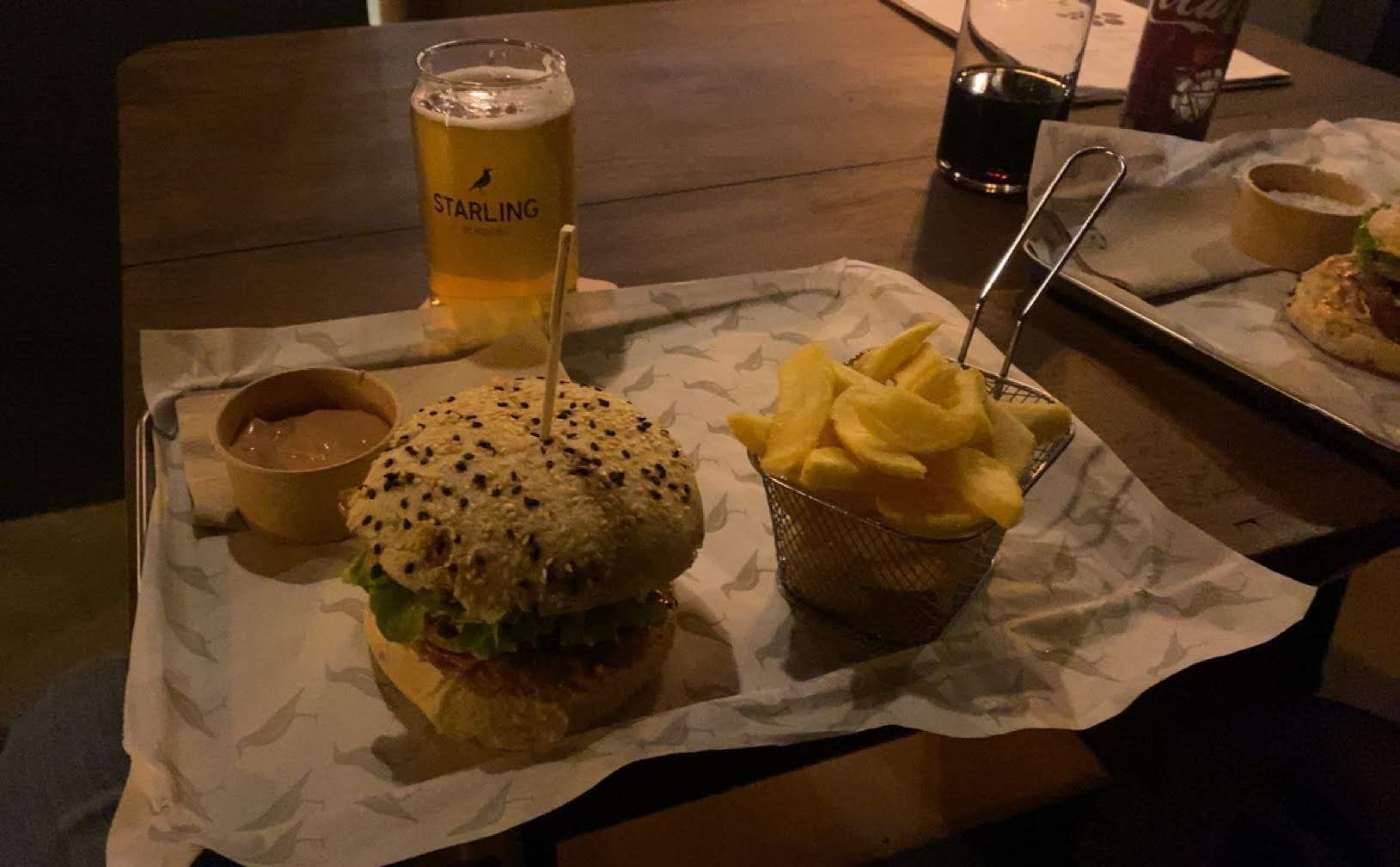 Je commande souvent chez Starling Burger et ai mangé 2 fois sur place. Les Burgers et les bières sont excellent et le service sympathique. Installée dans la salle au sous sol avec un groupe d’amis, nous n’étions pas très confortablement installés : la table assez basse posée sur des tonneaux est stylée mais pas pratique.