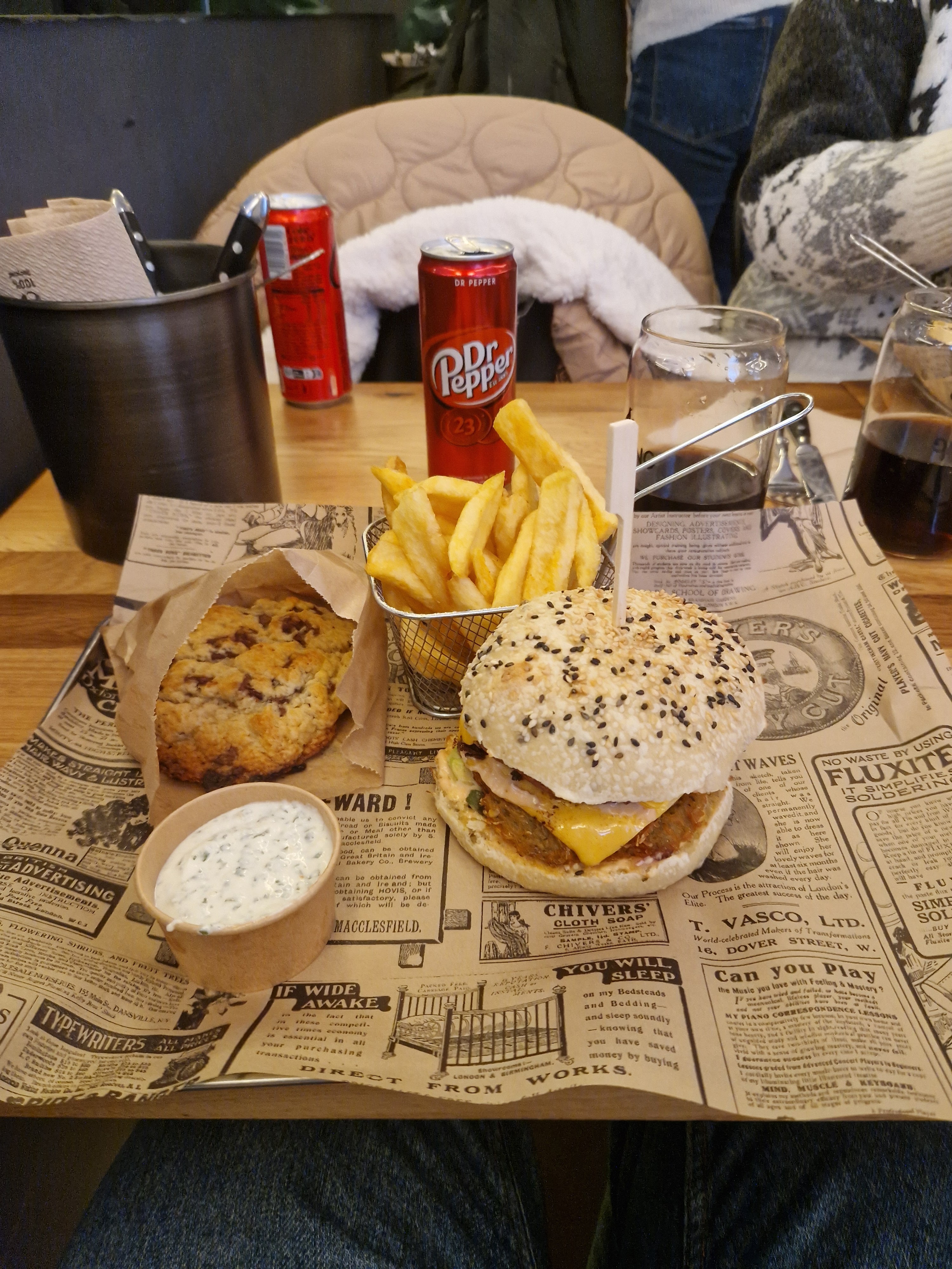 Trop gras, frite pas très qualitative, la sauce était pas mal, les cookie vraiment sec et pas fou, j'ai préféré strassburger.