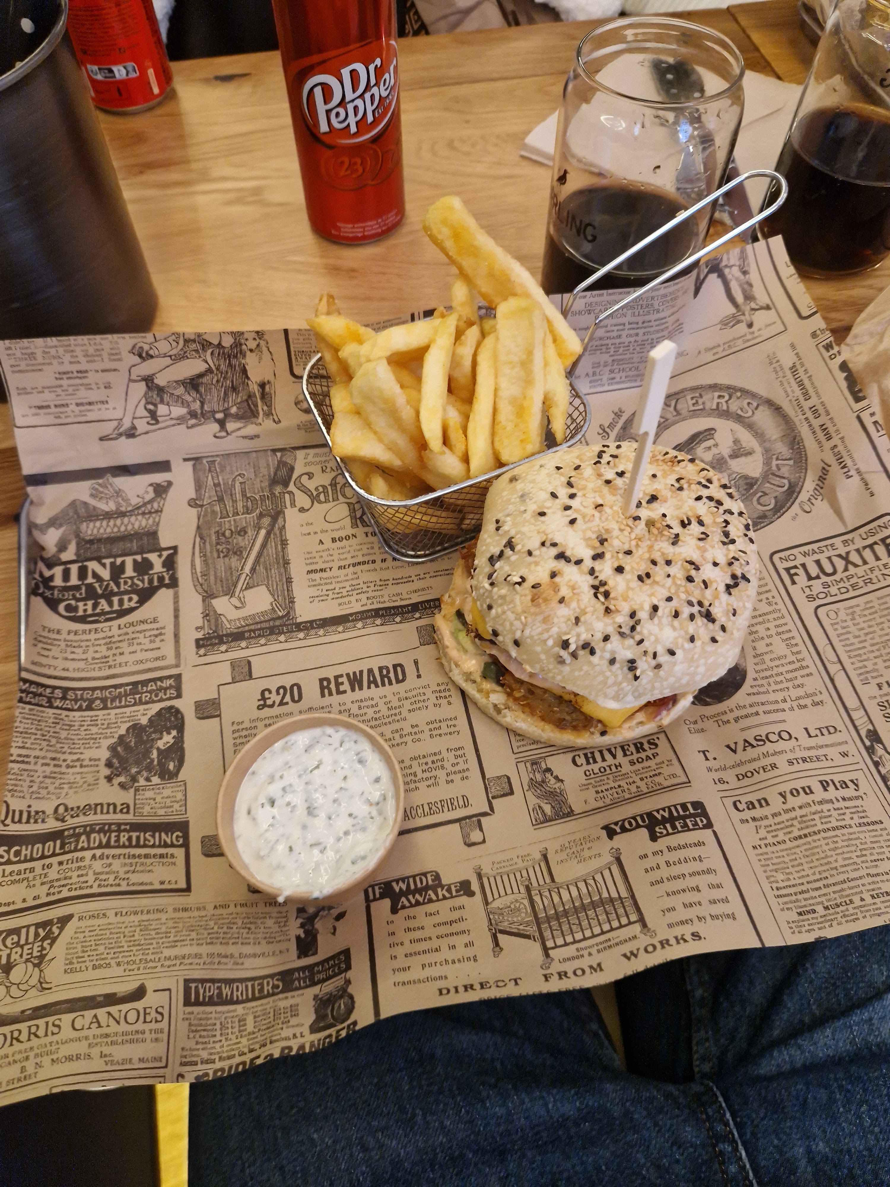 Découverte de ce lieu plutôt sympathique avec de l'espace. Nous avons eu un très bon accueil. Les burgers étaient très bons mais tout de même cher (ok c'est du fait maison mais bon...cela reste un burger) les frites aussi étaient bonnes mais tout de même un peu cher, ça aurait été bien d'être un peu plus généreux sur la portion au vu du prix. Nous avons décidé de prendre des cocktails, alors ils étaient bon, mais pas assez de dose d'alcool et effectivement cher aussi... Nous y reviendrons cependant sûrement pour y goûter les bières.