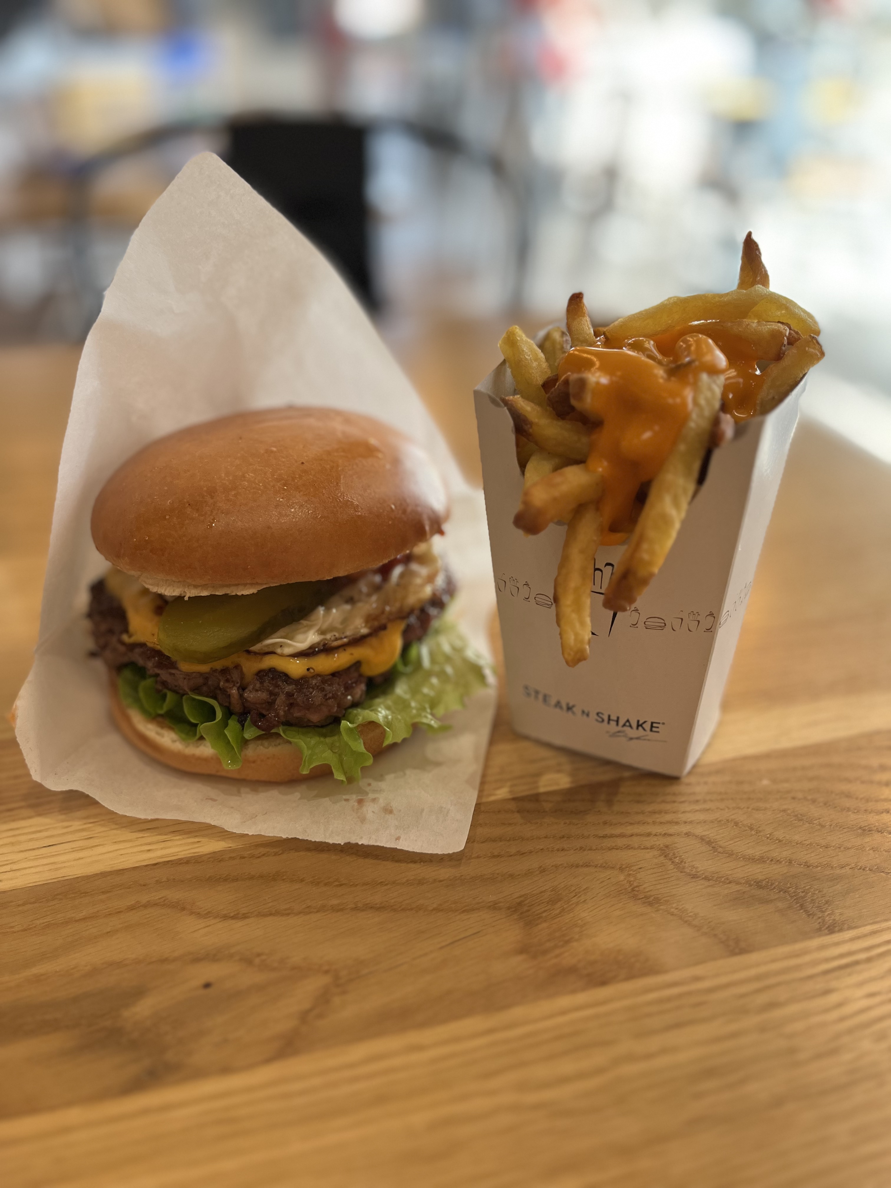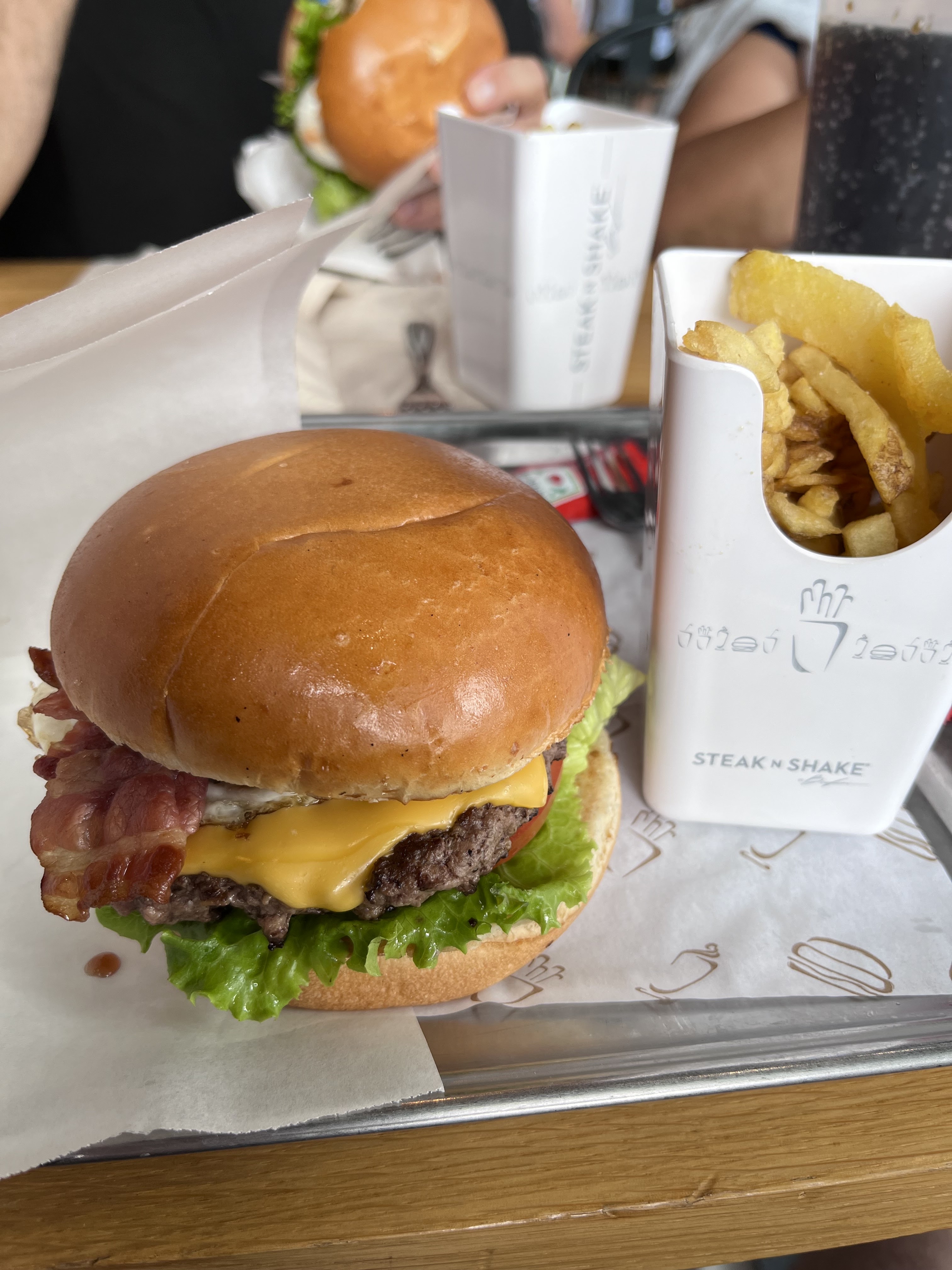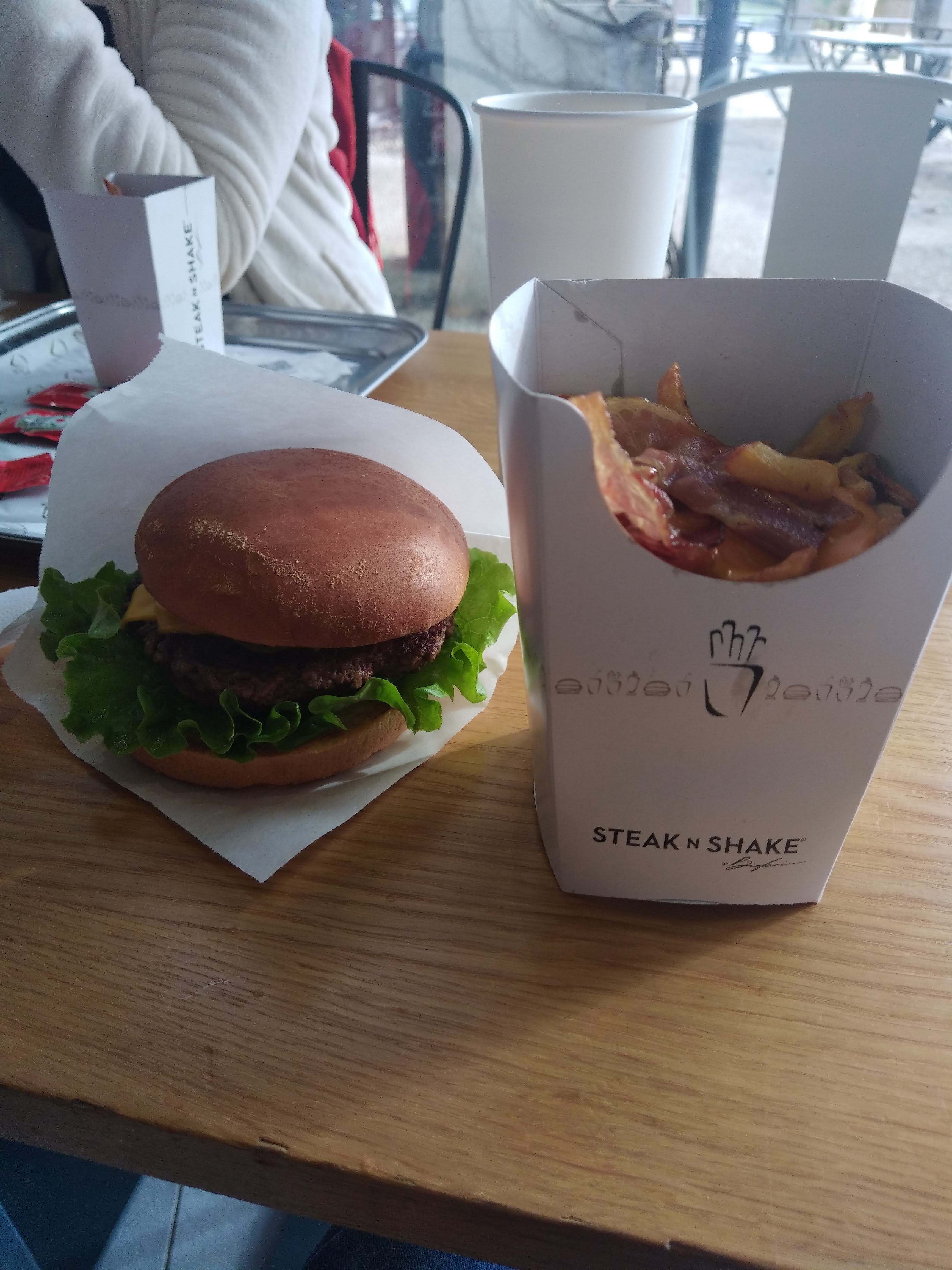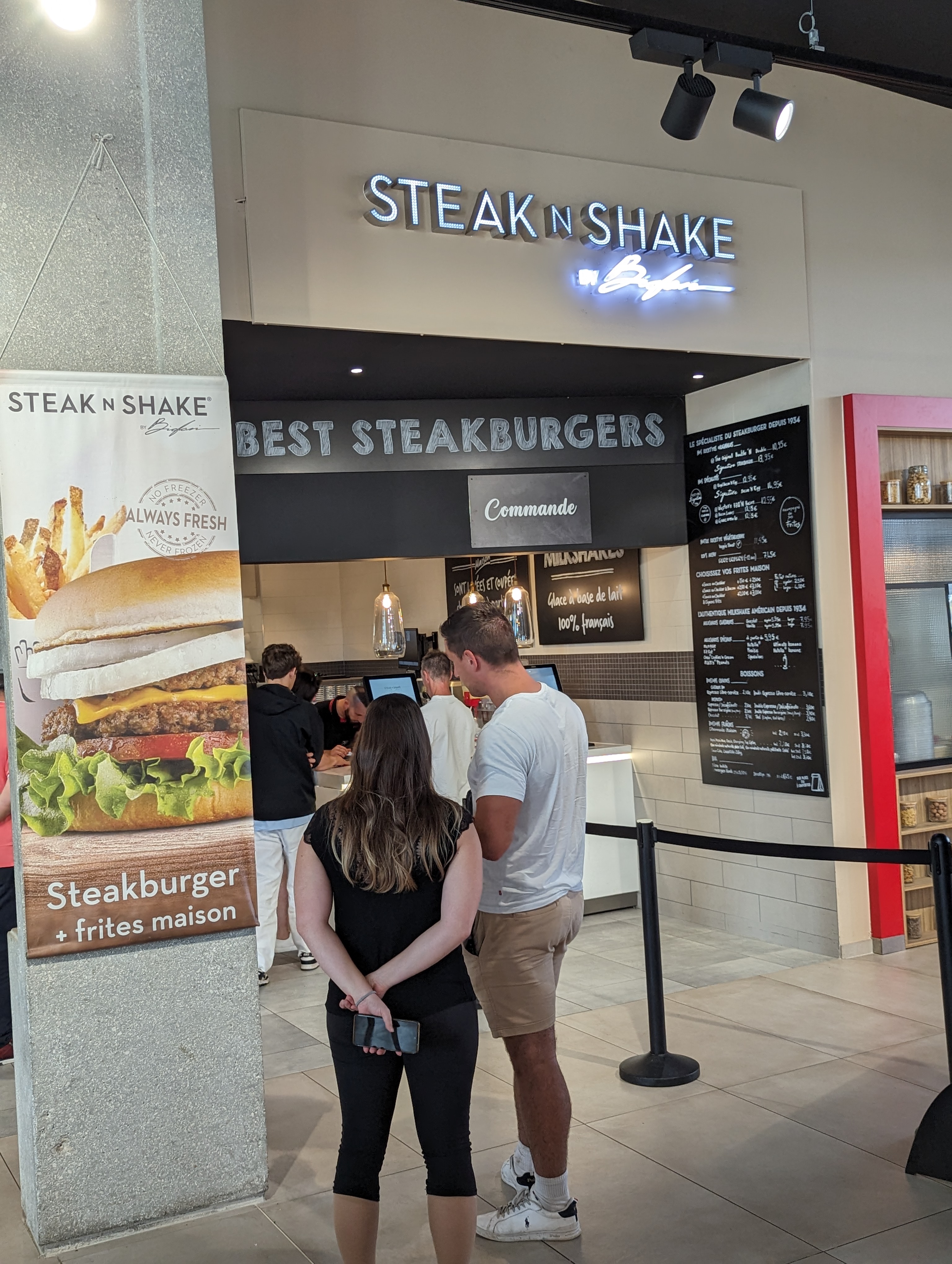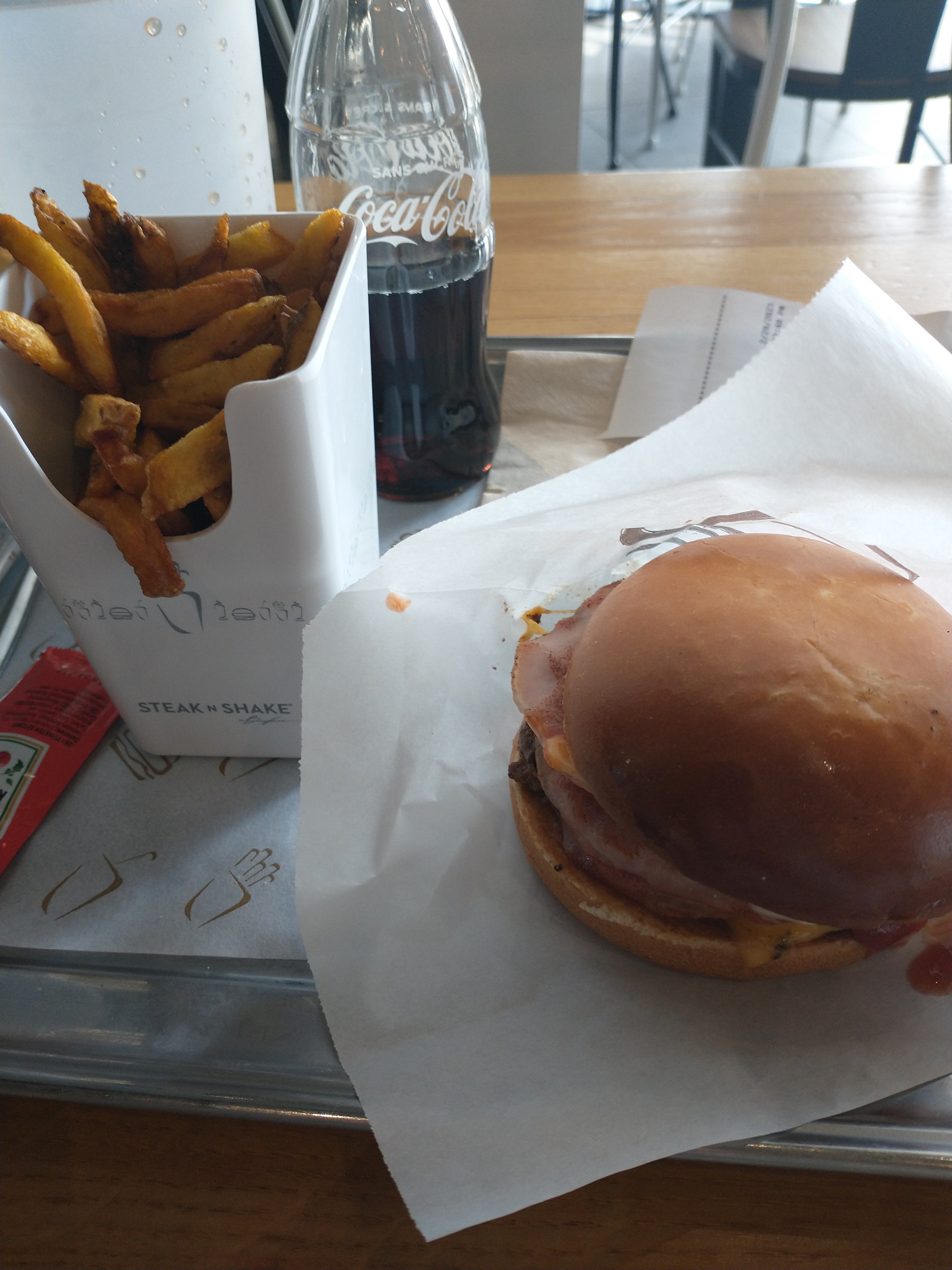 Très content d'avoir goûté à nouveau Steak N shake depuis la fermeture de celui de Paris. La carte a changée en des burgers plus classique depuis mais toujours aussi bons, un plaisir de retrouver les frites et la limonade
