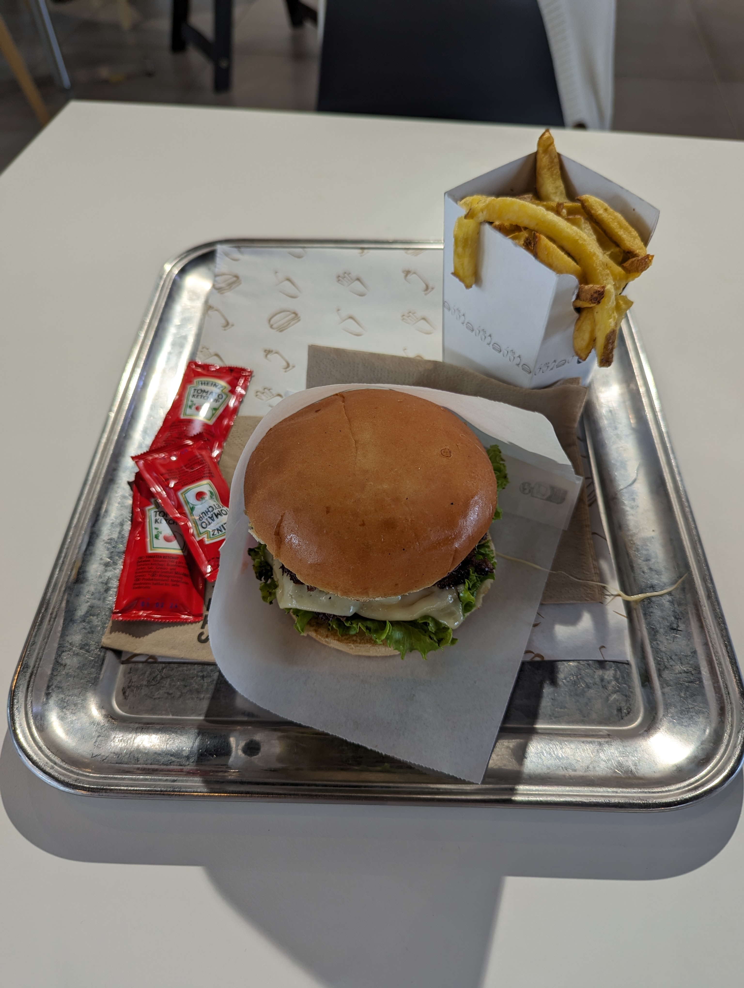 10 balle 50 le burger et sa frite... Au moins faudrait toaster le pain .
