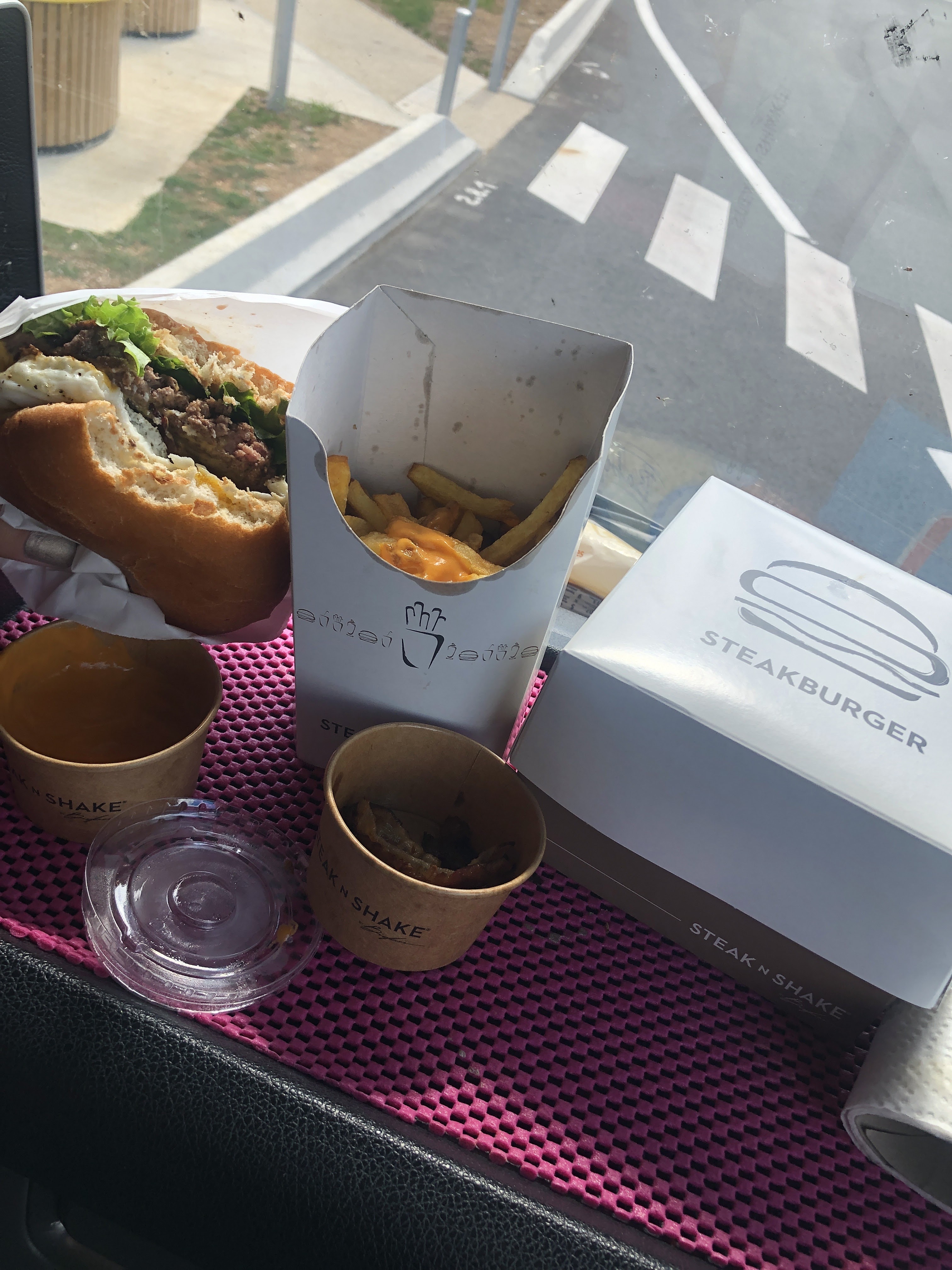 Ravie d'avoir découvert Steak' n Shake sur cette aire d'autoroute. Le personnel est souriant et accueillant, les burgers sont bons et les frites excellentes, en plus c'est préparé à la commande ! En plus l'aire est très agréable et propres, et dispose d'un très bel espace extérieur.