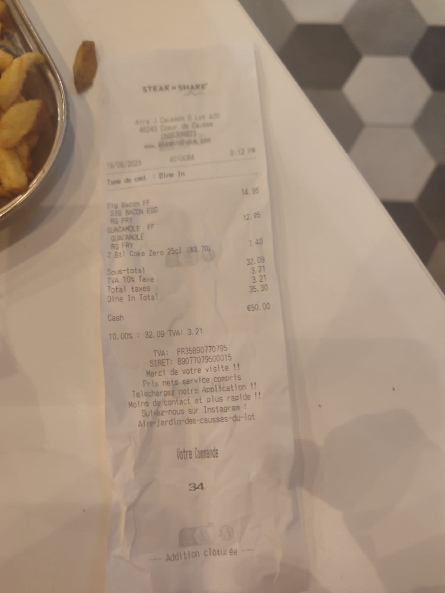 Bon steak 'n' Shake idéalement situé entre Brive et Cahors et en + au sein d'une bonne aire d'autoroute. Néanmoins lors de ma commande il y a eu confusion et ils ont servis d'autres convives avec ma commande.... mais si ils ont corrigés mon temps perdu n'est pas revenu ! Sinon bonne qualité de burger et milkshake.