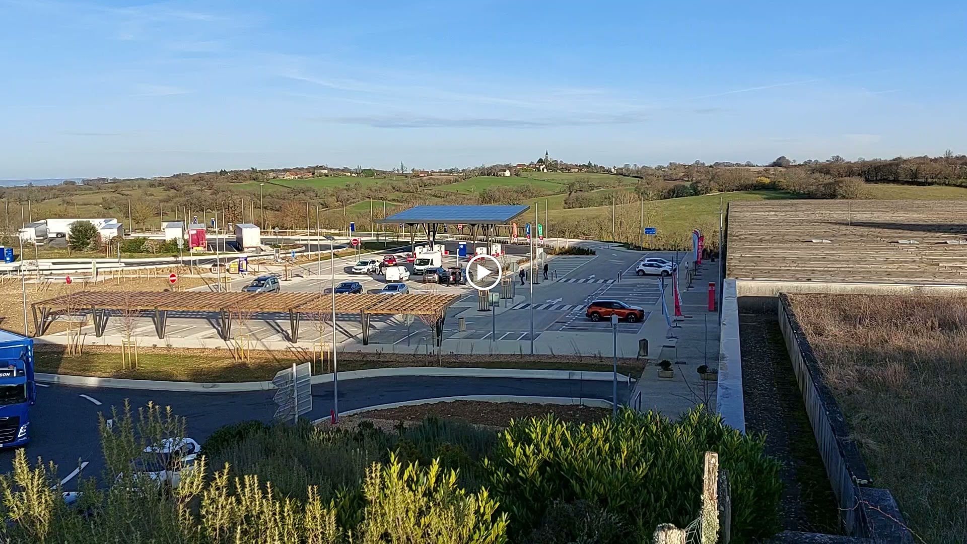 Très bel endroit, original et grand pour une aire d'autoroute. Les bornes de recharge sont abritées et éclairées