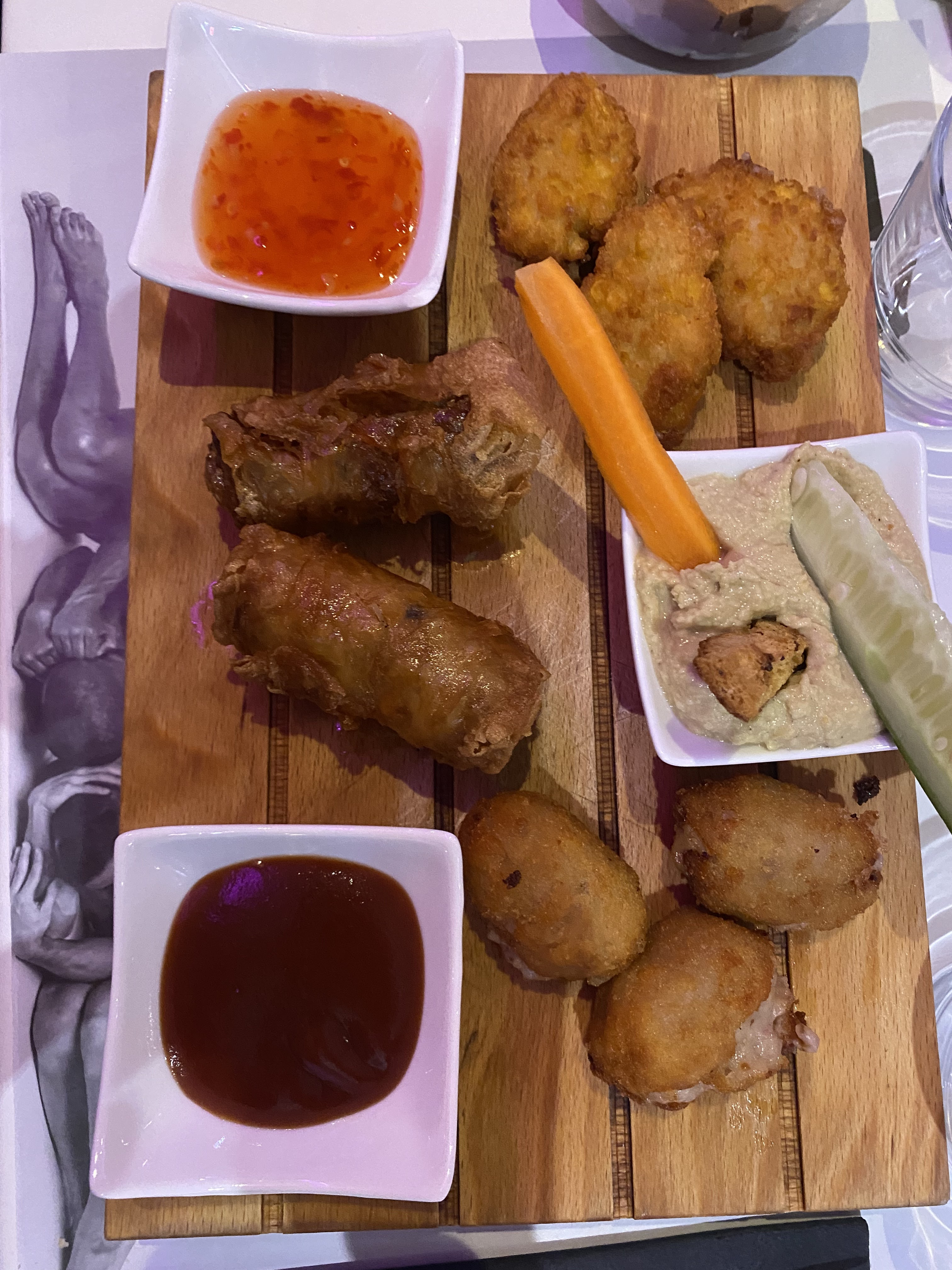 Équipe de serveurs tres sympa. La nourriture est bonne. Petit bémol pour les samoussas aux légumes qui dégoulinaient d huile… dommage car l intérieur était tres bon. Les 5 petits nuggets étaient petits mais délicieux.