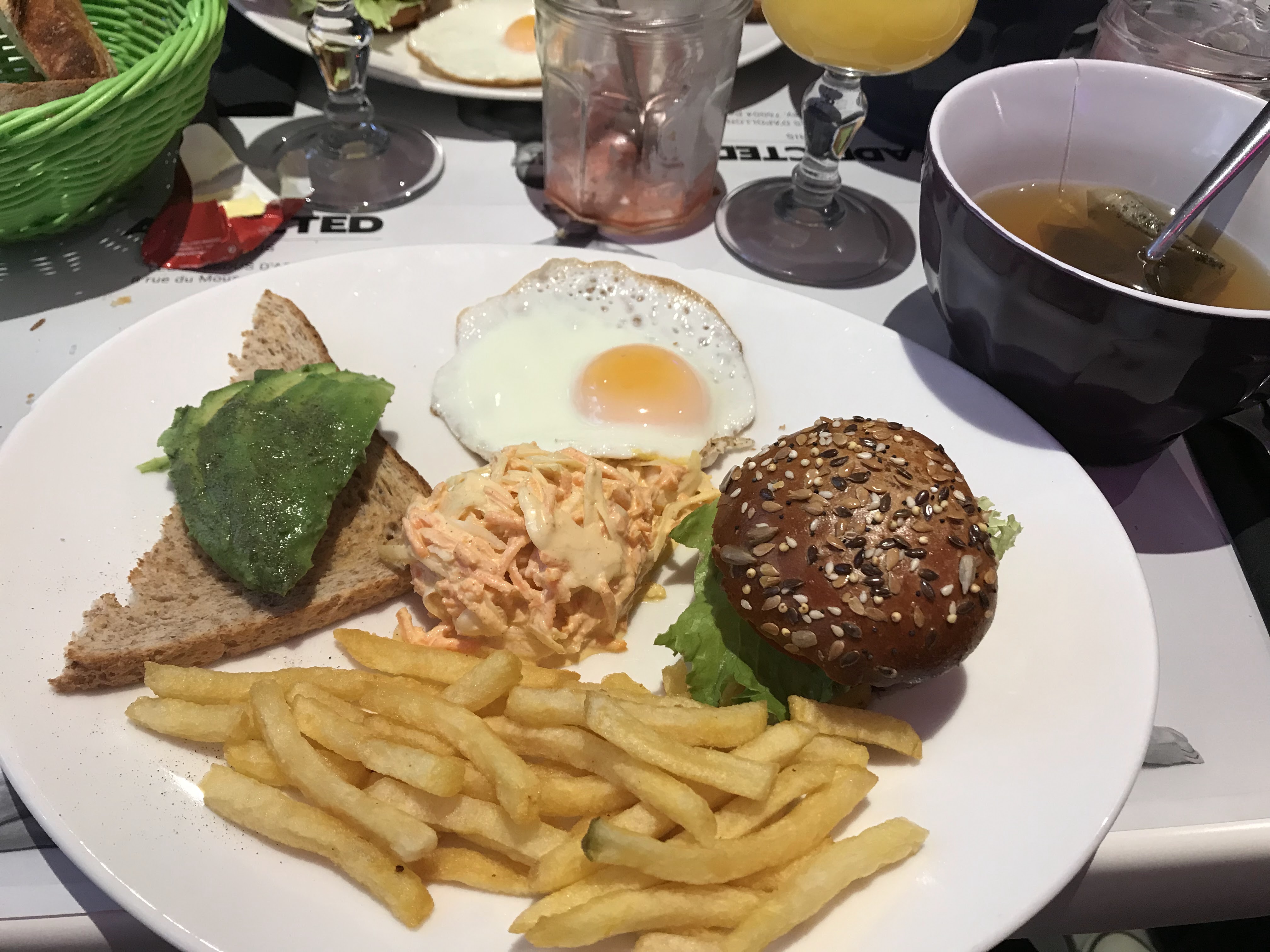 Nous y avons été pour le brunch (21€), peu après l'ouverture. Une belle découverte ! L'accueil déjà est très chaleureux, d'autant plus que j'avais ma fille de 2 ans en poussette. On nous a trouvé la place où on serait à l'aise sans gêner. Le brunch est composé d'un jus, une boisson chaude, un panier de viennoiseries avec confiture/beurre/Nutella, un fromage blanc aux fruits, et une assiette garnie. Les assiettes c'est toujours quitte ou double, perso j'ai tout aimé. Et le très bon mini burger m'a donné envie de revenir hors brunch en tester un taille classique. Le bonus : ils ont préparé un mini burger/frites à ma fille qui s'était réveillée vers la fin, adorable. Si vous voulez un brunch sans chichi et efficace, dans une bonne ambiance, c'est le lieu. Bon rapport qualité/prix ! Je reviendrai