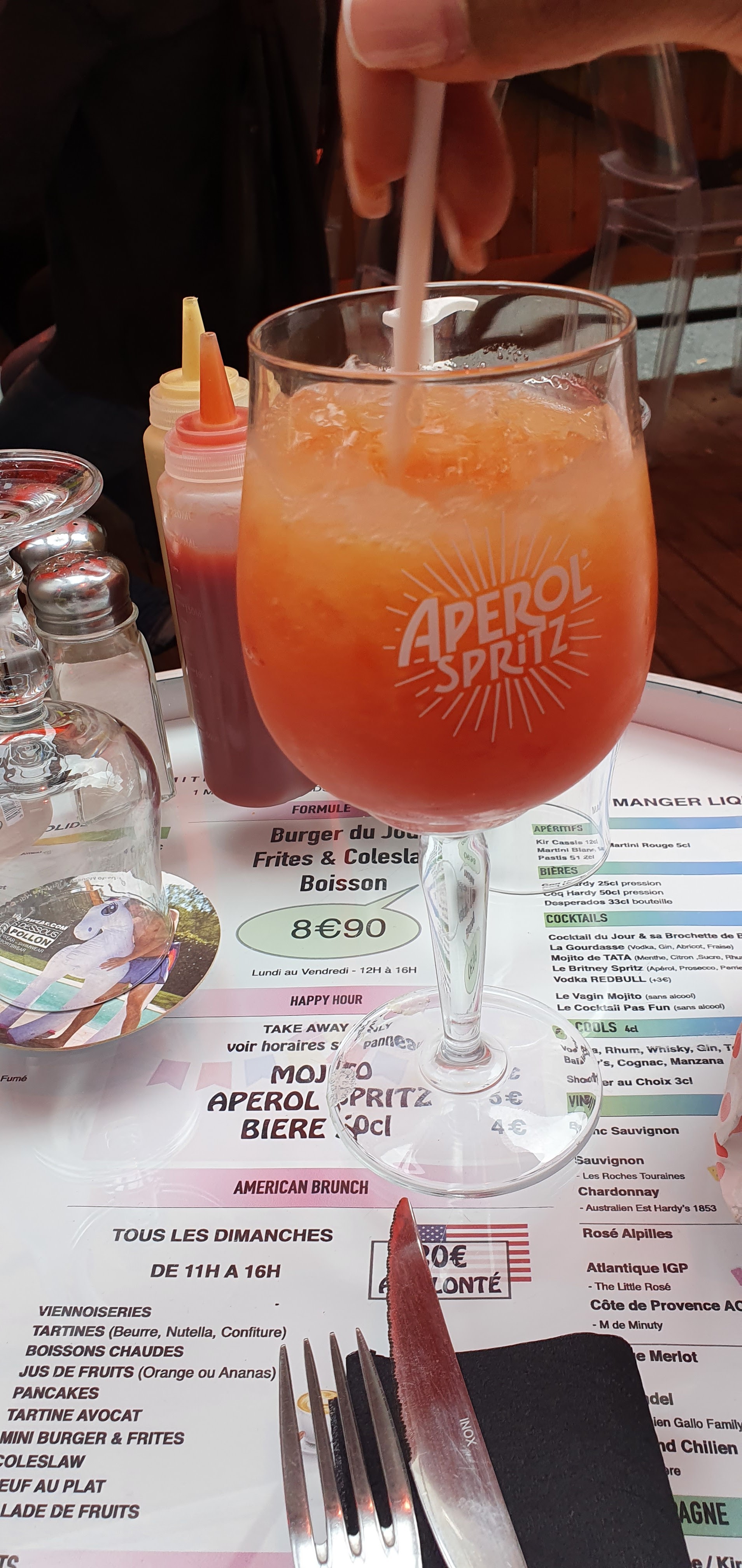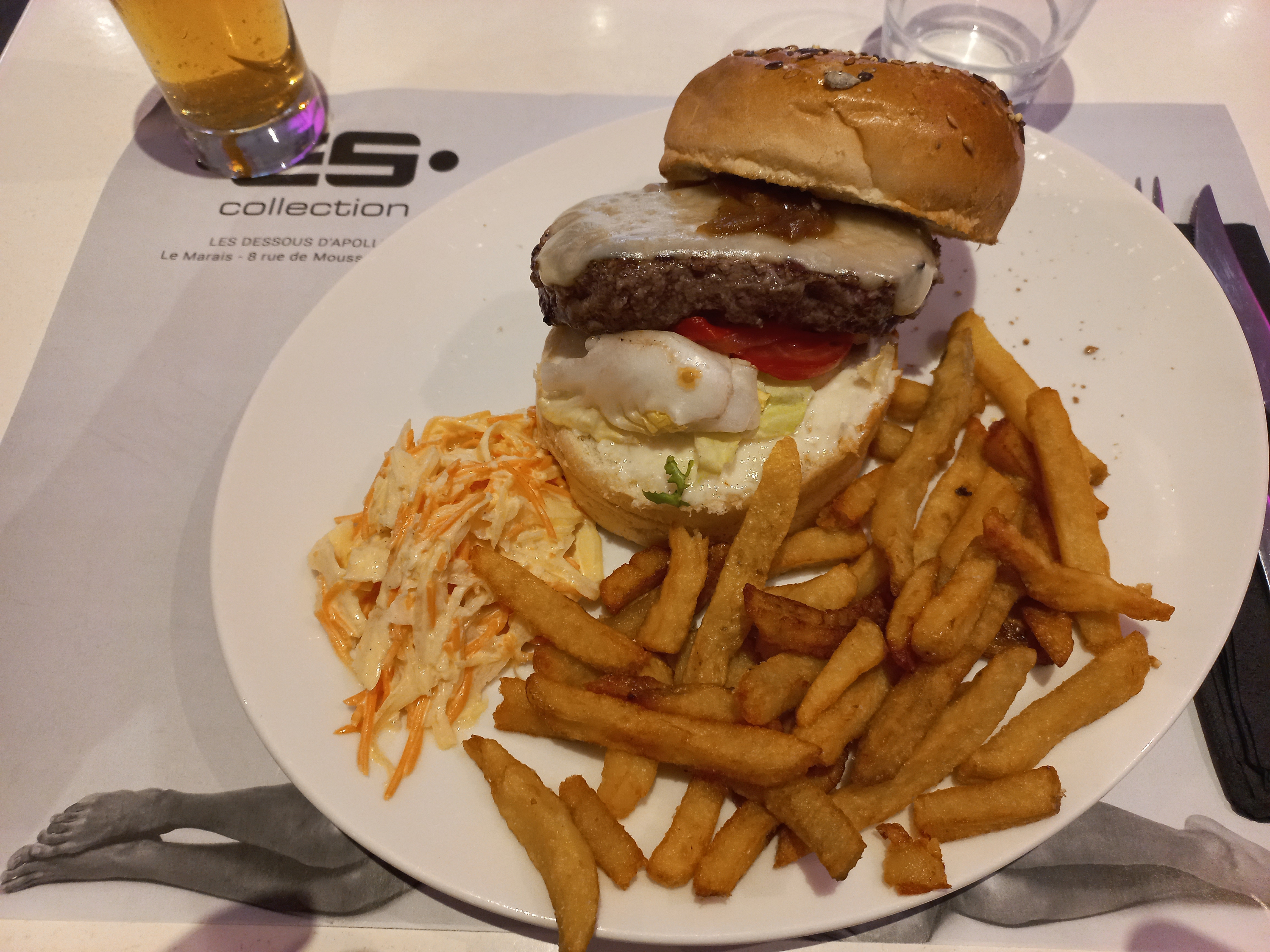 Cela faisait longtemps que j'avais envie de tester ce restaurant mythique du Marais ! Les serveurs sont sympathiques et drôles tout en restant professionnels ! L'ambiance est décontractée et plutôt légère ! La carte est assez concise et simple, les noms évocateurs donnés aux plats sont à mourir de rire ! J'ai opté pour le burger la Cochonne Versatile. Le cocktail Mojito était délicieux, équilibré mais un peu cher (alors que les tarifs des plats sont plutôt raisonnables). Concernant la nourriture, c'est plutôt bon mais basique et je suis resté un peu sur ma faim au niveau quantité. Le burger est accompagné d'une maigre portion de frites maison et de coleslaw. J'aurai peut-être dû opter pour le burger DSK, remarquable par sa taille et sa forme ! Un bon moment en terrasse !