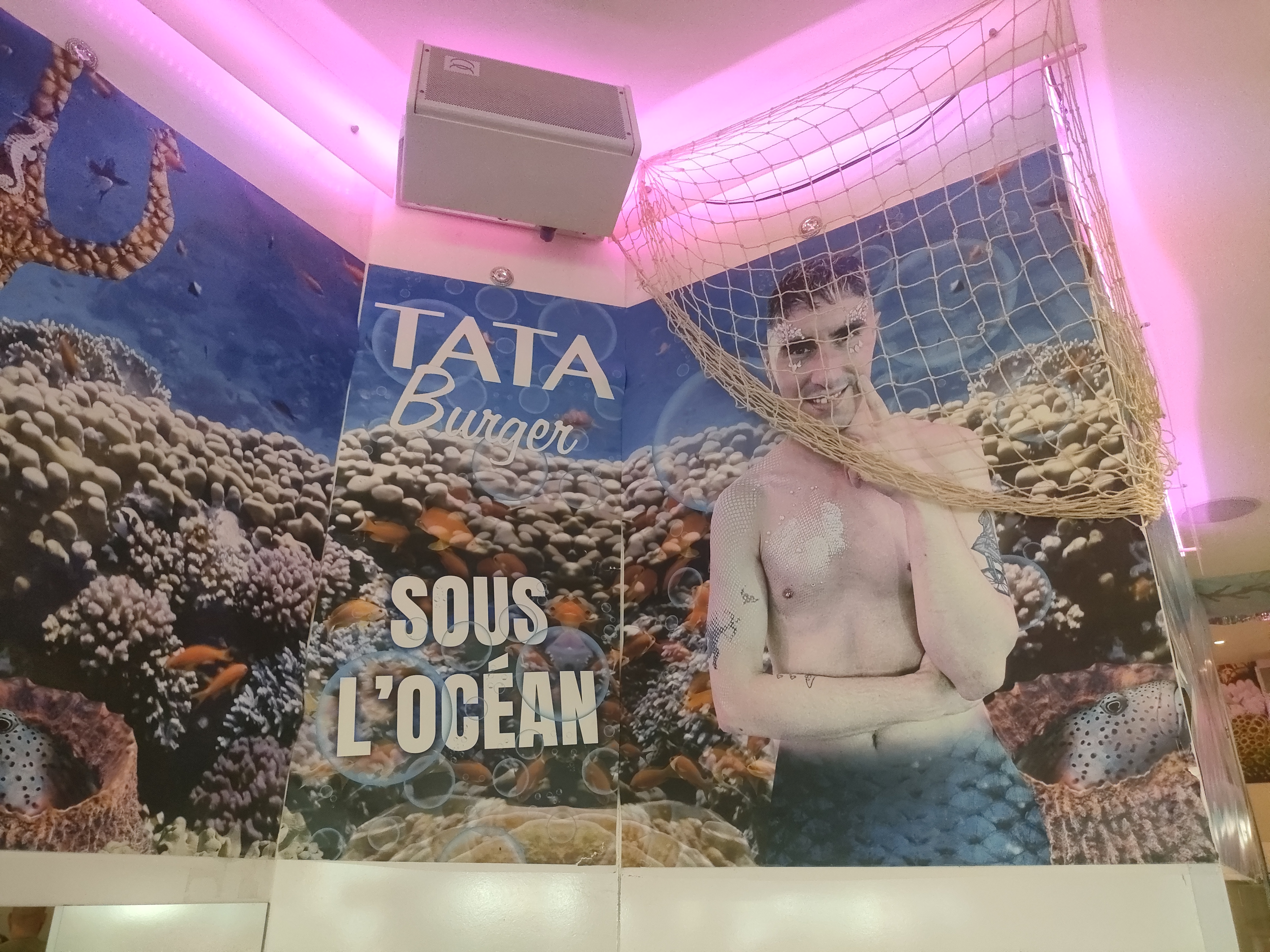 Franchement un très bon moment chez Tata Burger. La déco vaut le détour, le serveur tellement drôle, accueillant et aux petits soins. Et bien évidemment les intitulés des burgers tout un art. C'est un lieu qui vaut vraiment le détour sur Paris, seul et surtout entre amis. Vous y passerez assurément un très bon moment. Et le quartier ajoute au charme du lieu. Timides, s'abstenir 😂😂