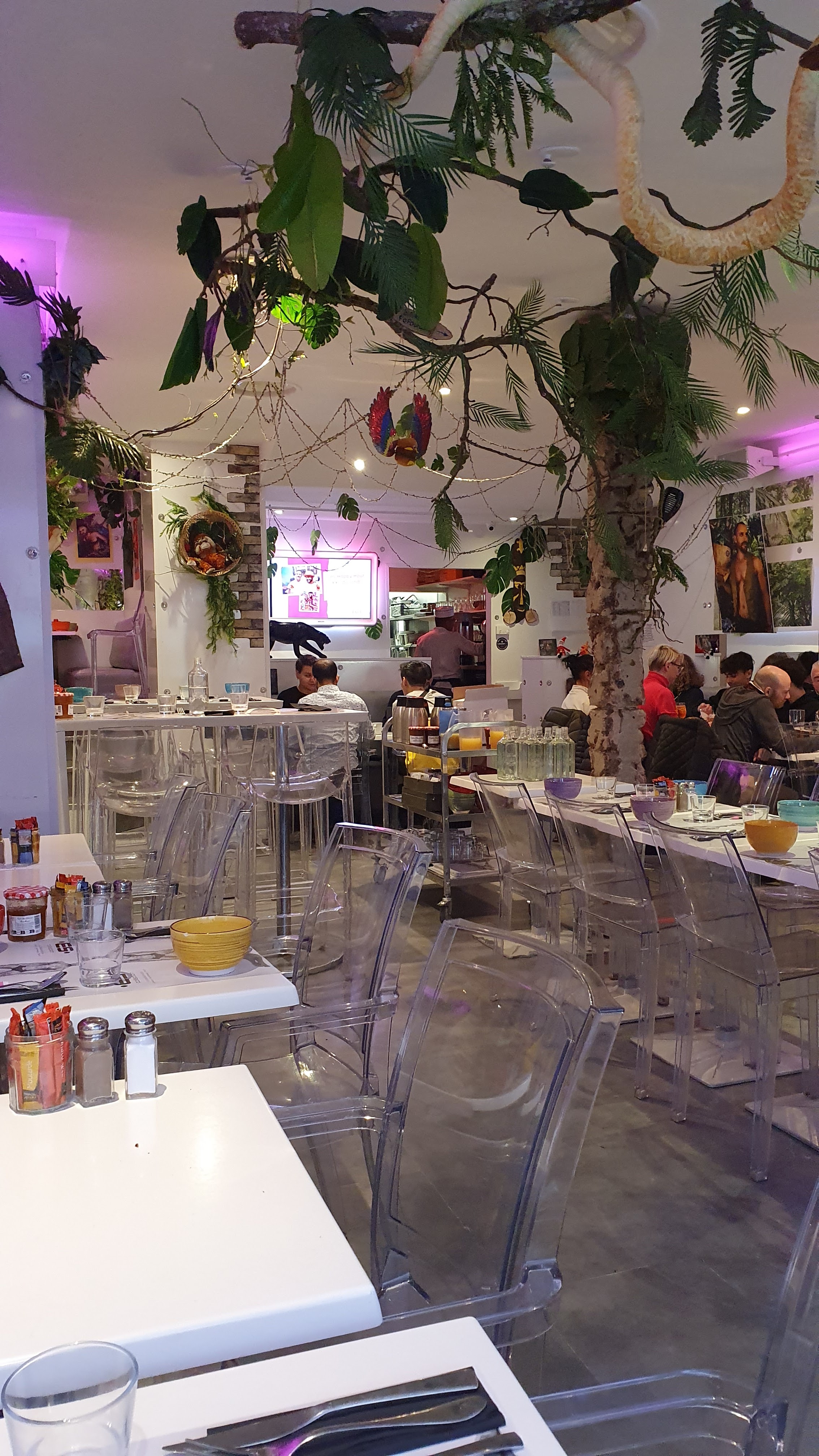 Restaurant dans le quartier du marais. Les assiettes sont bien servies en quantité. Le menu est original et certains burgers le sont encore plus comme le DSK : double steak mais surtout le pain est en forme de phallus. Jais pris le poke bowl est celui ci est aussi très bien garni. Le restaurant semble bien fréquenté et pour manger sans réservation cela semble ne pas tout le temps être possible. Les serveurs sont sympathiques et on la blague facile surtout entre eux. Nous y étions après Halloween et le restaurant était bien décorée sur le thème aussi avec un peu d’humour sur les positions des squelettes. Petit bémol début novembre la porte reste ouvert en grand pour permettre le service en terrasse, cela donnait un courant d’air continu dans la salle qui était un peu désagréable sur la fin du repas.