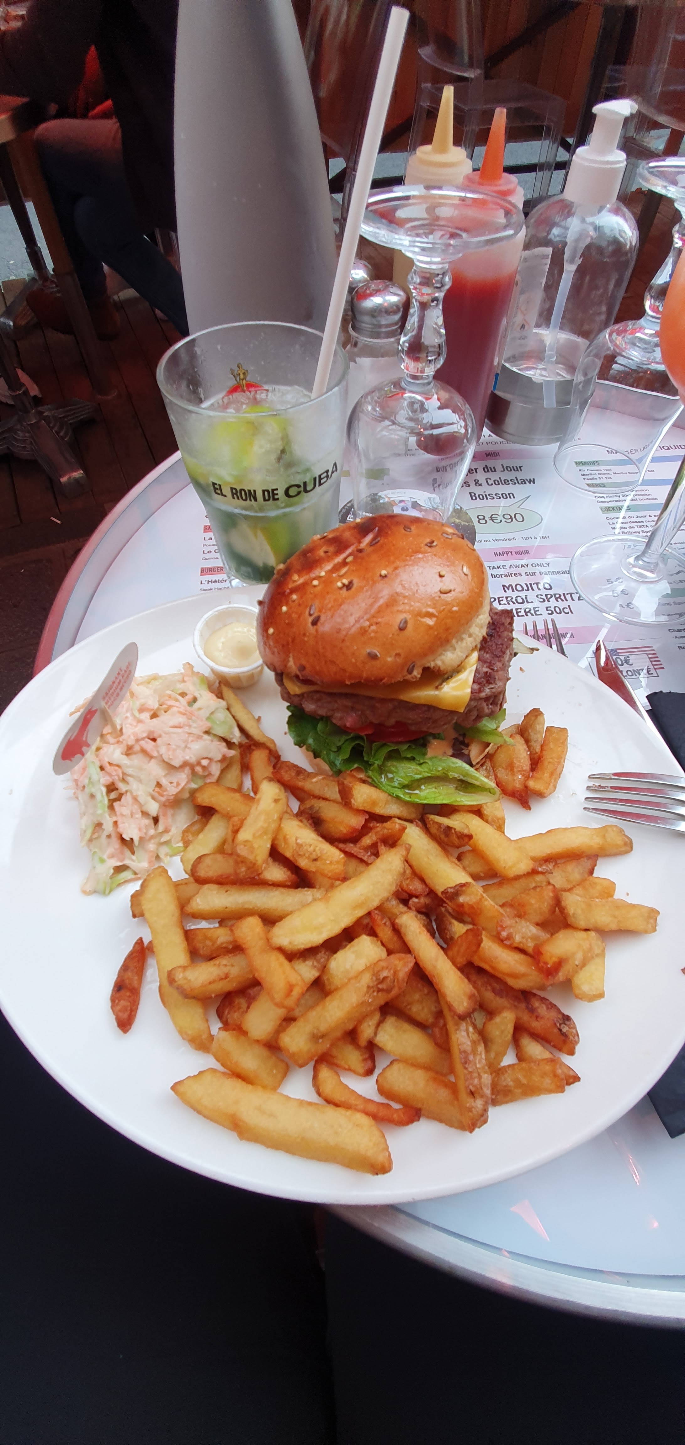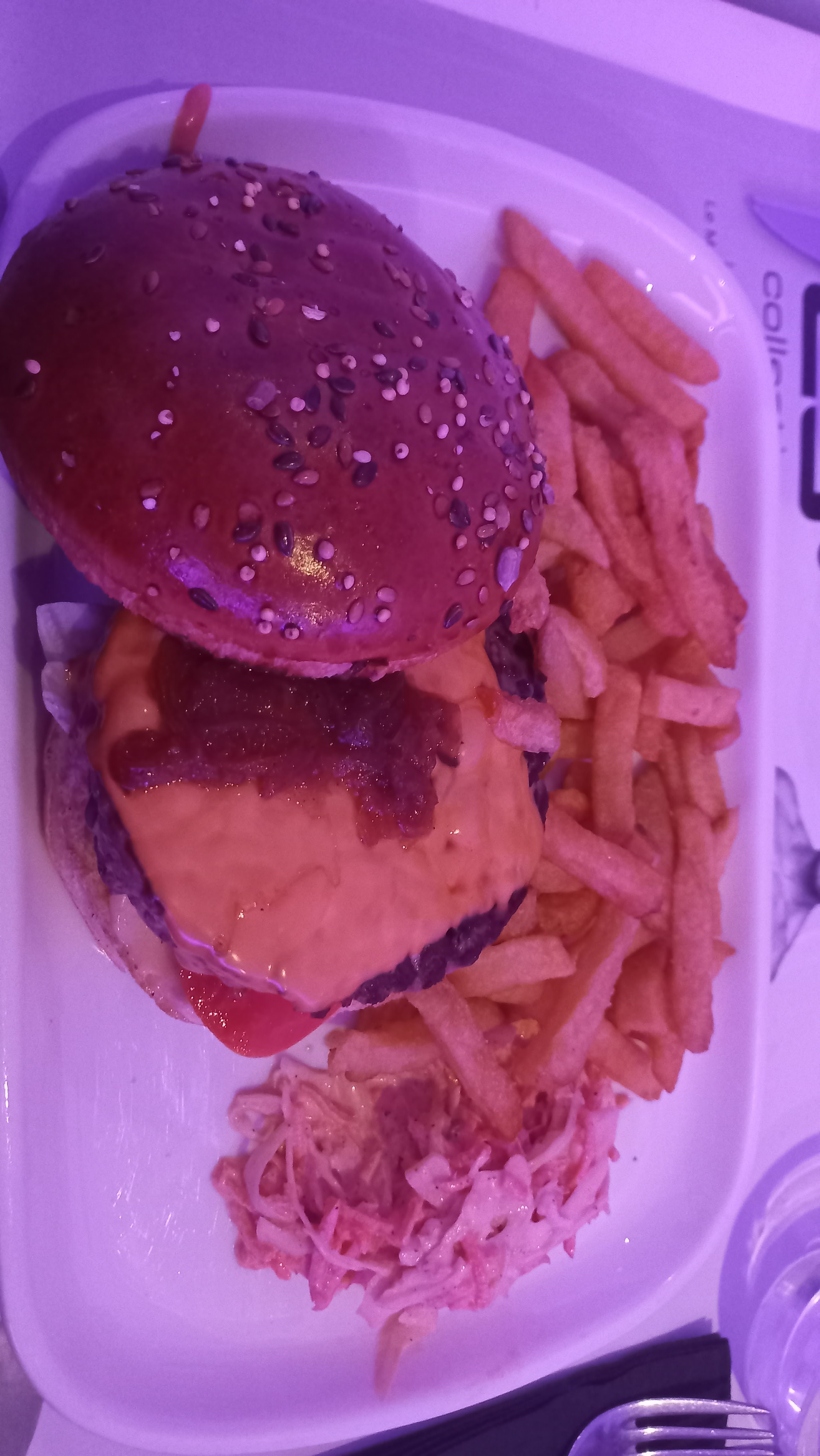 Goûteux et agréable Burger !Très bon cocktail !Mais un peu de triste de l 'accueil car c est à la tête du client !Un petit bémol ! Dommage...