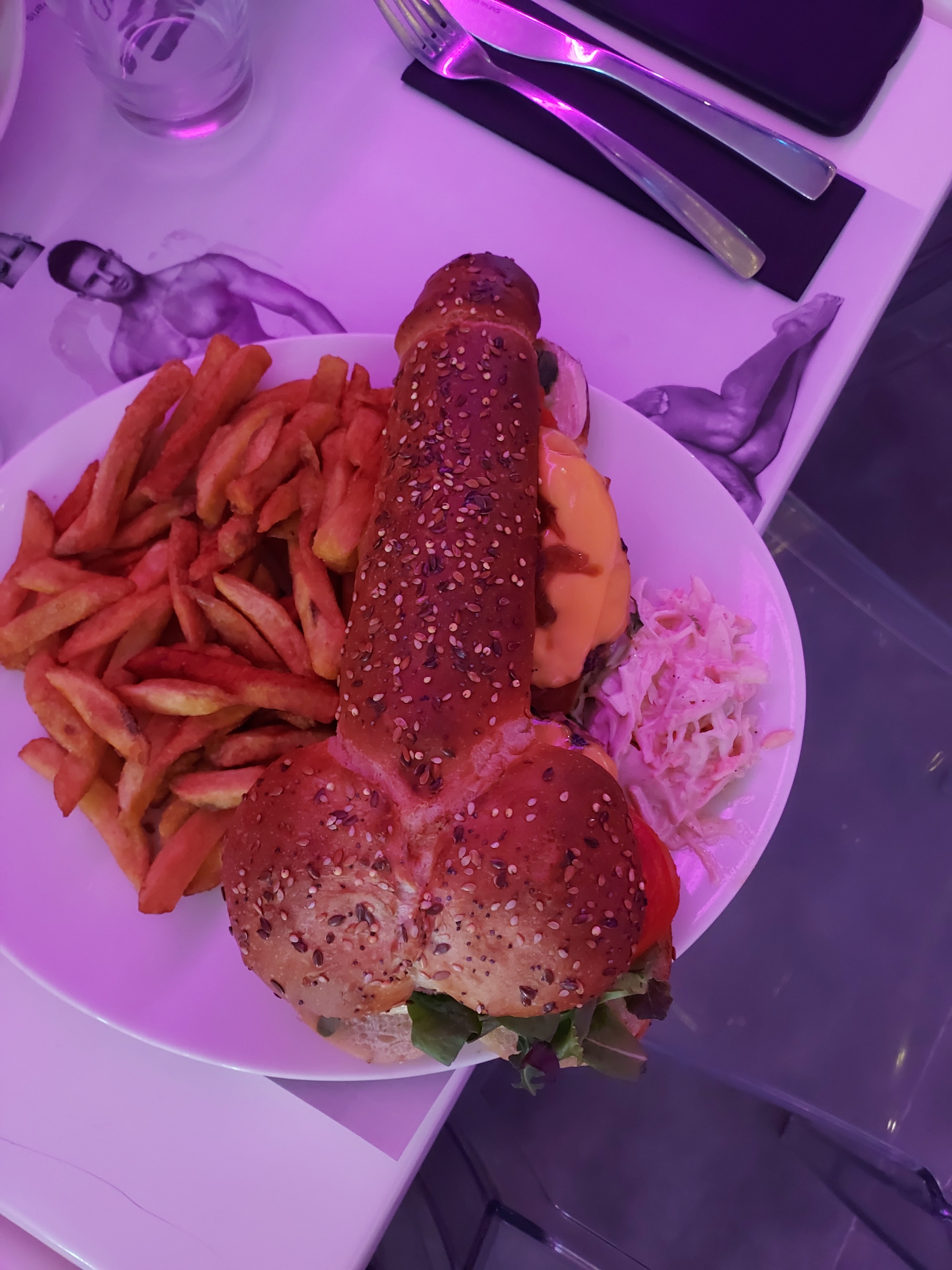 Un endroit très sympa avec accueil et service au top. Le resto est gay mais rempli d’hétéros qui viennent s’amuser dans une ambiance bon enfant. Les burgers sont bons et copieux et le brunch à volonté faut succès. Le DSK et son burger en forme de teub est la signature maison 🥳