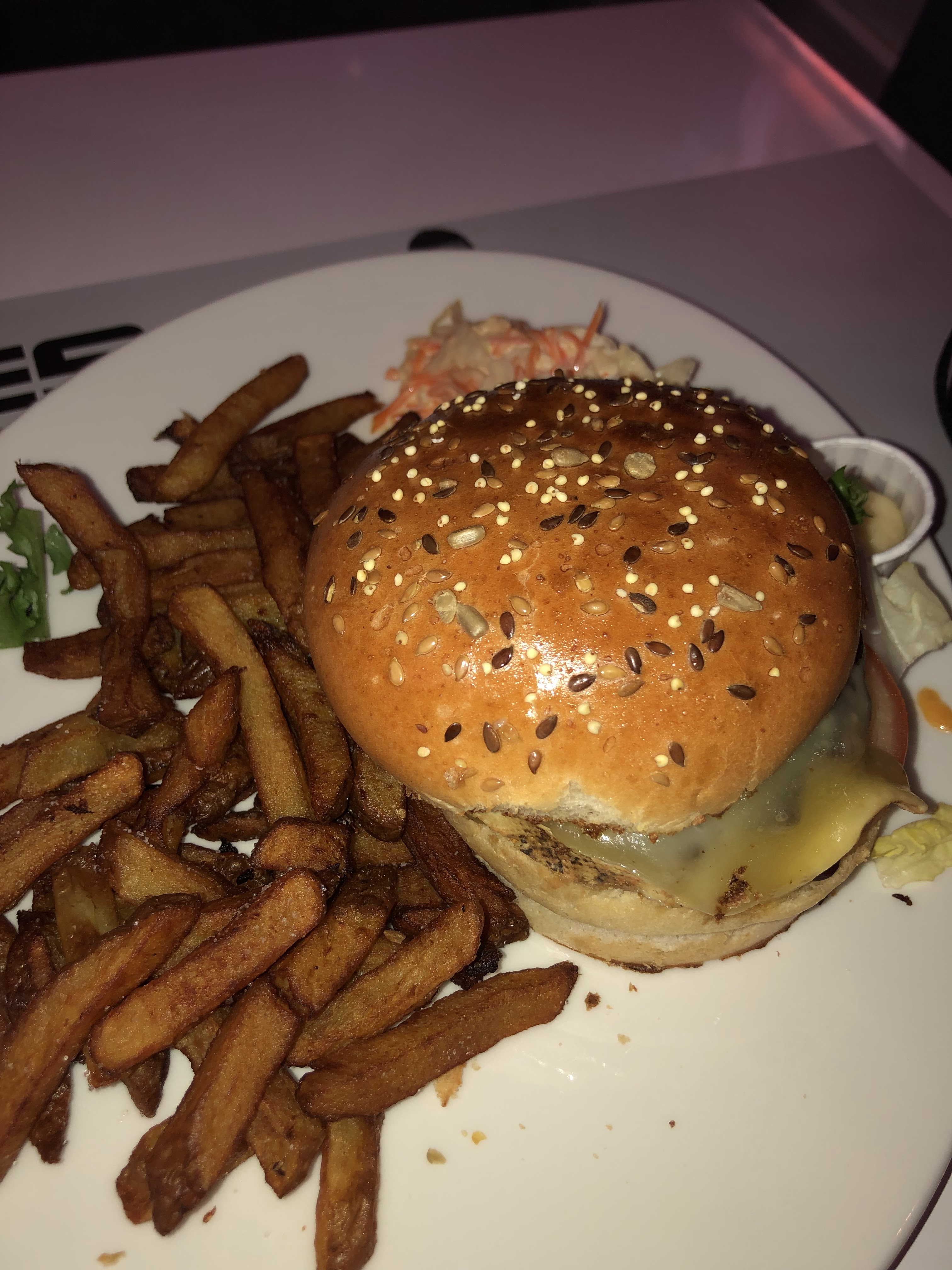 Ambiance amusante pour un diner, nos burgers etaient bon mis a part le poulet qui malheureusement manquait de goût, les croquettes de jambon a partager en entrée etaient tres bonnes ! Au niveau de la note finale le prix etait raisonnable, je recommande :)