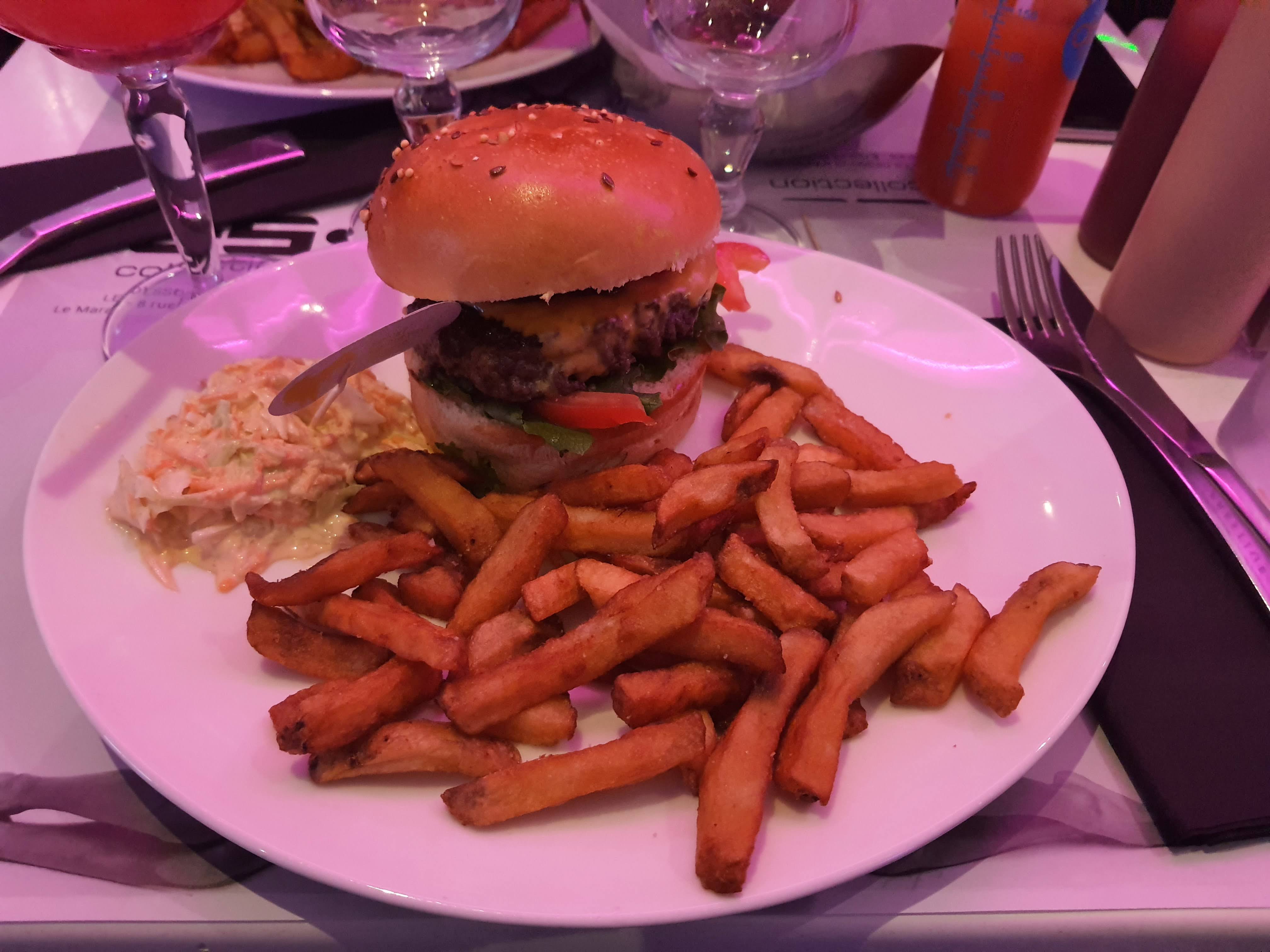 Burger franchement bons. Service impeccable, personnel super aimable et amical. L’ambiance du restaurant est très marrante, que ce soit les noms des plats ou la décoration. Je recommande absolument.