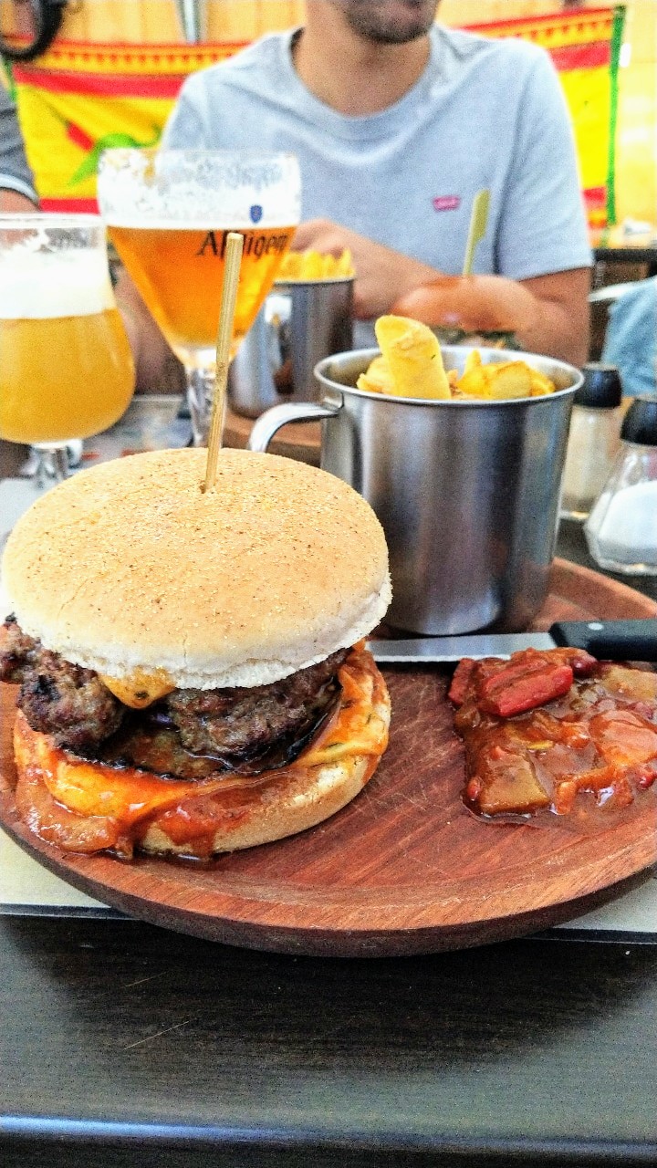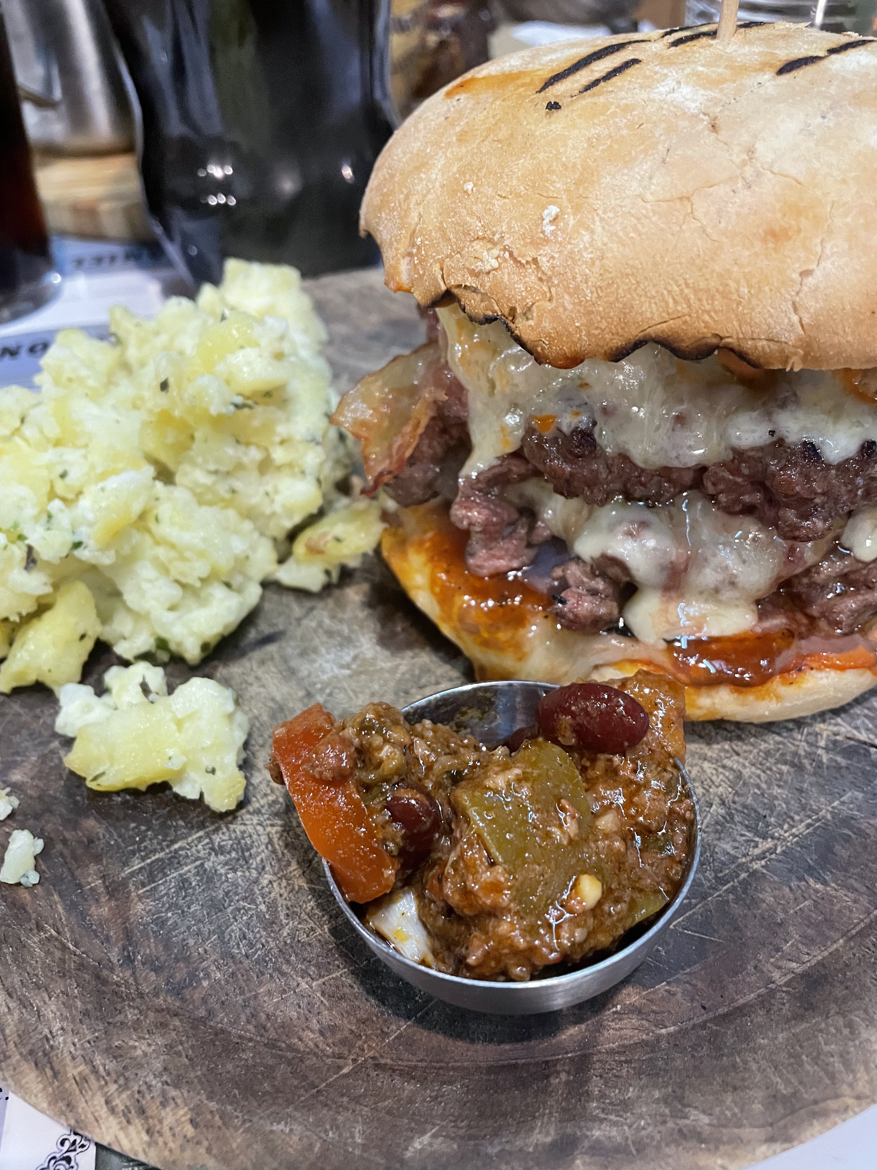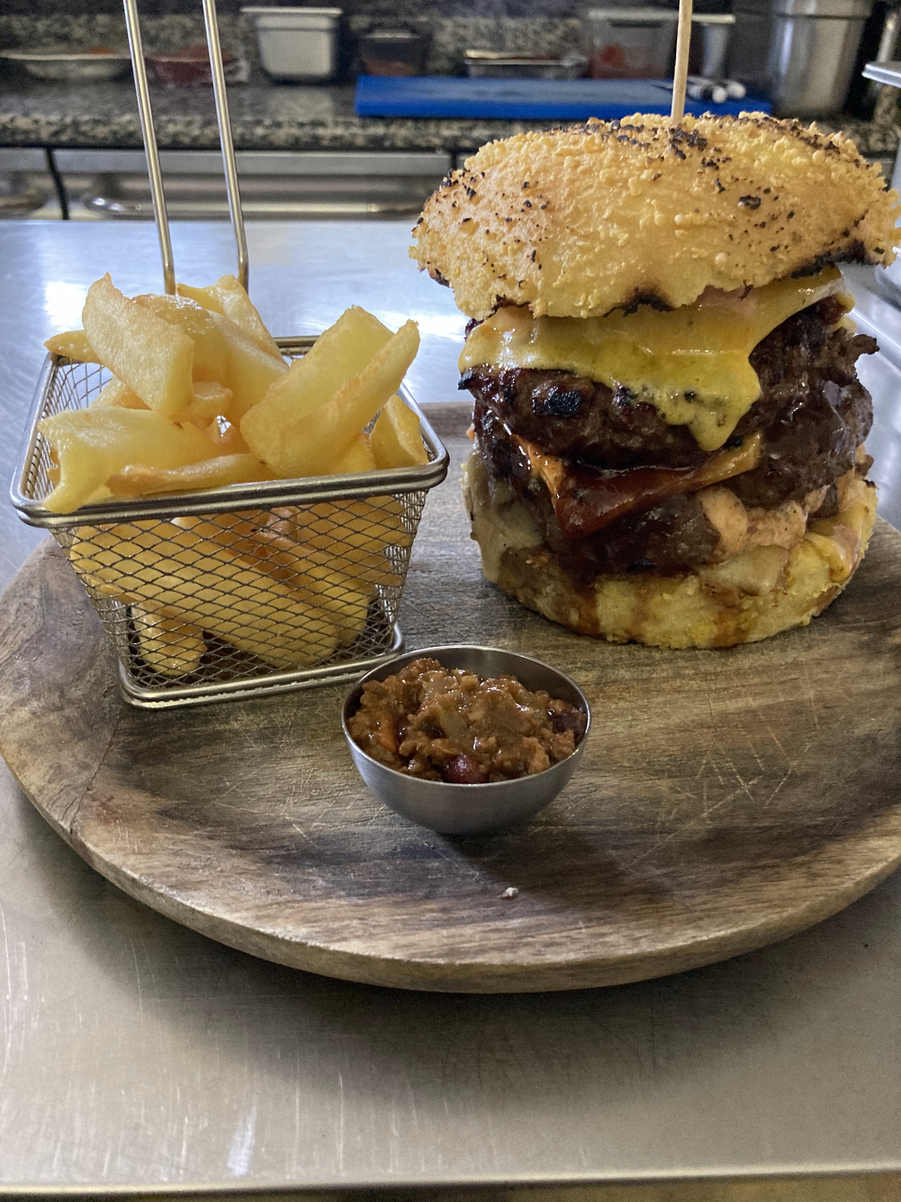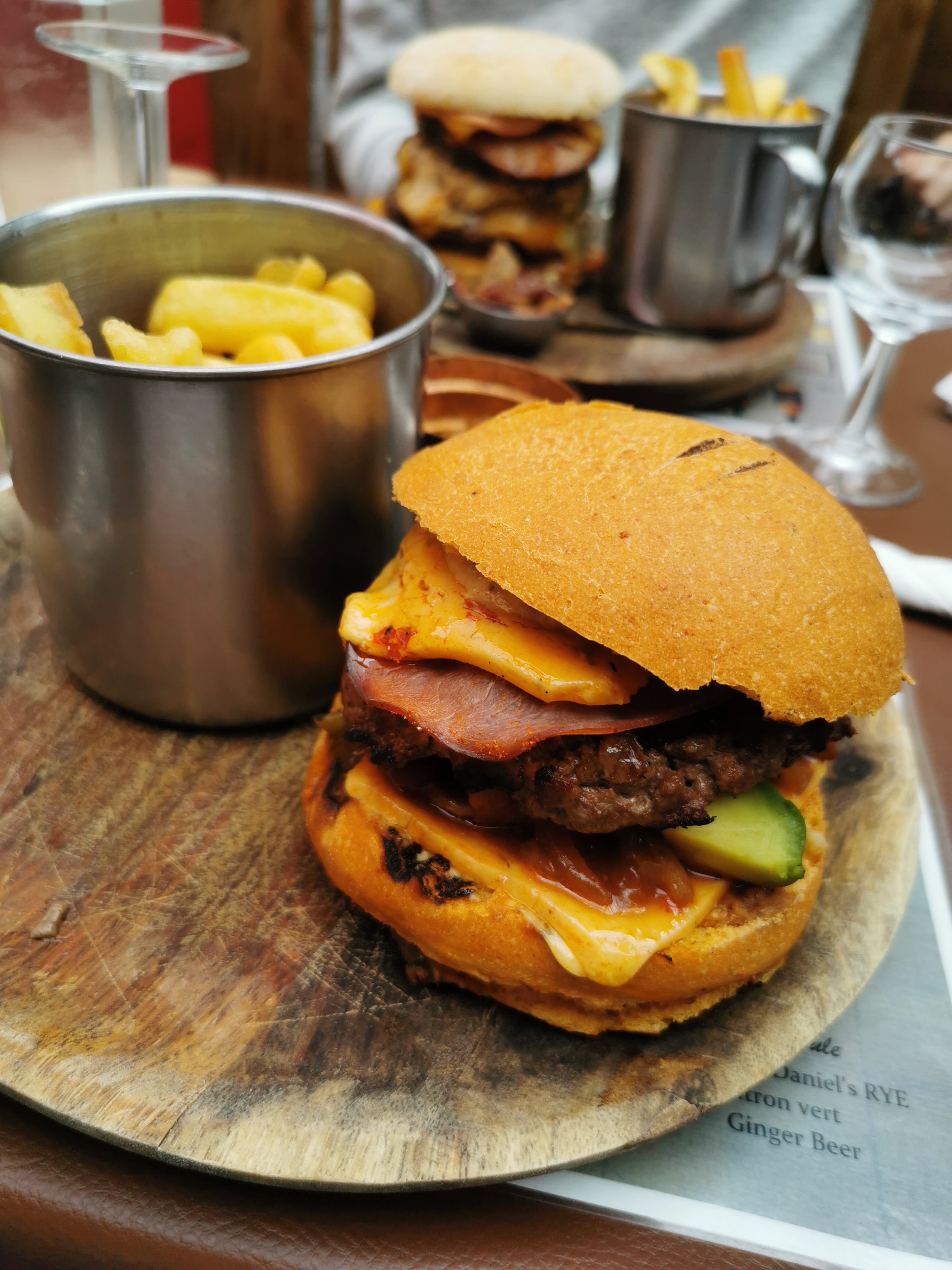 Hamburgers plus que copieux et très bon. Un vrai Burger avec 2 gros steaks qui ont du goût et bien garnis Très bon rapport qualité prix : en comparaison moins cher que le menu Signature au McDo. Sauce Chili pour accompagner les frites. Cocktails jack Daniels à découvrir. Diabolo pour enfants servi à la pint. Très appréciable en ces périodes caniculaires.