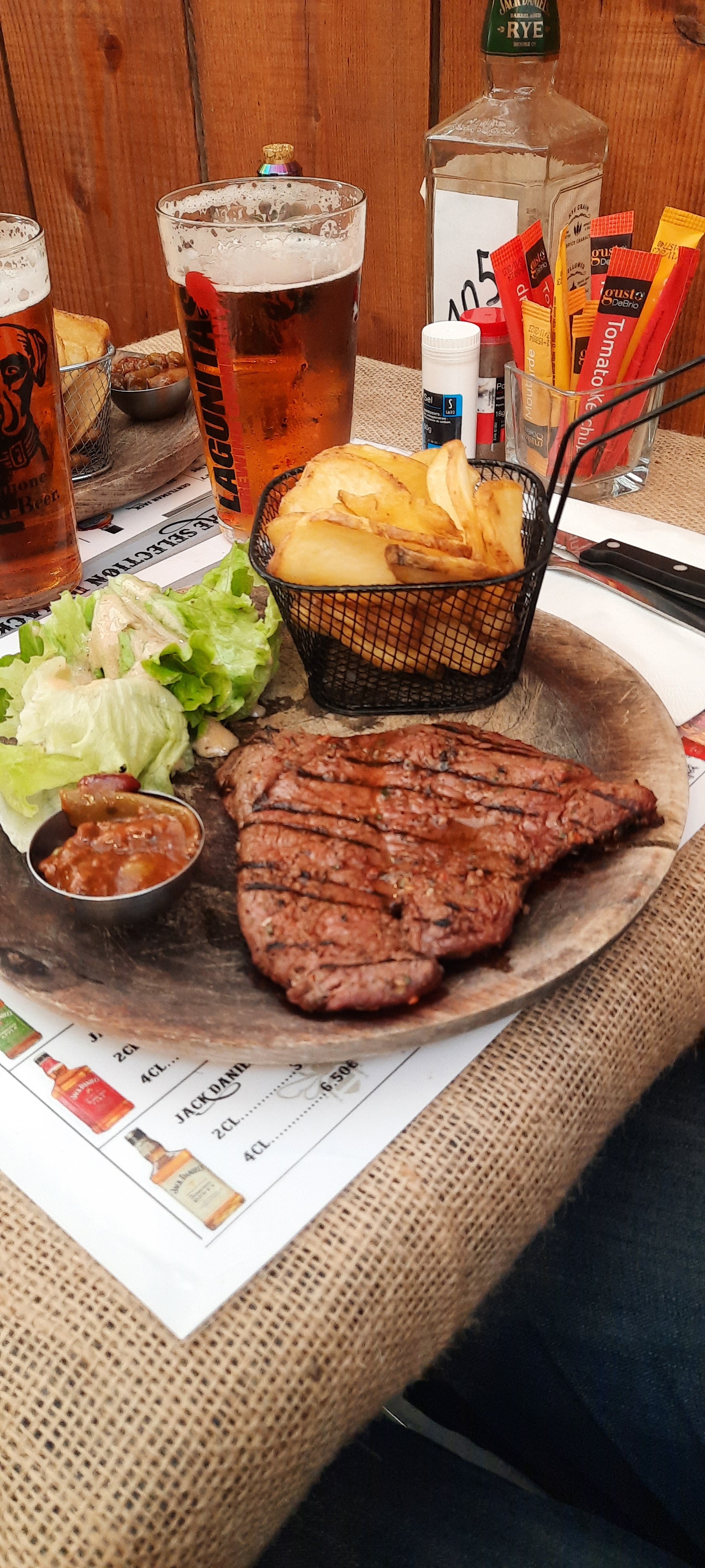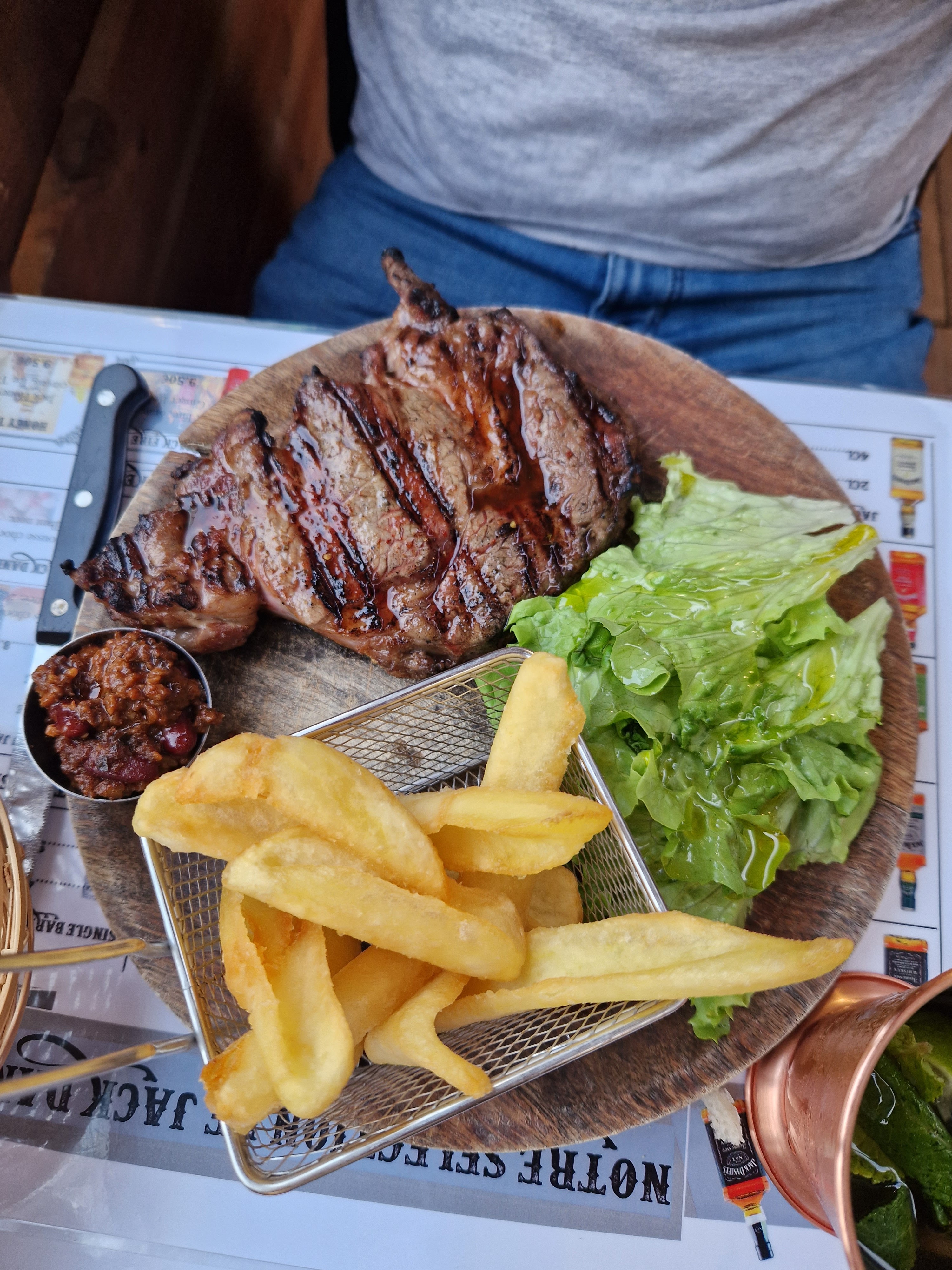 Bel endroit atypique cowboy. Accueil sympa Nous avons commandé une côte de bœuf saignante. La viande froide au milieu que vous découpez vous même. A refaire pour un deuxième test.