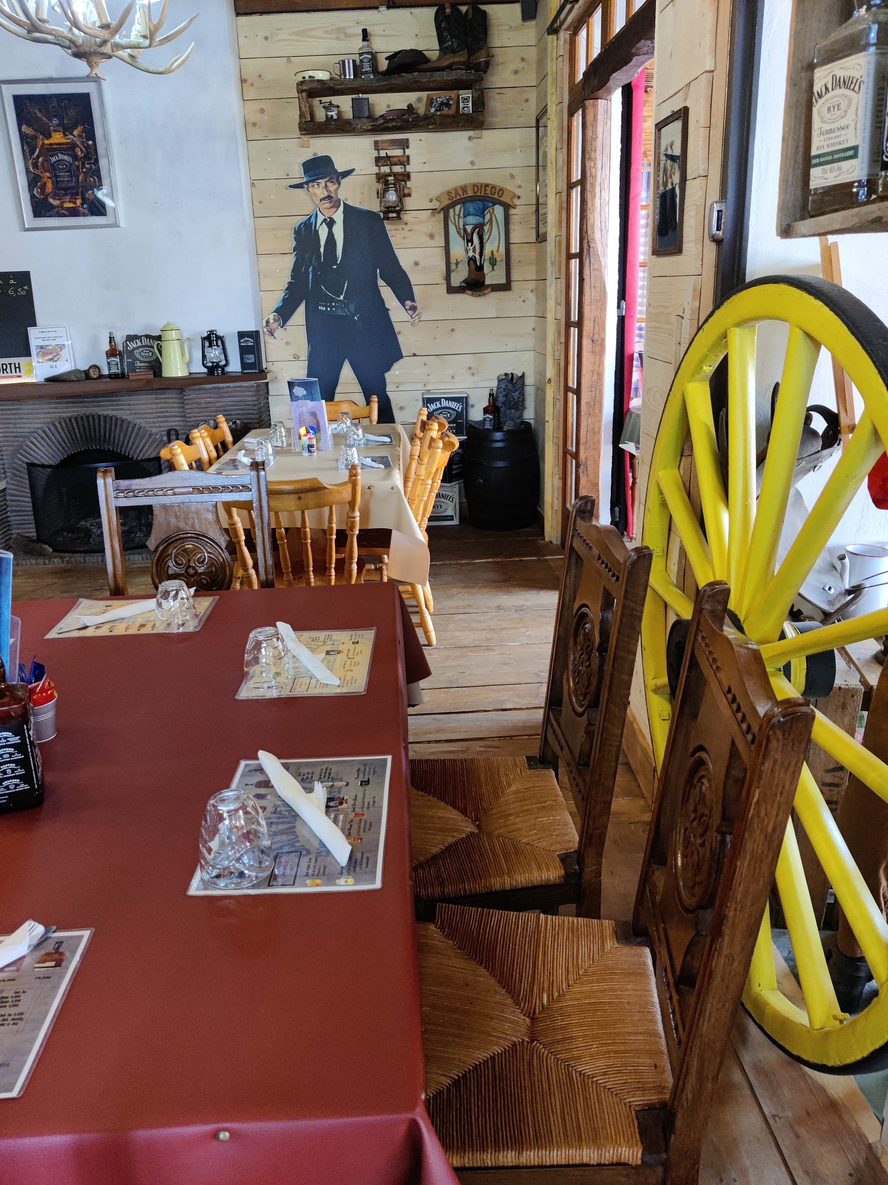 Comme dans tout les restaurants en ce moment, l'équipe est en effectif réduit. Je vous conseil donc de bien réserver. Mais une fois installé vous êtes dans un décor de saloon. Nous avons très bien mangé et le personnel est très agréable. Tout cela pour un prix que je trouve raisonnable. Je vous le conseil vivement... Mais pensez à réserver 😀😀😀.