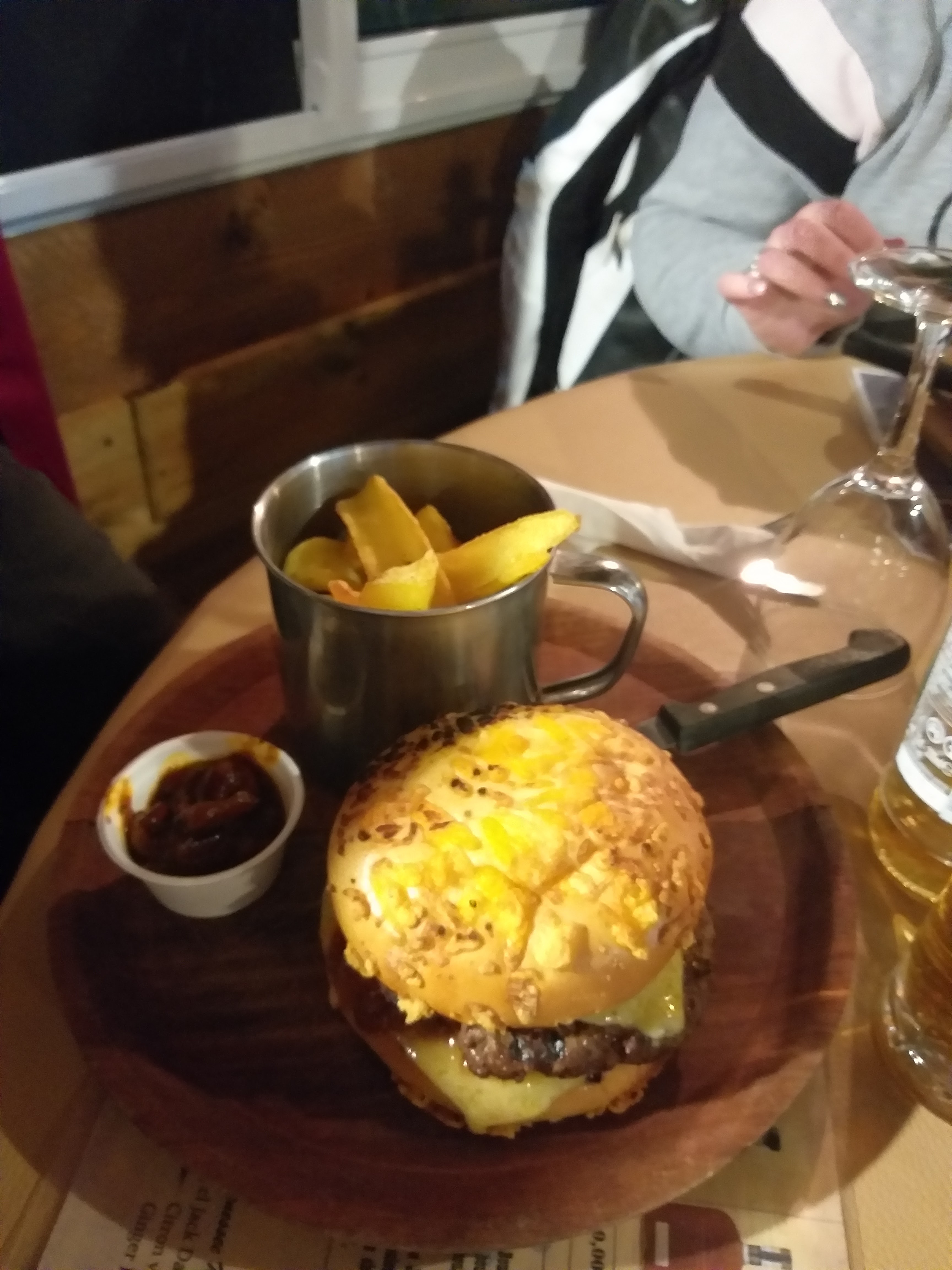 Très bien accueilli ! Lieu chaleureux, très agréable d'avoir la cheminée et le poêle allumés par ces températures. Décoration soignée, burgers délicieux. Mon petit garçon a été bichonné par le personnel, merci encore, nous reviendrons 🥰🍹🎶
