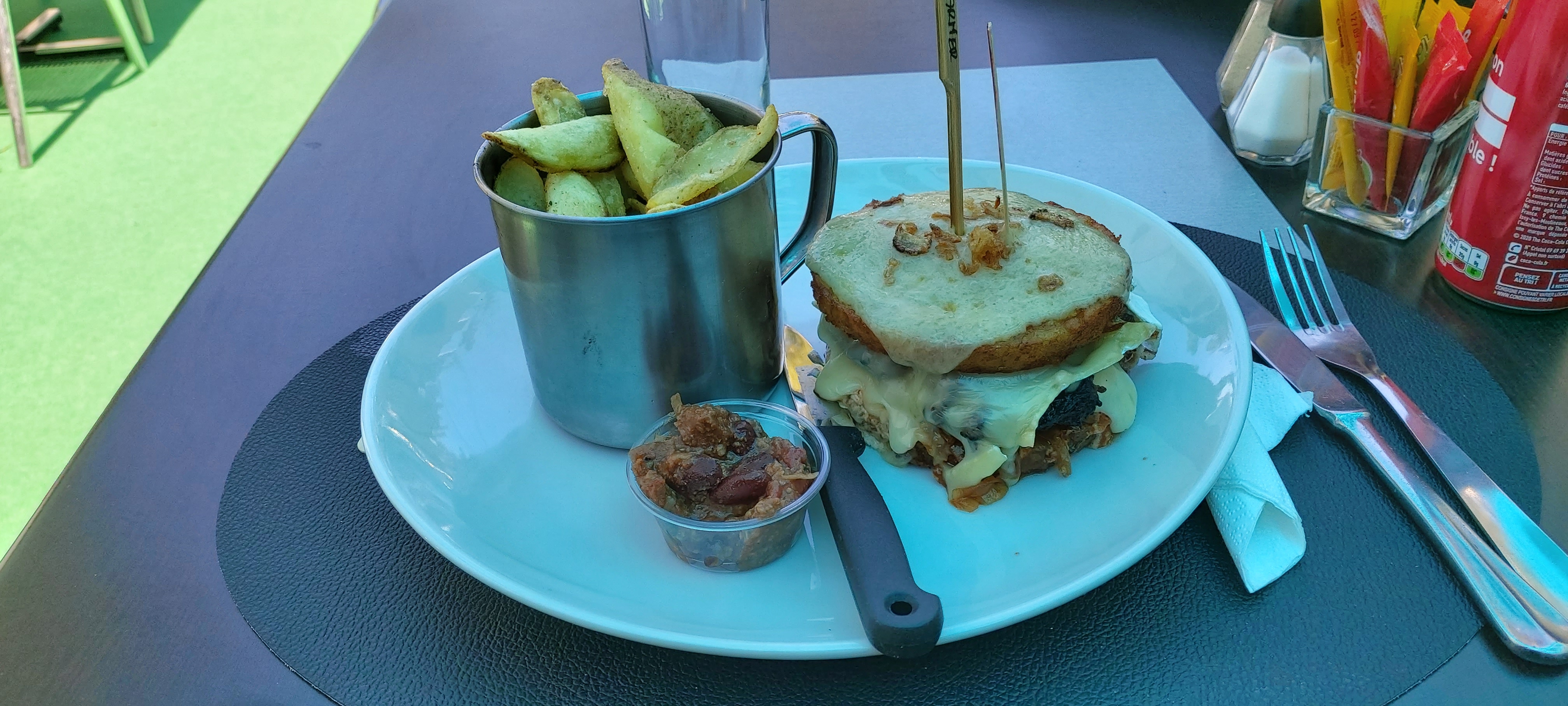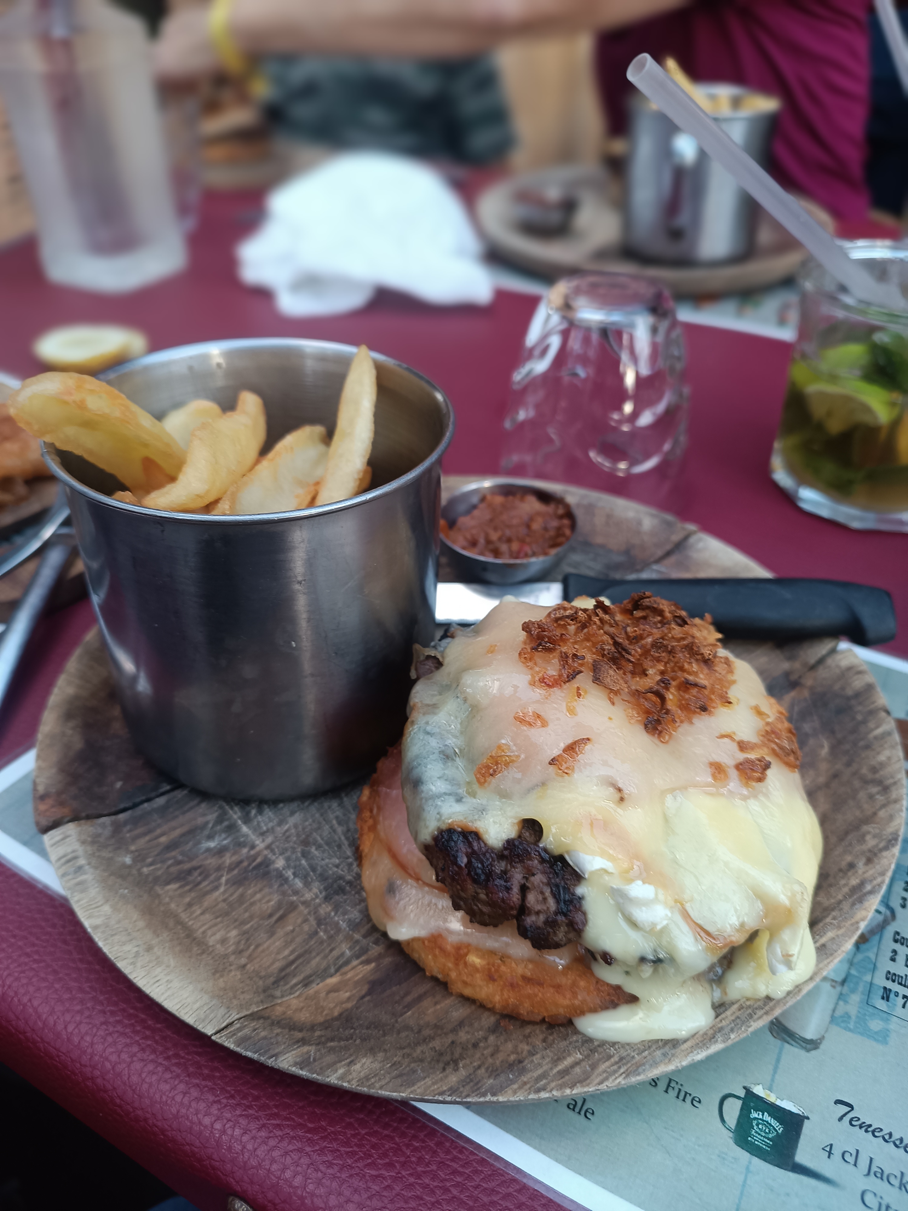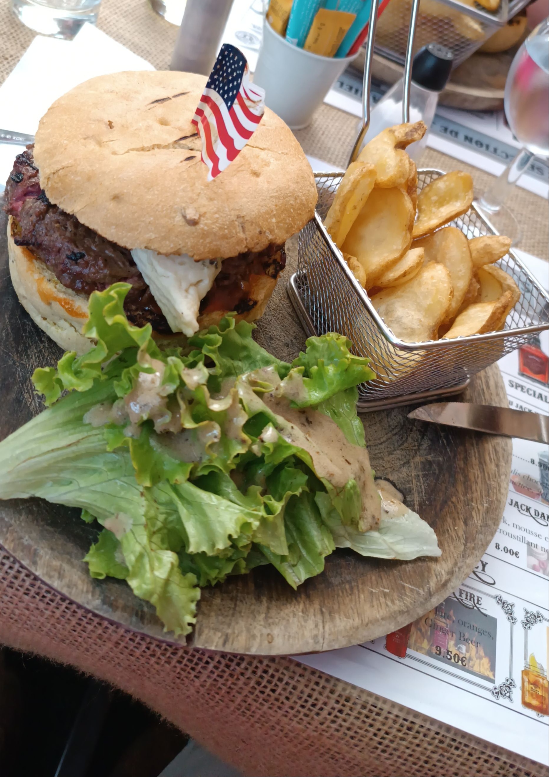 Trop bons burgers ! On y a mangé pendant nos vacances pour changer de tous les restaus du bord de mer de St Jean qui changent peu leur carte d'une année à l'autre. La déco est originale et jouée à fond ! Les burgers sont excellents et copieux, accompagnés de frites et d'une sauce chili, et certaines recettes sont assez rares à trouver dans d'autres restau, comme le burger Mexicain. Je reviendrai rien que pour le recommander. Seule remarque, il y a deux cartes différentes, la petite dépliante qui est très claire, et la seconde. Il faut bien regarder, certains plats ont l'air d'être sur une carte et pas l'autre. Merci, bon courage pour la suite.