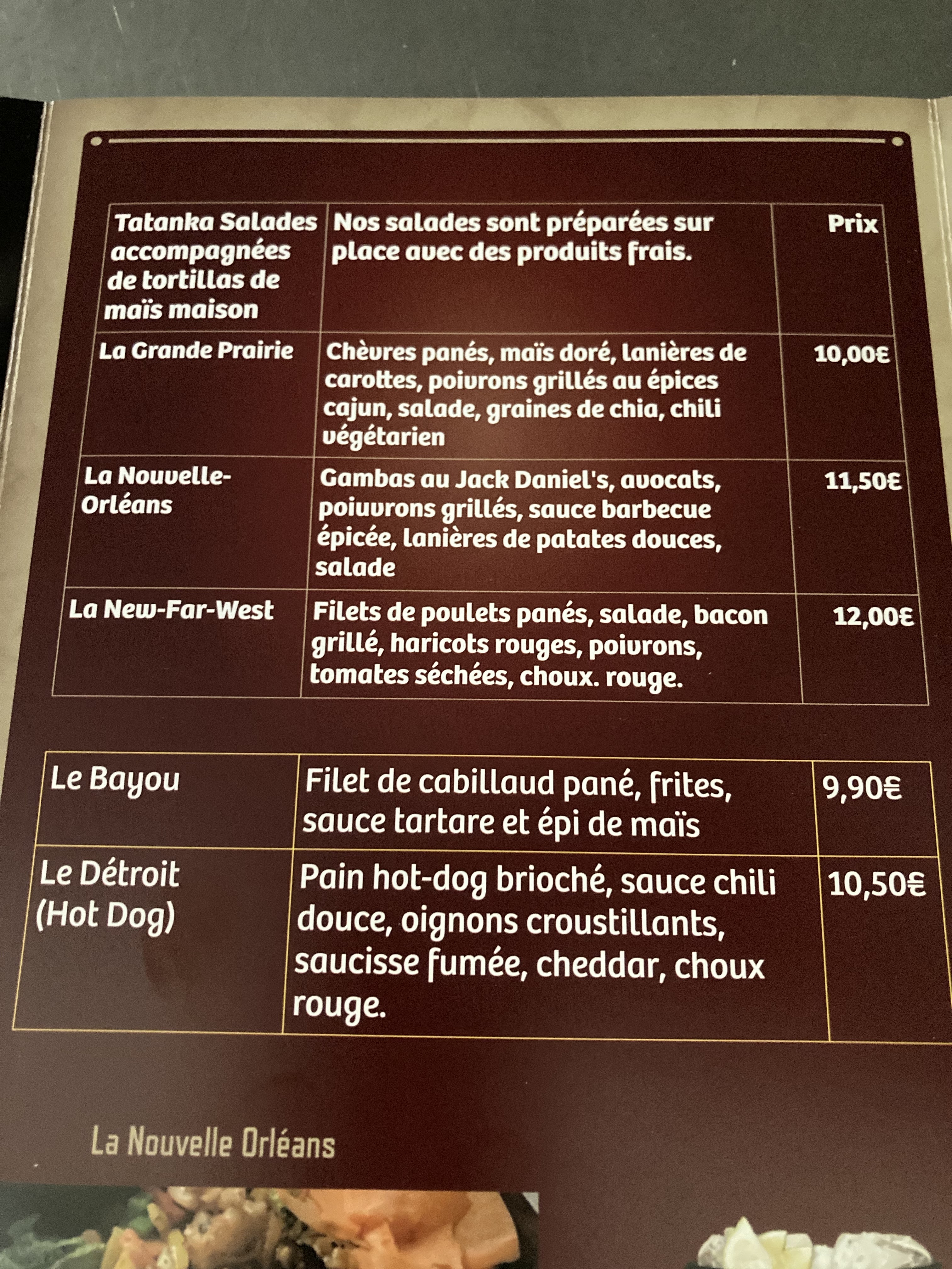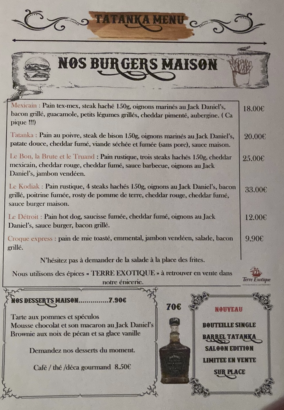 Ma mère voulait retourner aux USA 🇺🇸, je l'ai amené à Tatanka Saloon et on y était ^^ c'était vraiment sympa, accueil et service chaleureux, la tranquillité de la basse saison et c'était vraiment bon 🍔. Les produits sont locaux, mis en avant et ça fait plaisir ! Simple, efficace, nous étions repus ! Ça fait plaisir de voir des gens passionnés proposer ce genre de choses, pour sûr on y reviendra ;) 🦬🥃