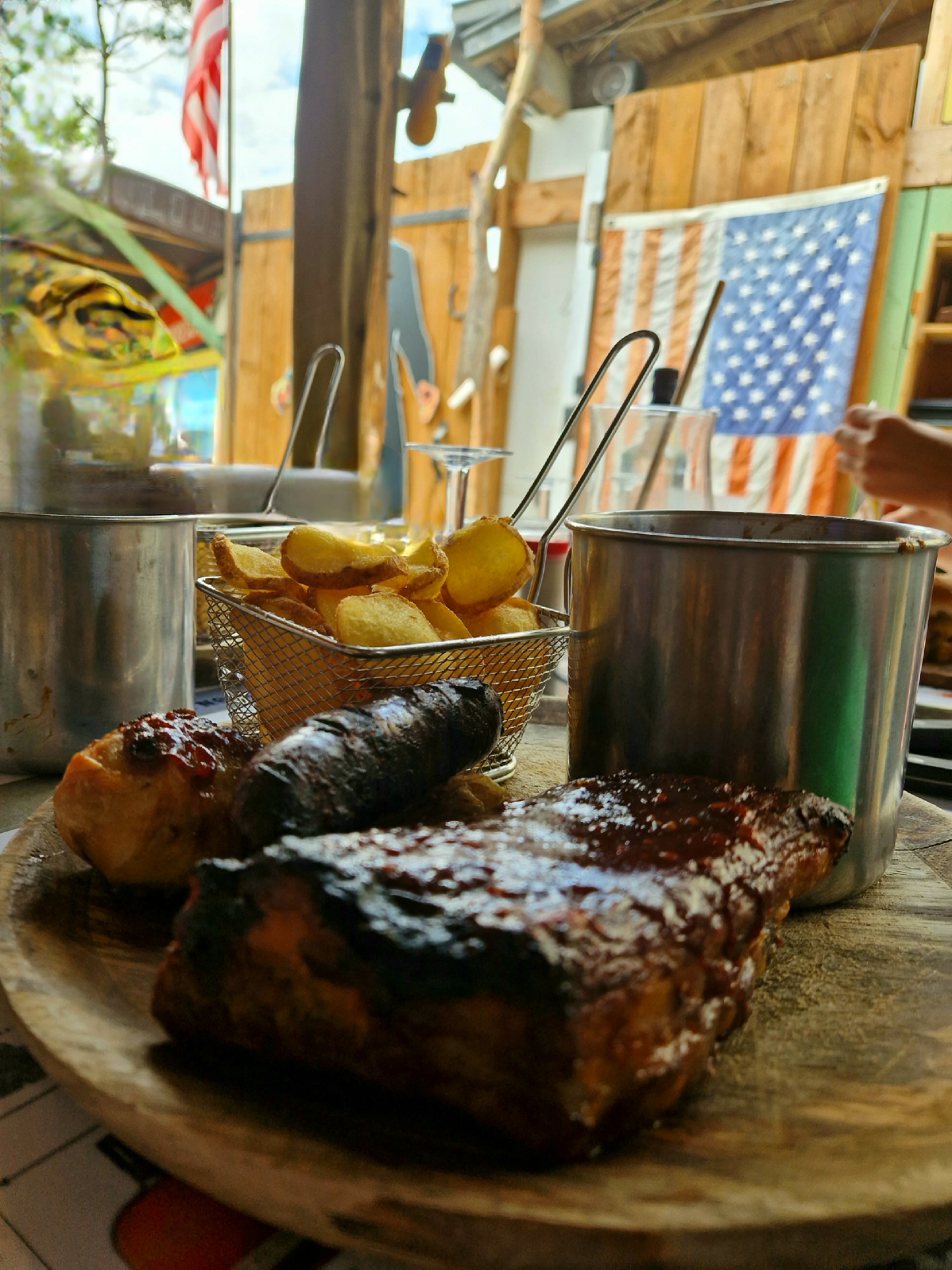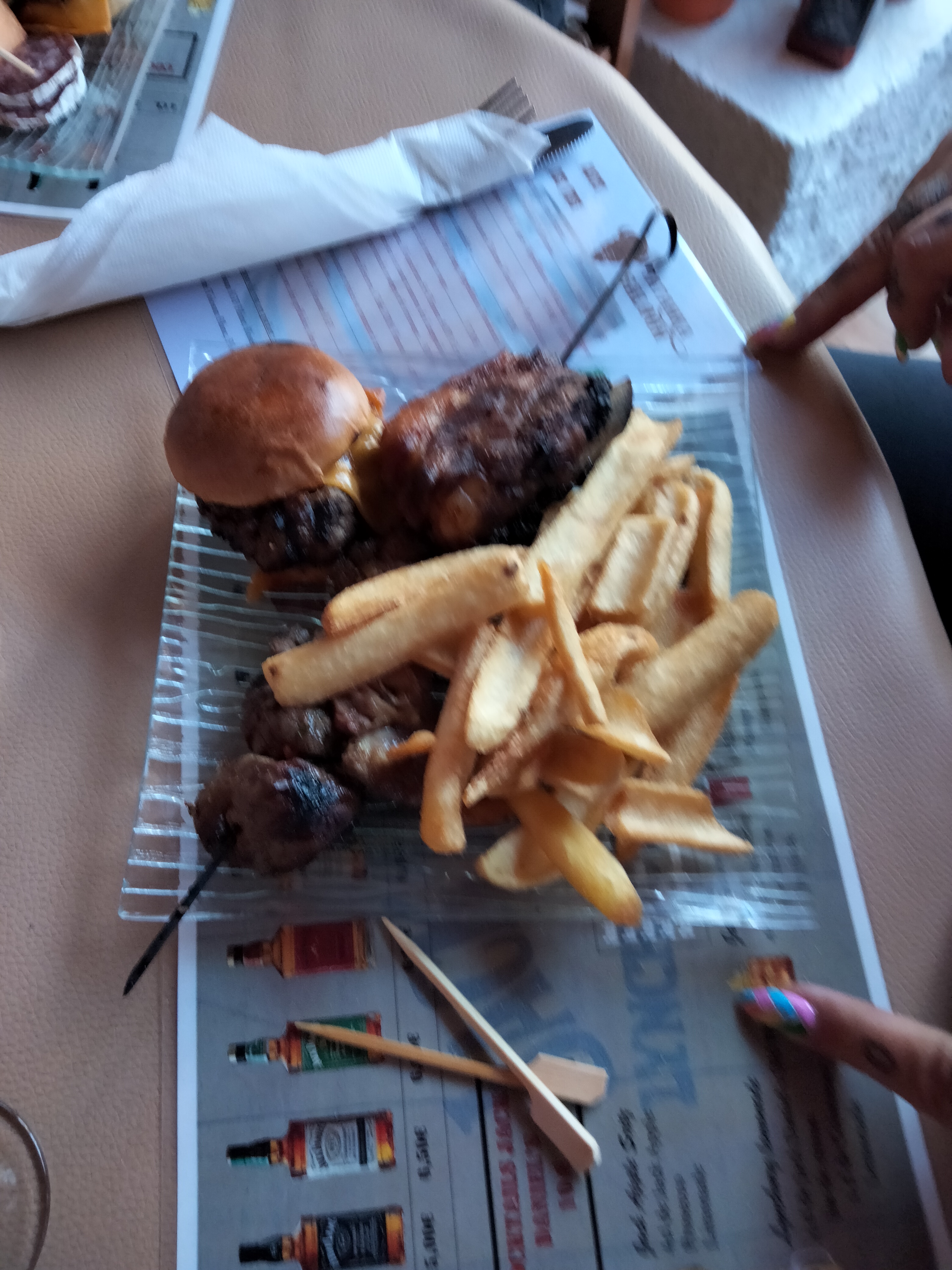 Franchement trop de la balle !!! Mordu de viande, Burger, taré de Jack Daniel. Allez y !!! Il y a des cocktails avec du Jack à balle. Le lieu est vraiment cool. Restaurant en famille ça passe nickel, alors entre amis et surtout si vous faites un road trip. Arrêtez vous !!! Merci à l'équipe et la qualité des viandes et préparation.