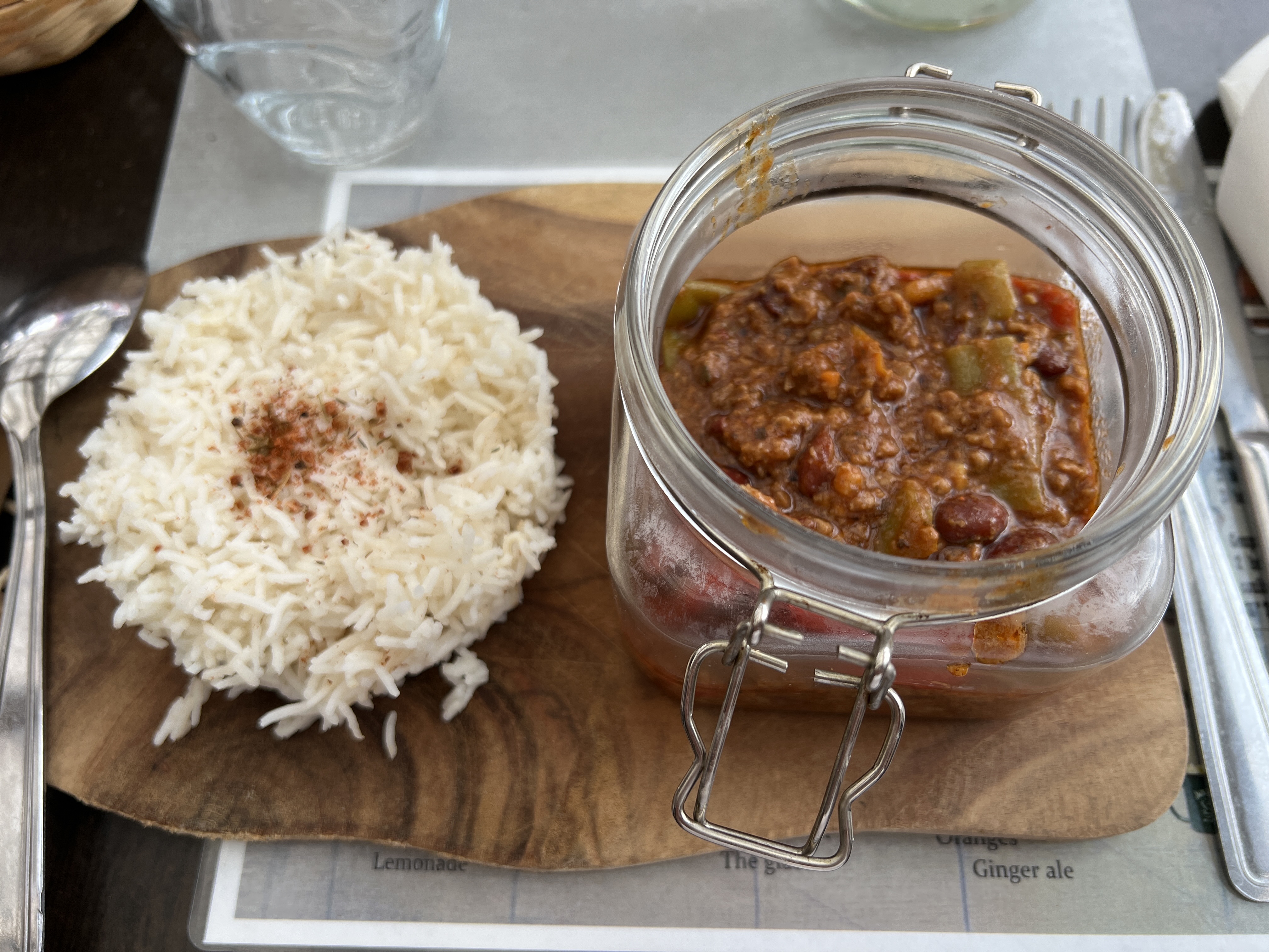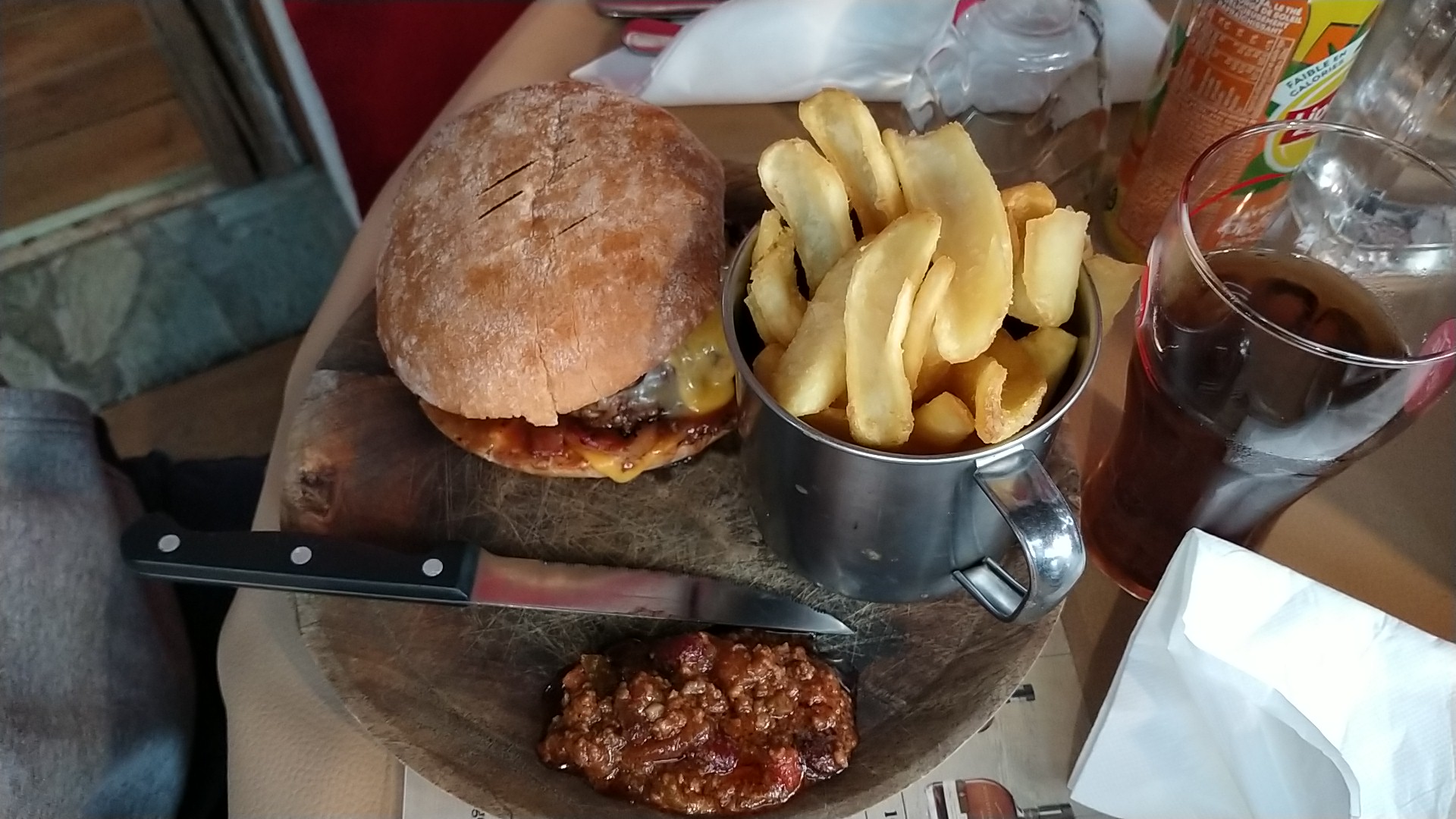 Hyper bon, du bon fait maison. Les frites excellentes, le chili relevé mais pas trop avec des légumes, tout comme il faut, les ribbs caramélisés comme il faut. La mousse au chocolat vaut le détours, en plus la quantité est parfaite surtout pour les amoureux du chocolat. Merci.