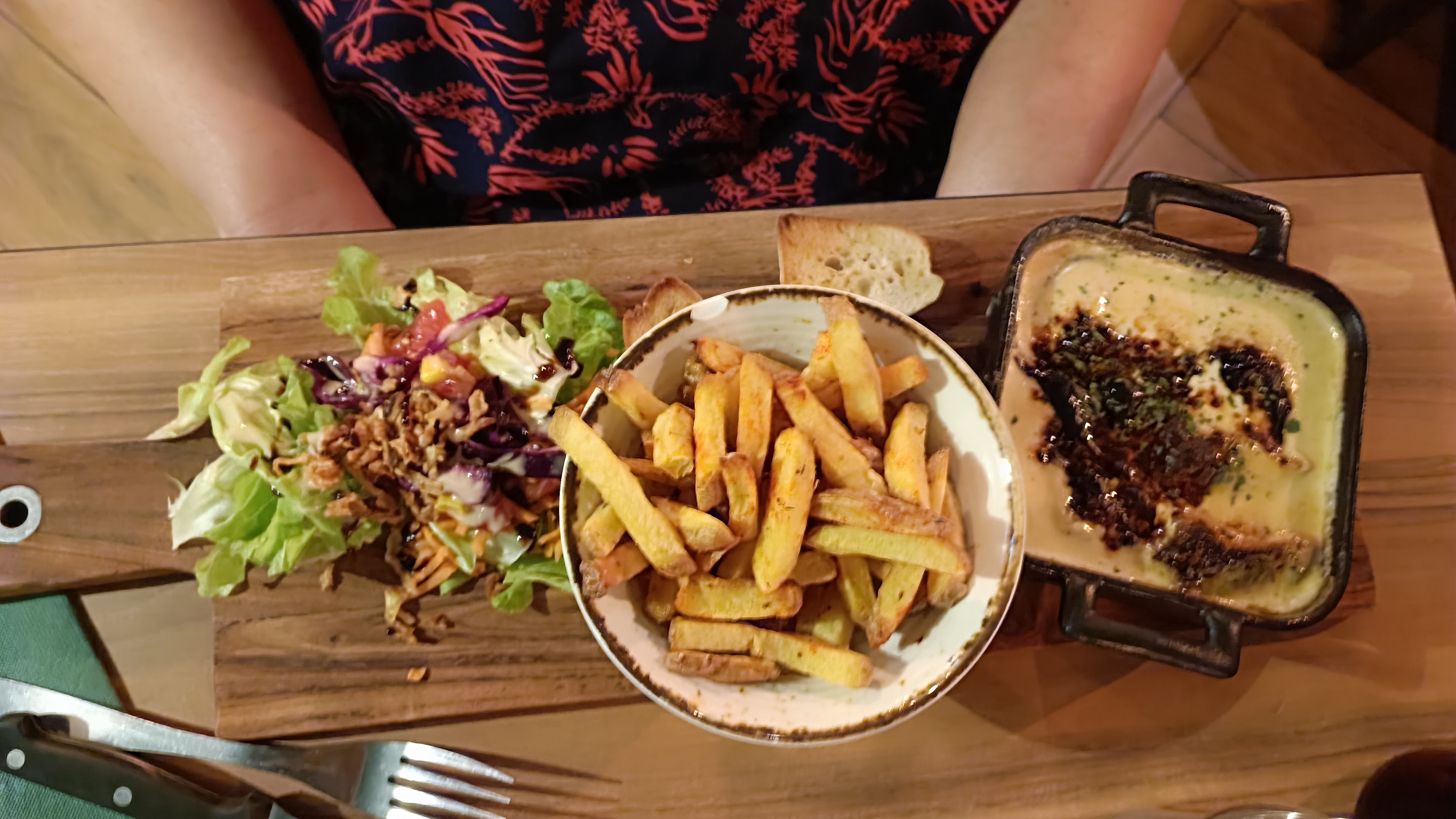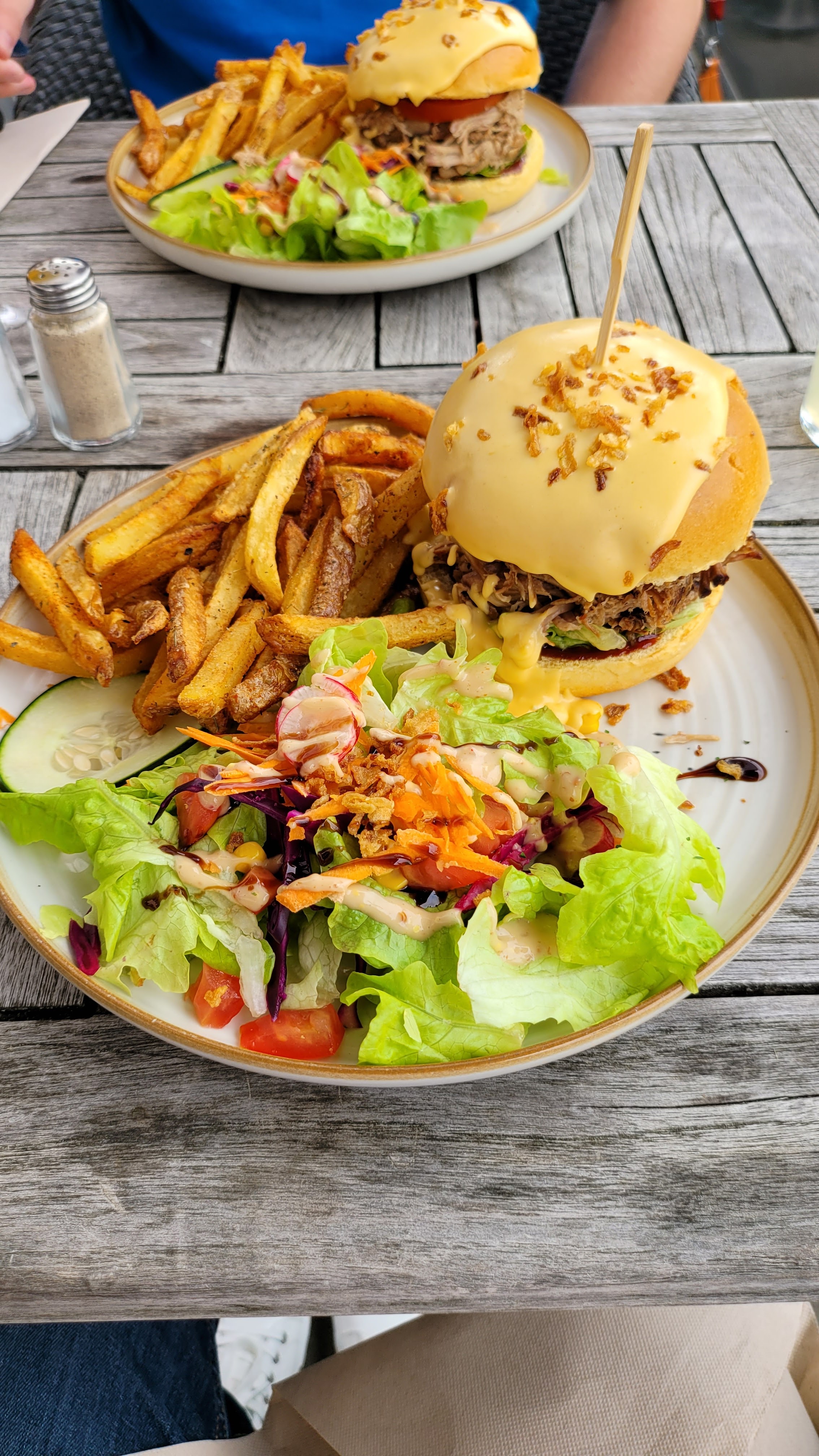 Burgers et salade exelent avec des bonnes frites maison :). Et avec de bon broduit de qualité :) La meilleure adresse du coin :) Bien garnies Accueil au top, souriant