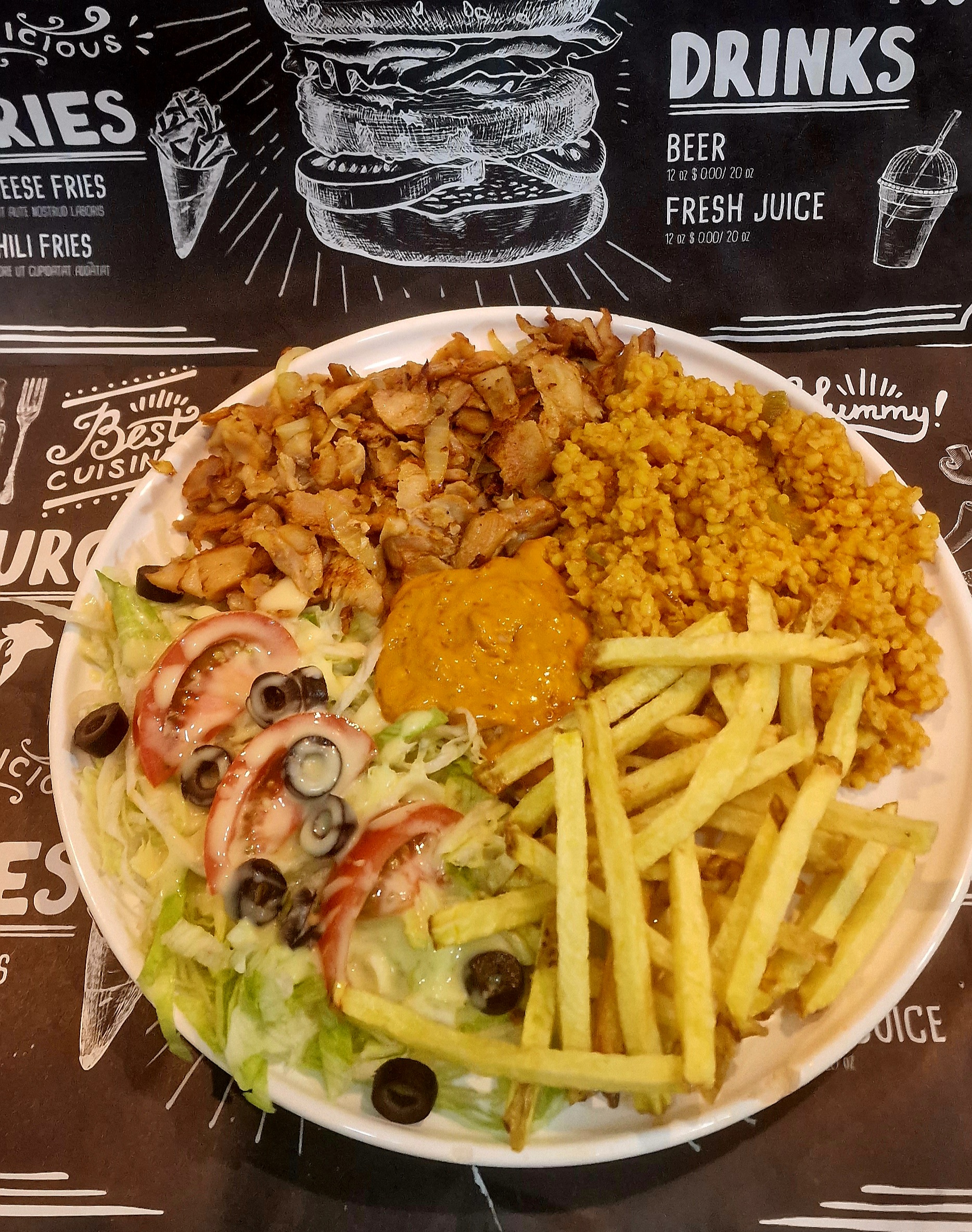 J’ai pris une assiette chicken et le poulet était exceptionnel !!!! Avec une portion généreuse et une salade composée de qualité, cela me gratifie de l’un de meilleurs repas que j’ai pu ingéré.