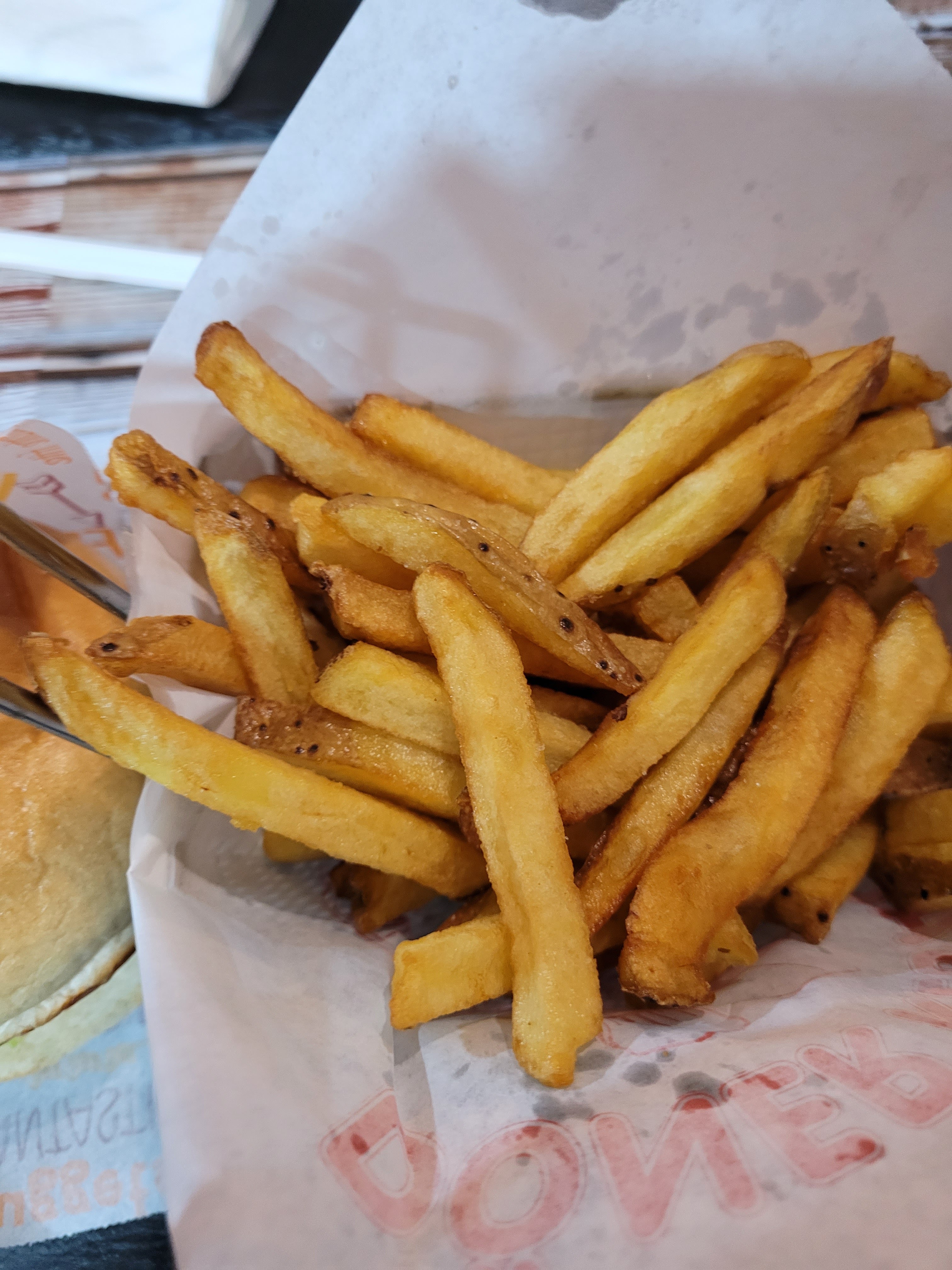 Frites qu’on aurait dit recuites, noires et grasses. Le sandwich aussi vraiment il dégoulinait, les desserts la portion est plus petite que l’emballage et le goût insipide. Je recommande jamais c’est pas possible