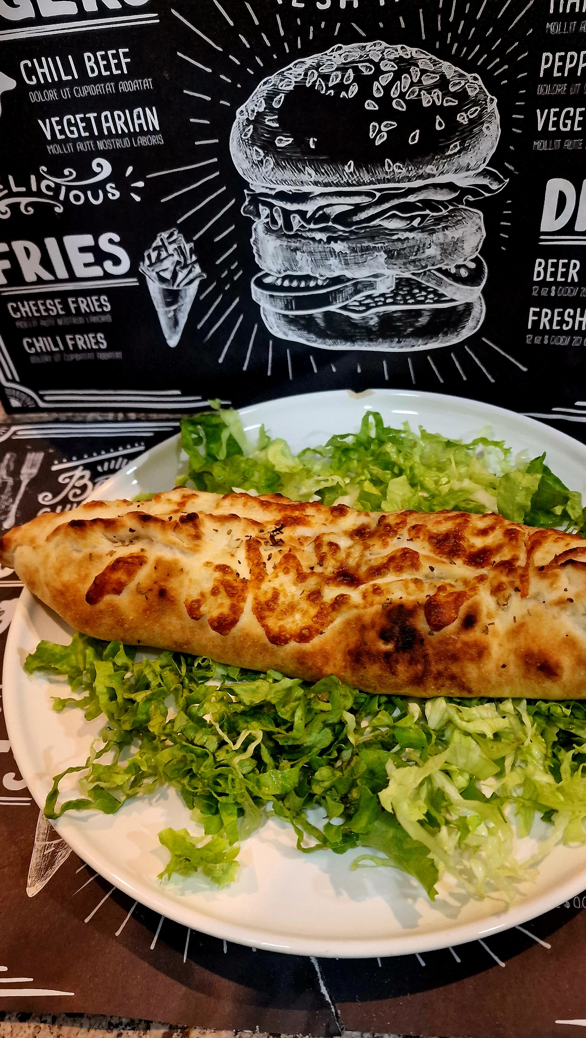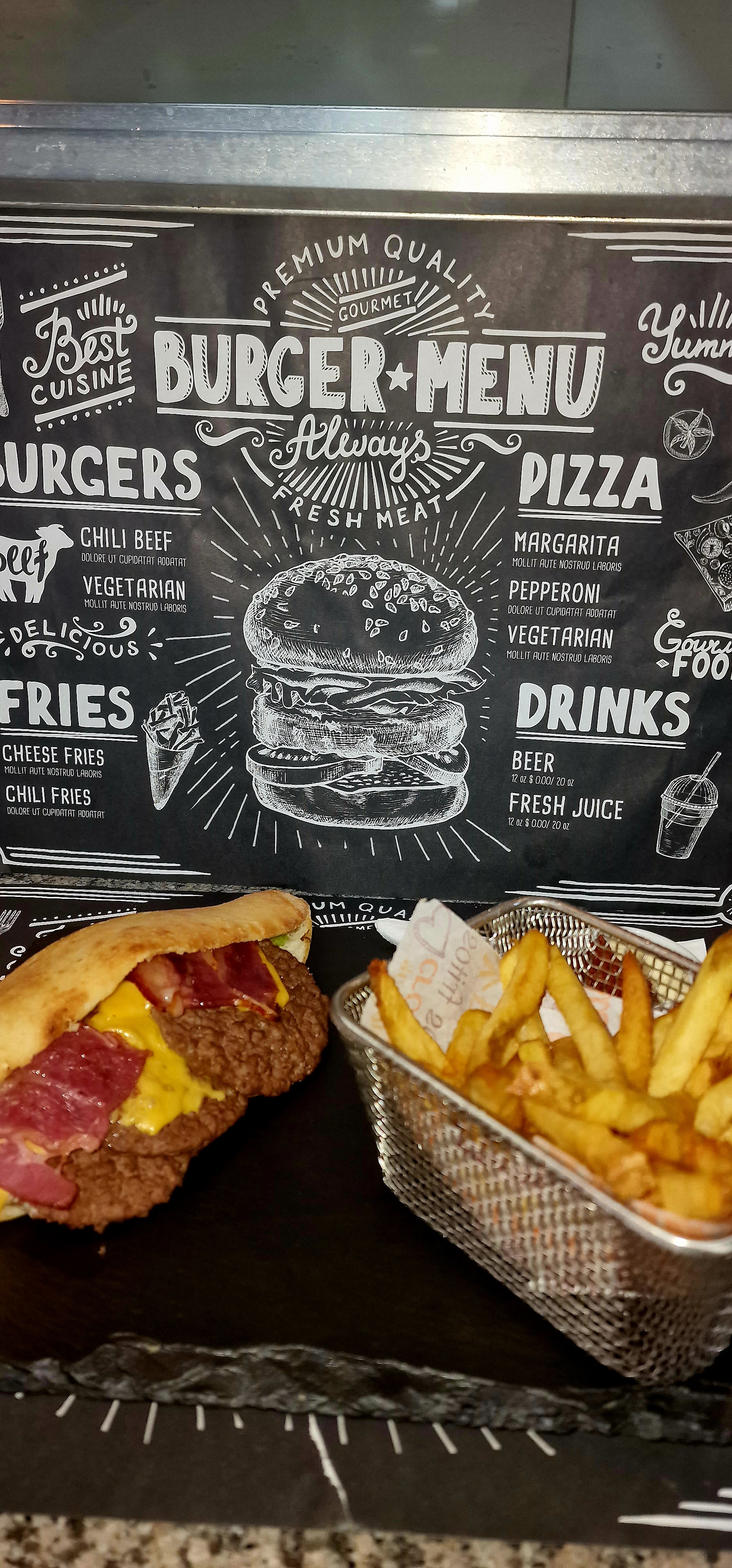 Dommage, on me demande si dans mon burger je veux salade, tomate, oignons, je répond oui, j’attend sagement dans le restaurant je suis la seule cliente, préparation assez rapide. Mais dans mon sandwich je n’ai casi que du pain et de la salade, le steak est tout petit il fait à peine la moitié du pain. Le pain est très bon. Mais j’ai le sentiment d’avoir manger que de la salade de la sauce et du pain, rien d’autre. (Voir photo) les frites ne sont pas fait maison dommage mais elles n’étais pas mauvaises. Attention la vente ne se fait que sous forme de menu.