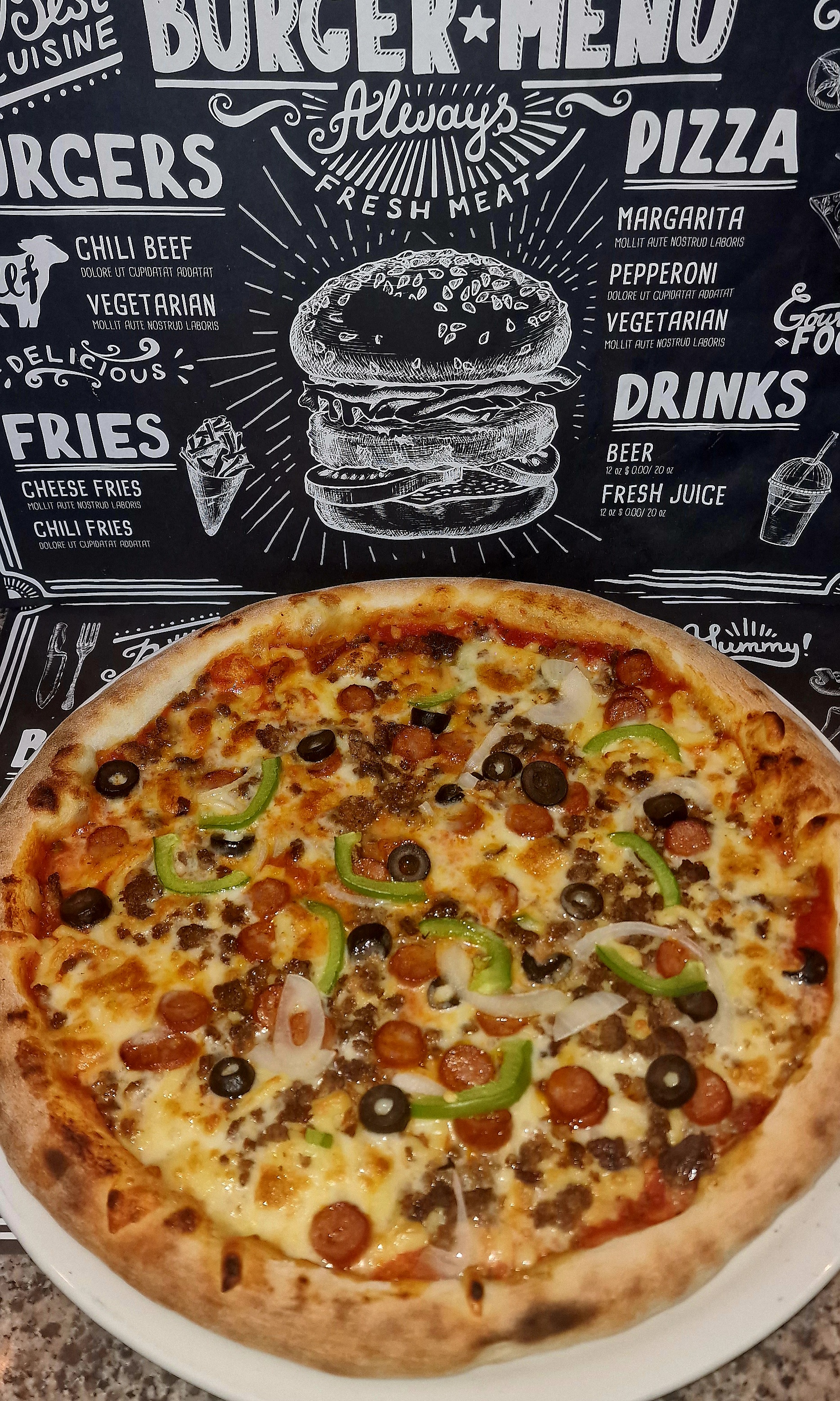 Excellents accueil et produits (salade César, pizzas, burgers, etc...). Je recommande.