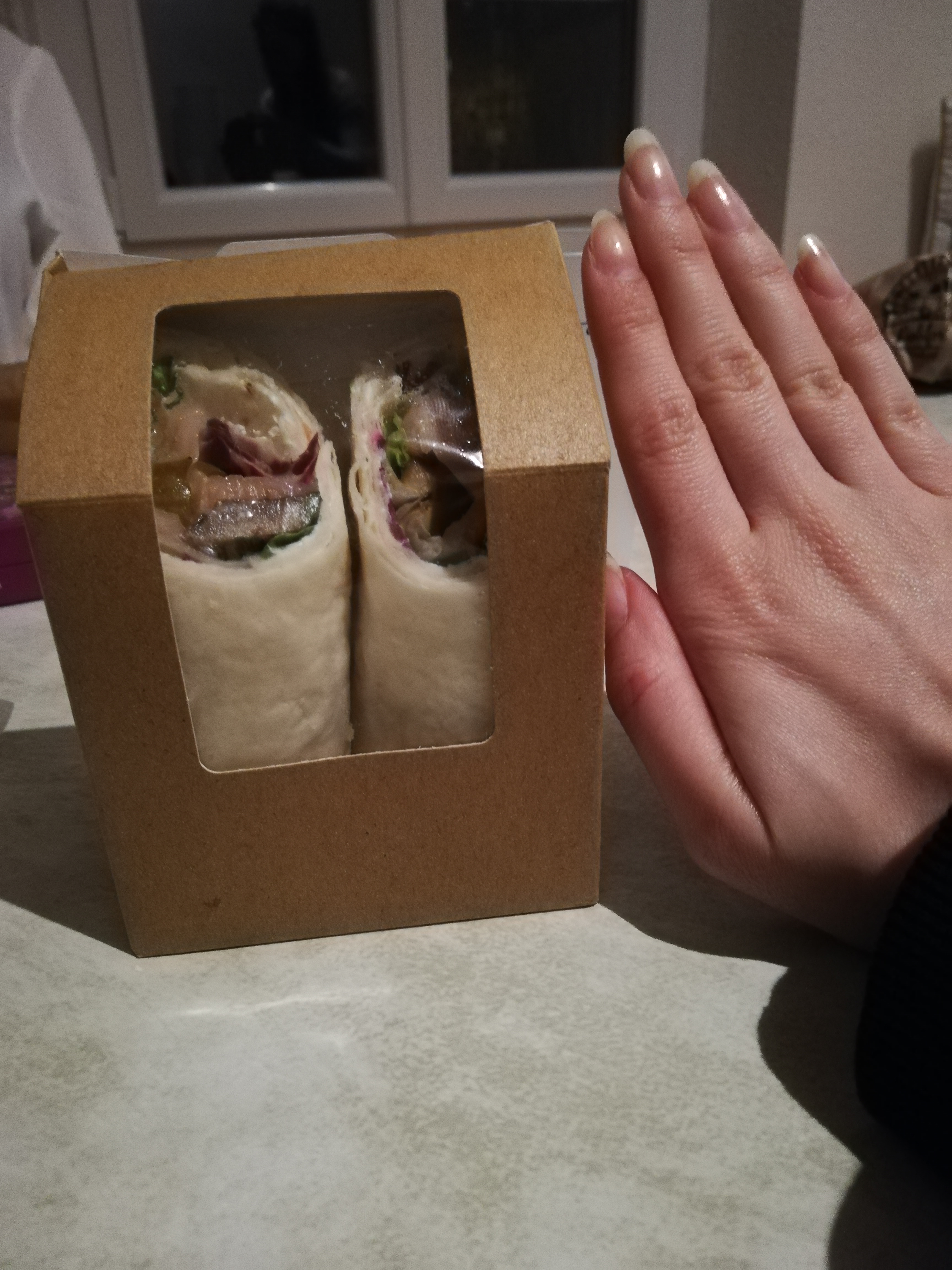 Service très sympathique et réactif, Wrap frais au saumon délicieux, Équipe jeune, continuez comme ca !