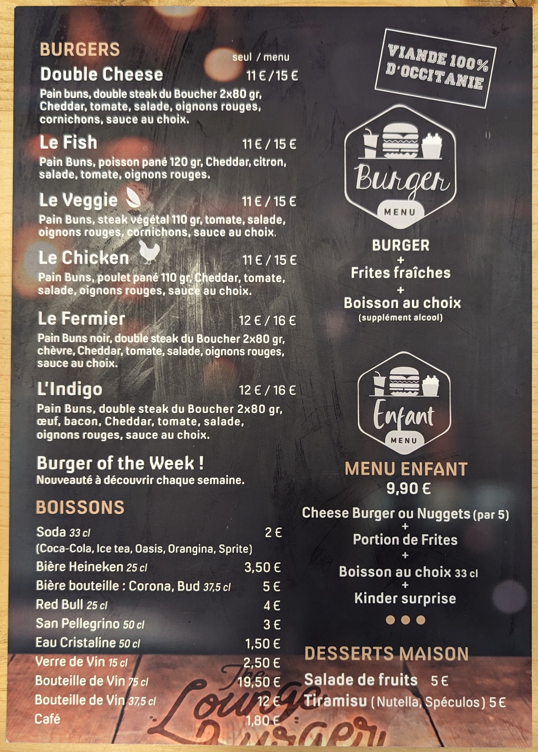 Cherchant un ptit resto Burger, nous avons tenter l'expérience. Qui a était décevante.... Même si la déco est plutot pas mal, et l'accueil sur ce point là rien est à changer au top. Niveau cuisine.... Burger froid, frites pas salé, même si y a du sel sur table.. Le menu enfant était plutôt bon d'après mon fils, mais on annonce un kinder surprise on sert un bonbon... a 9€le menu enfant, même avec des frites maison, faites un effort meme une compote a boire ou autre..s'il vous plaît.. Etant restaurateur aussi, Je n'y retournerai pas et je ne le conseille pas non plus. Bien à vous N.AUGUSTE