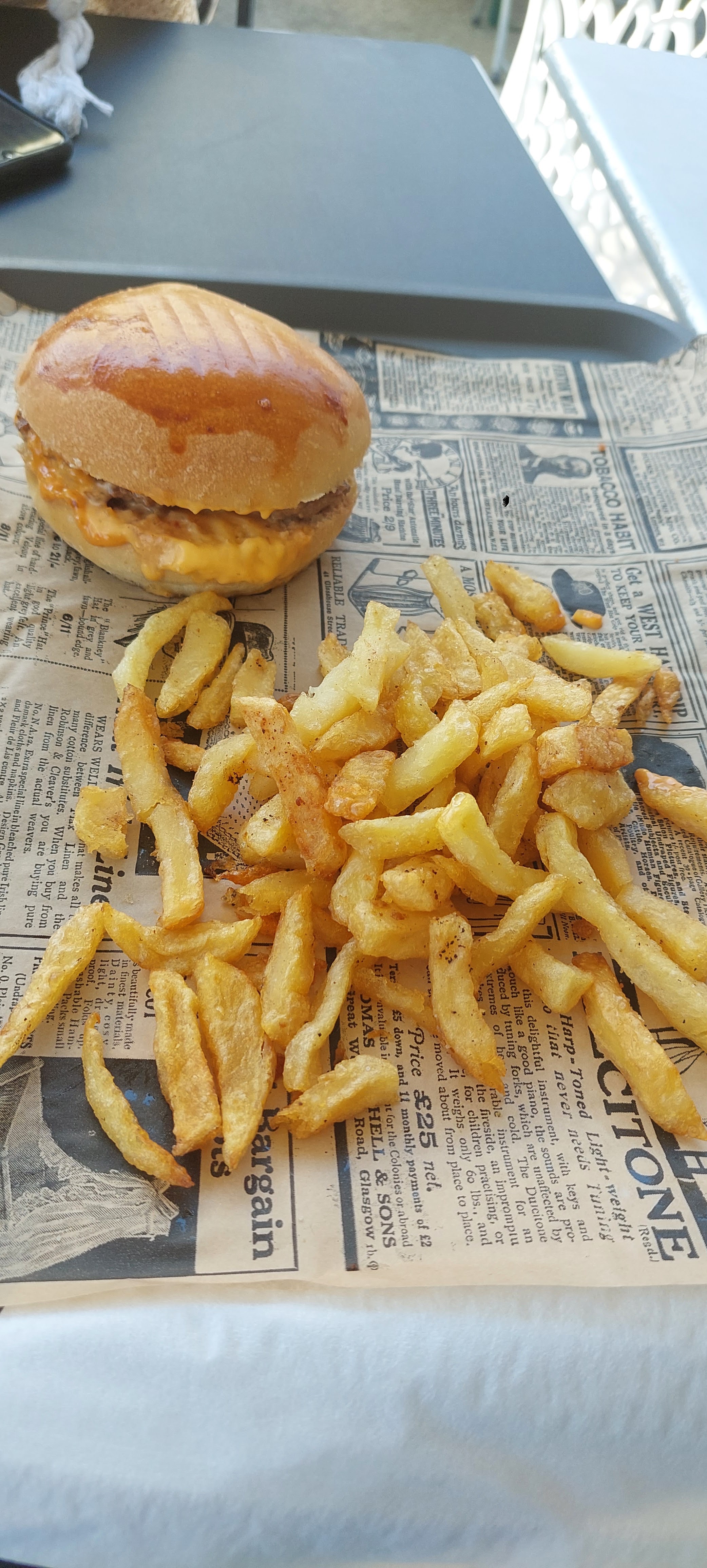Extraordinaire..... Pain maison , viande cuite à la perfection , frites maison,très copieux...... Allez y sans hésitations !!