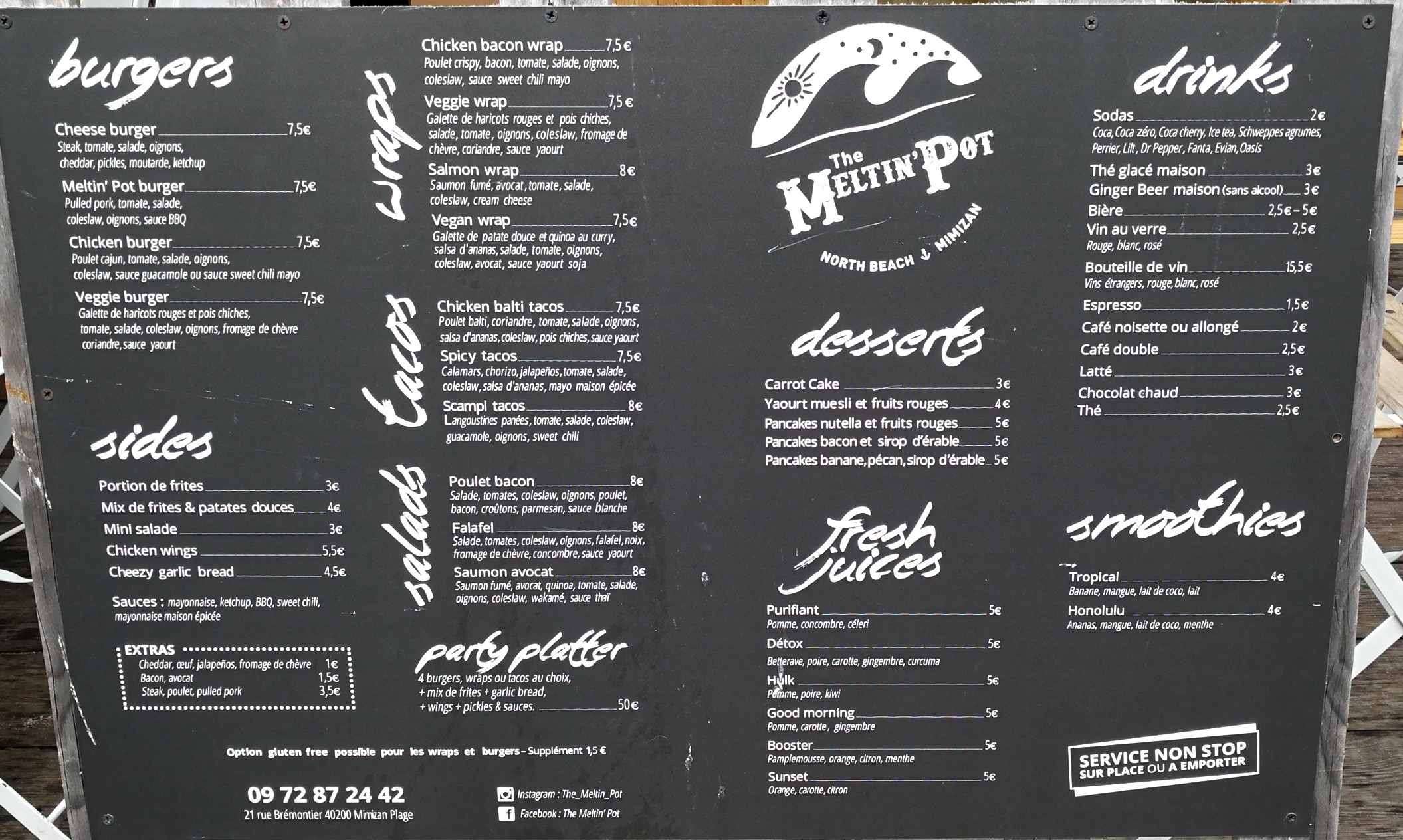 L'accueil est super sympa et la nourriture excellente, une super découverte à Mimizan ! Ajout du 4 août 2019 : de retour à Mimizan après deux ans d'absence, nous avions hâte de revenir manger au Meltin' Pot et nous n'avons pas été déçus. C'est toujours aussi bon, copieux et peu cher. Les produits sont frais et conviennent à tous les goûts et l'accueil est toujours aussi chaleureux. J'ai un faible pour le chicken burger et le mix de frites que je recommande vivement 😀. Allez-y !