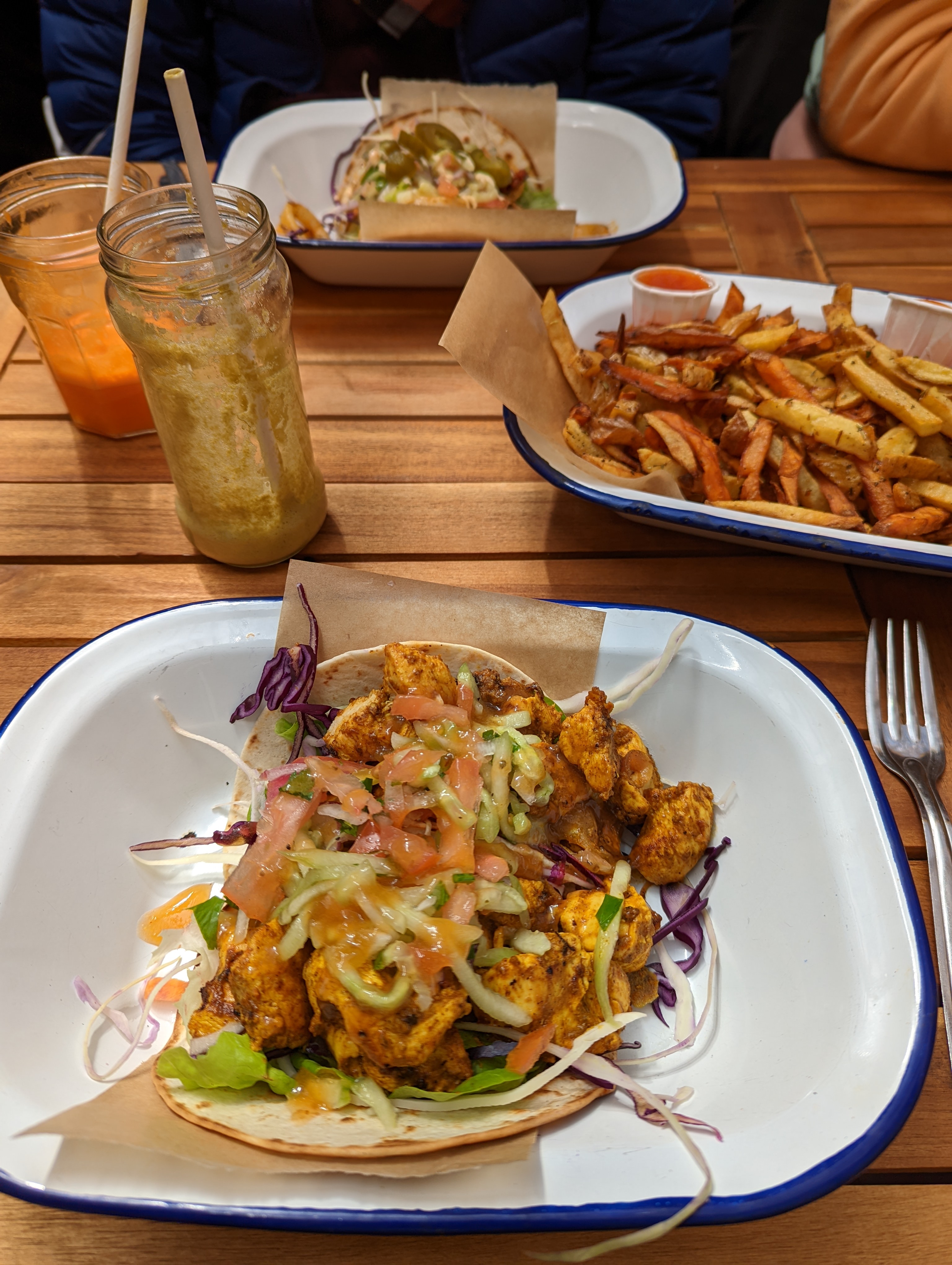 Excellents tacos, salades et hamburger. Les frites patates douces excellentes. Respect règles sanitaires. Restaurants un peu petit donc venir tôt. Rapport qualité/prix excellent
