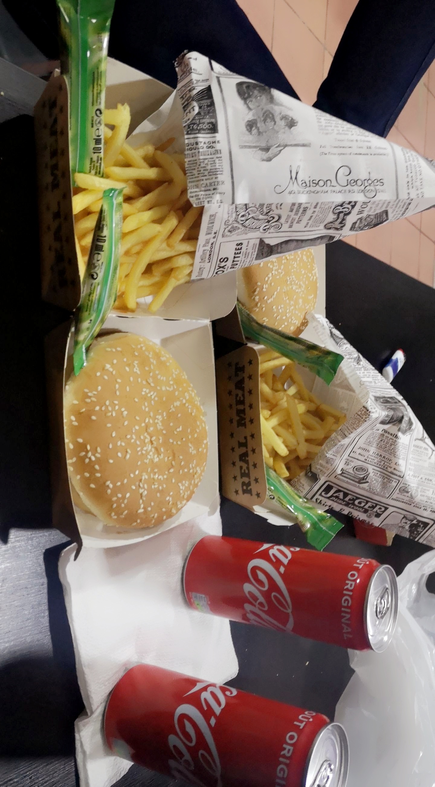 On a commandé ce jour sur Uber Eat, à l'arrivée c'était un menu macdo, seul l'emballage avait été changé. Évidemment, c'est arrivé froid. Merci de votre réponse. Pour ce qui est des produits, nous nous sommes renseignés après coup. En effet, vos produits ressemblent beaucoup à ceux de MacDo; j'ai cru comprendre que cela est fais exprès. Pour un client qui s'attendait à une autre expérience cela fût perturbant.