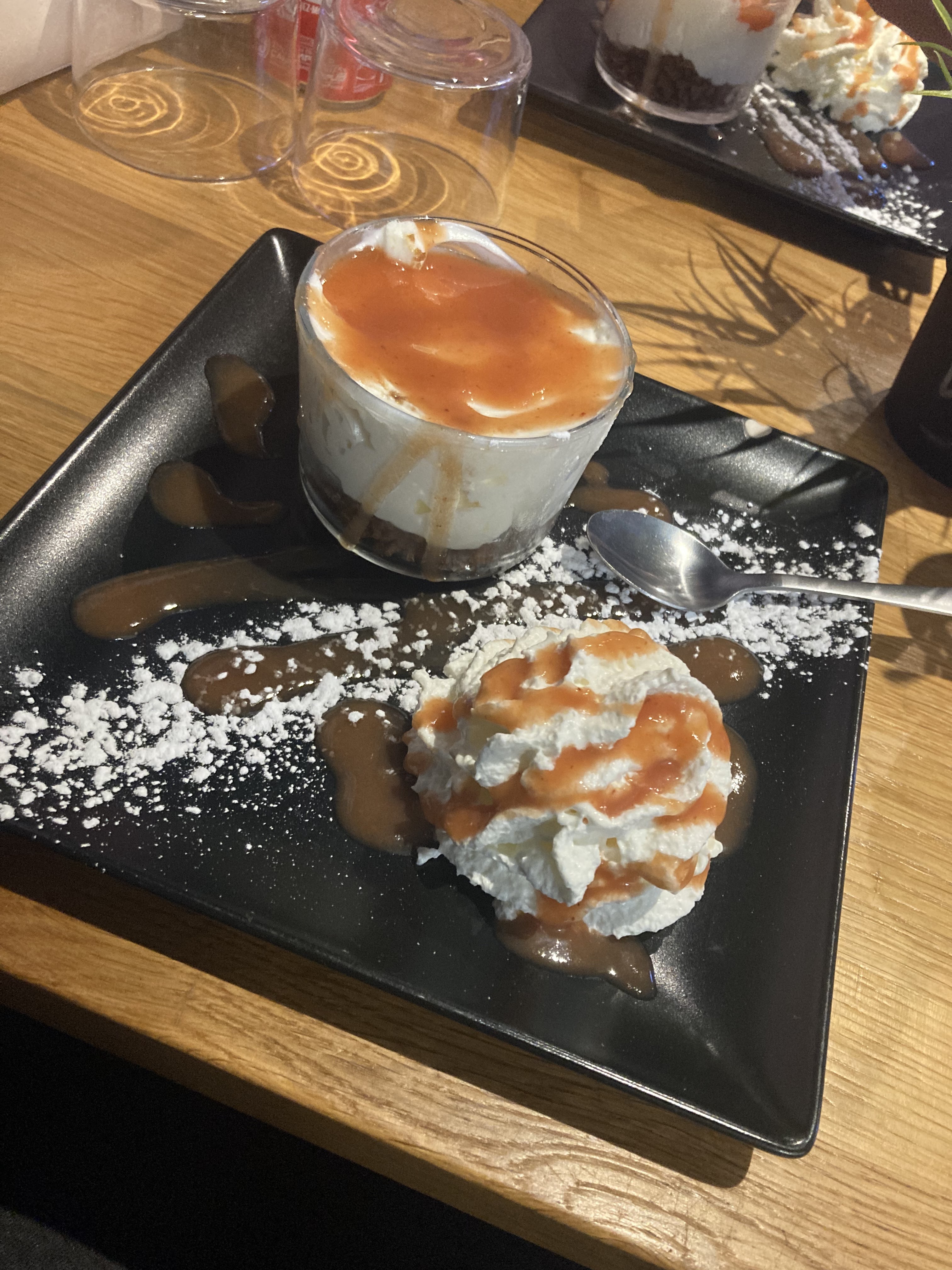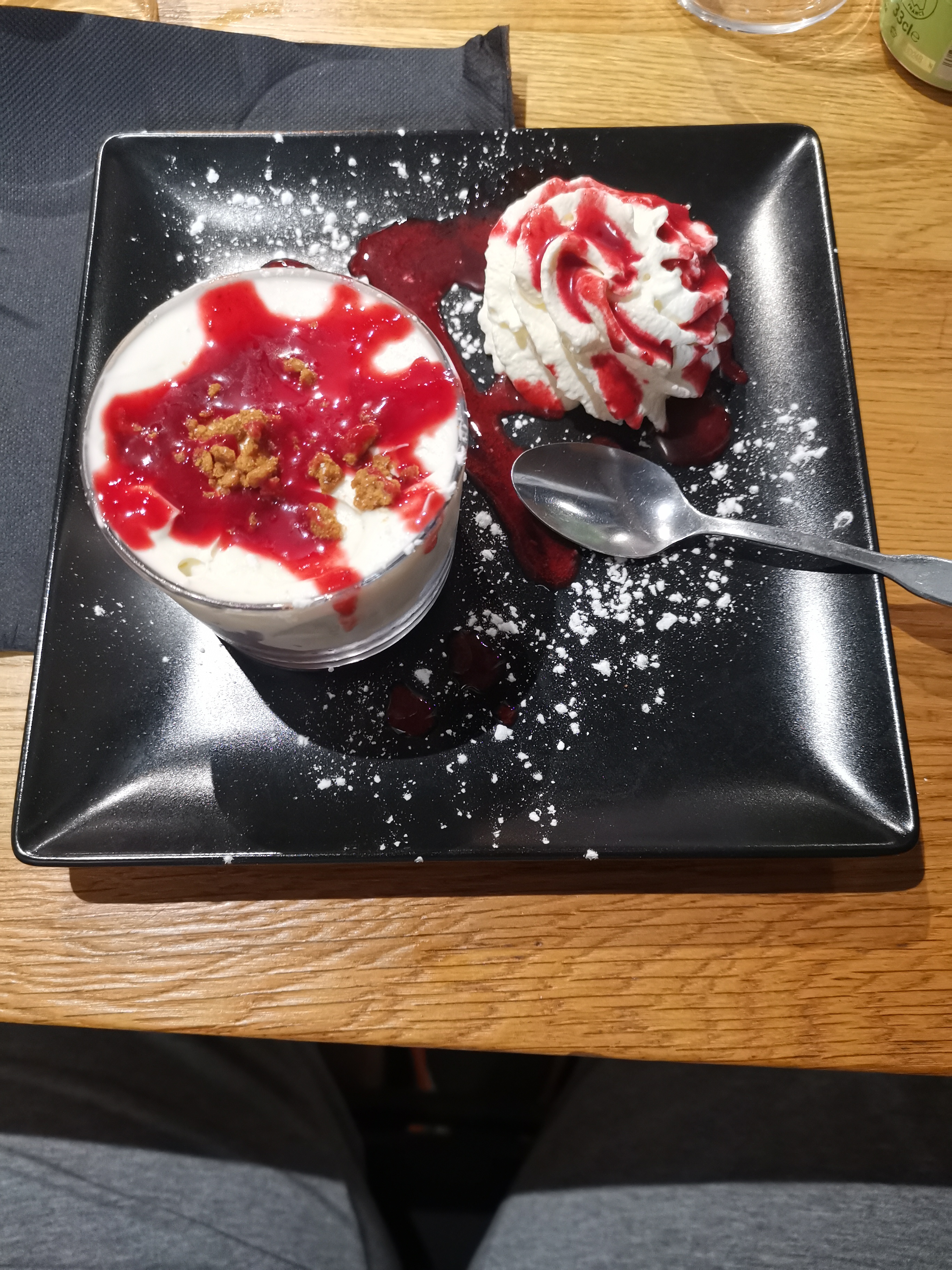 Un pur délire leurs Burgers et leurs frites. Si j'avais pu j'en aurai manger un deuxième !!! J'ai également pris le dessert fait maison : verrine cheese cake aux fruits rouges, une tuerie.