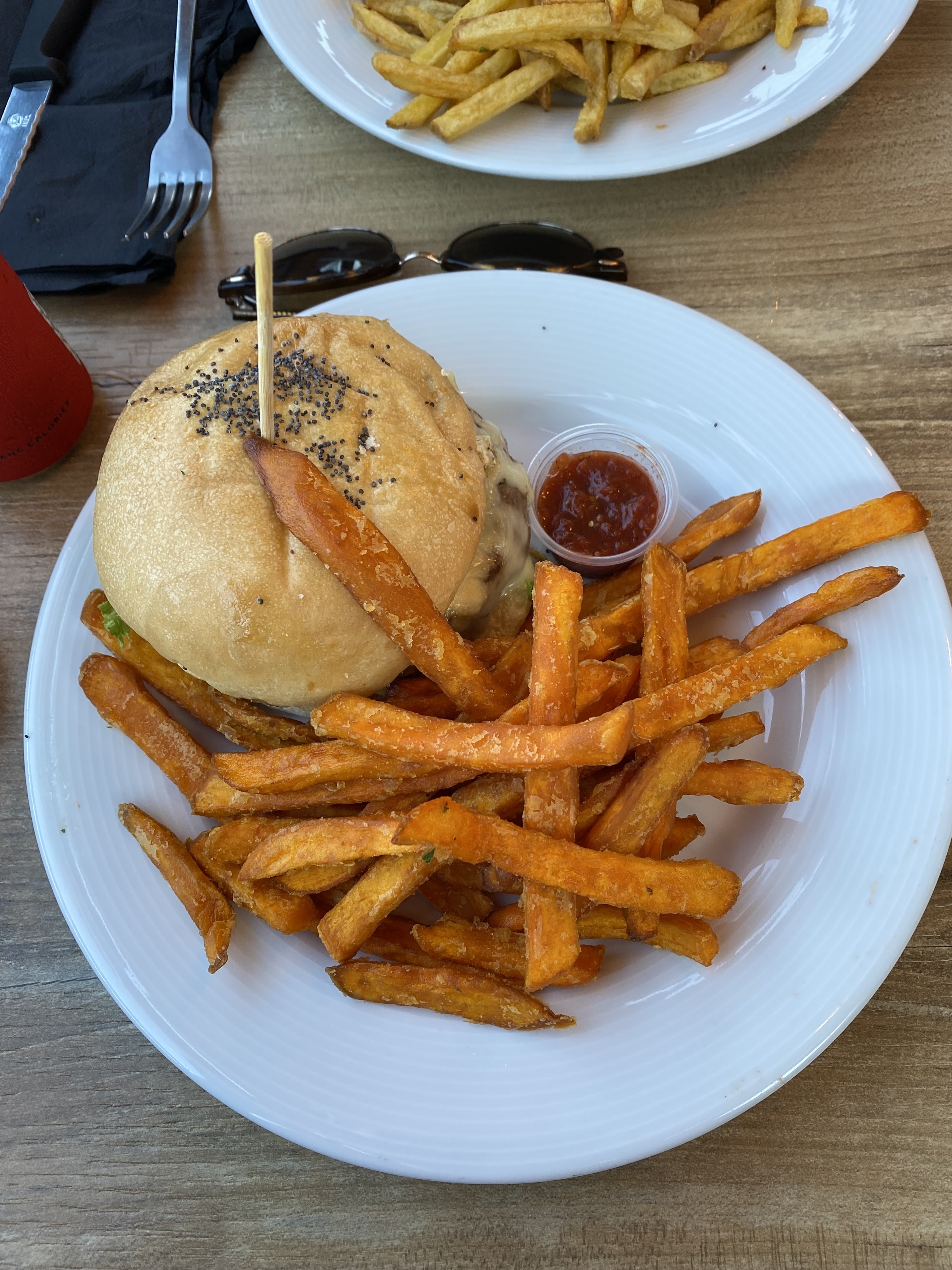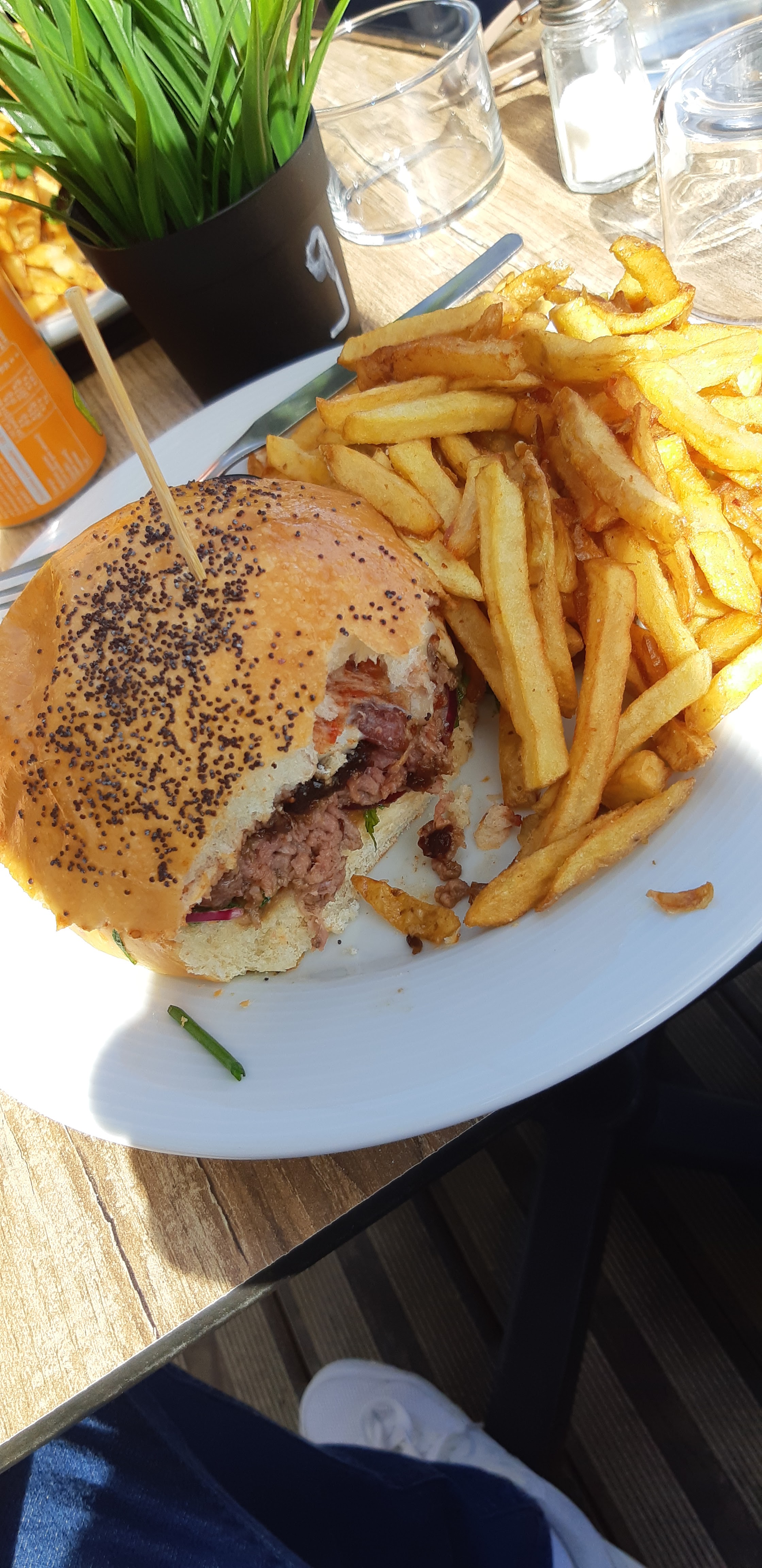 Pas pensé à prendre un cliché avant😂... C'était trop bon 😋 burger excellent et frite de patate douce...service rapide et très agréable... Je recommande fortement