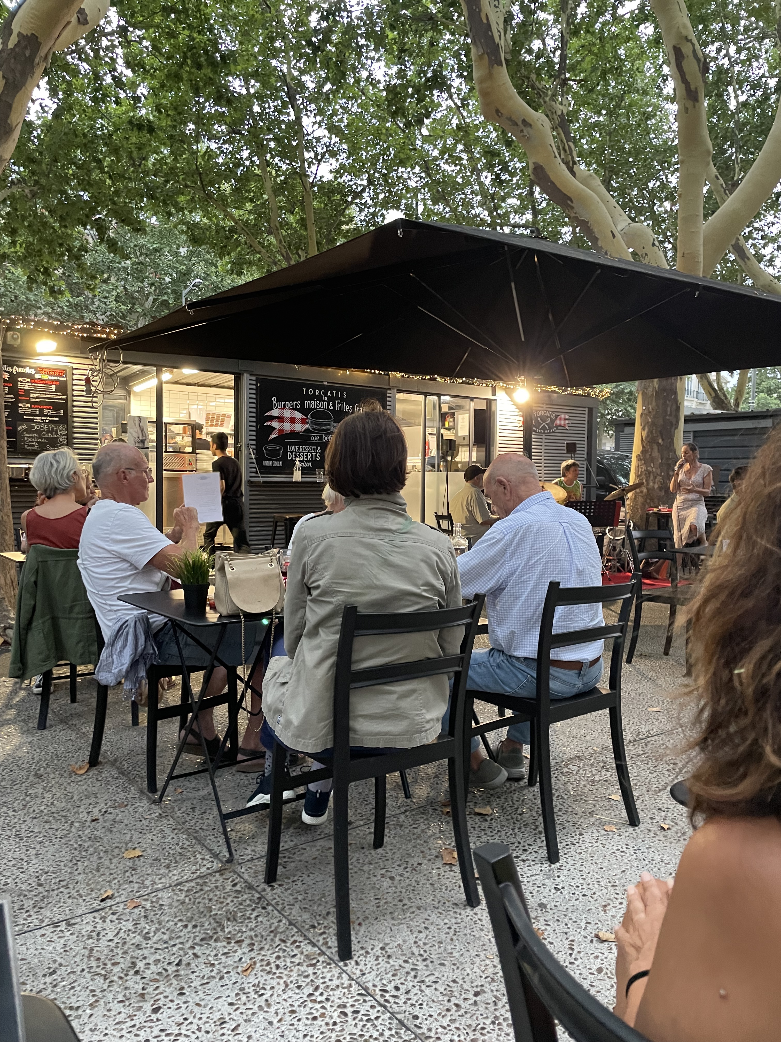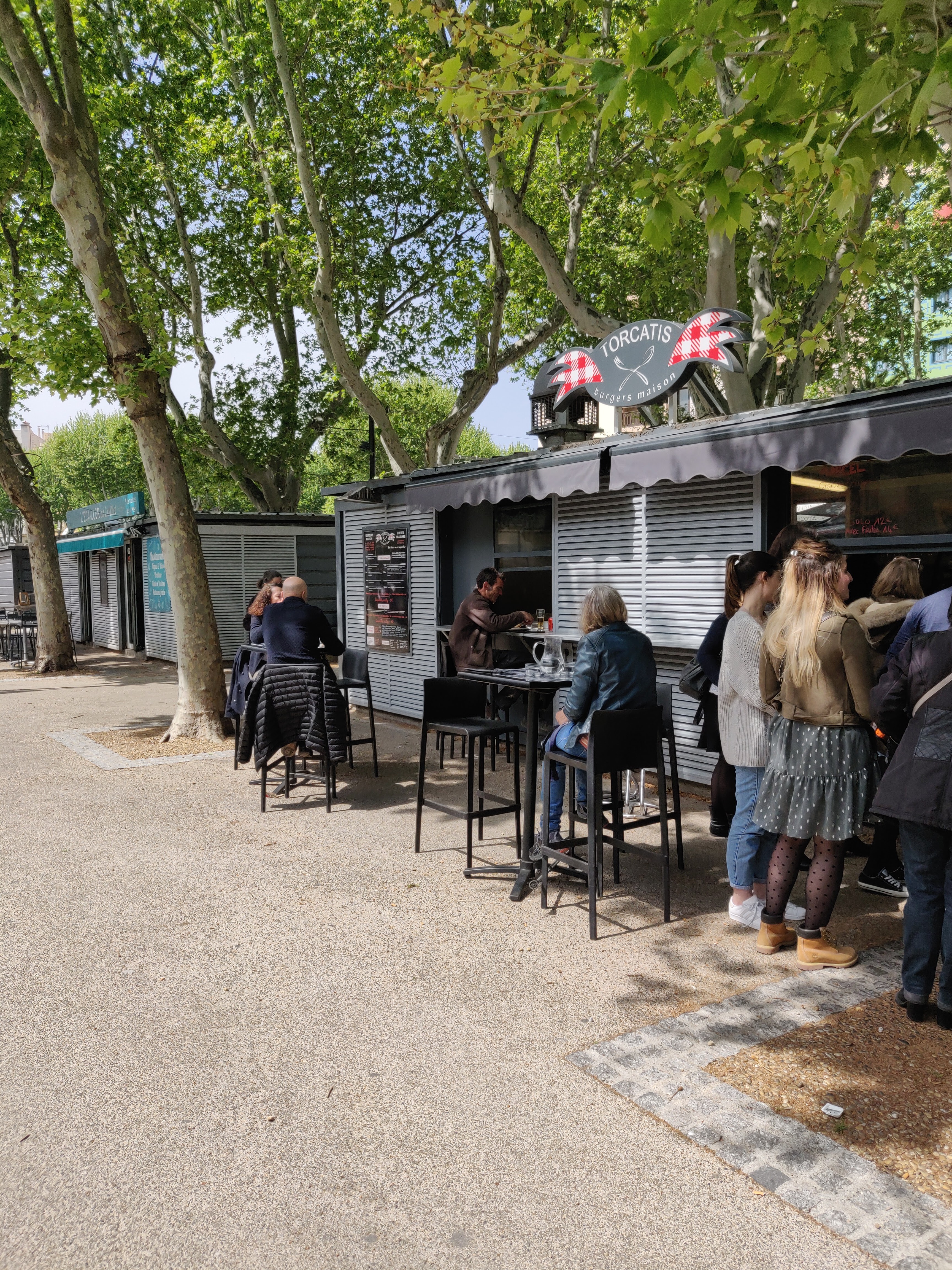 Très bien pour le lieu (en plein air, sous les allées de platanes; idéal pour les gamins), mais pas pour l'assiette (burgers trop sucrés avec steaks trop cuits), mieux vaudrait un simple steak-frite cuit correctement, ou de la saucisse, c'est plus difficile à rater. Bonnes frites. Service jeune et sympa.