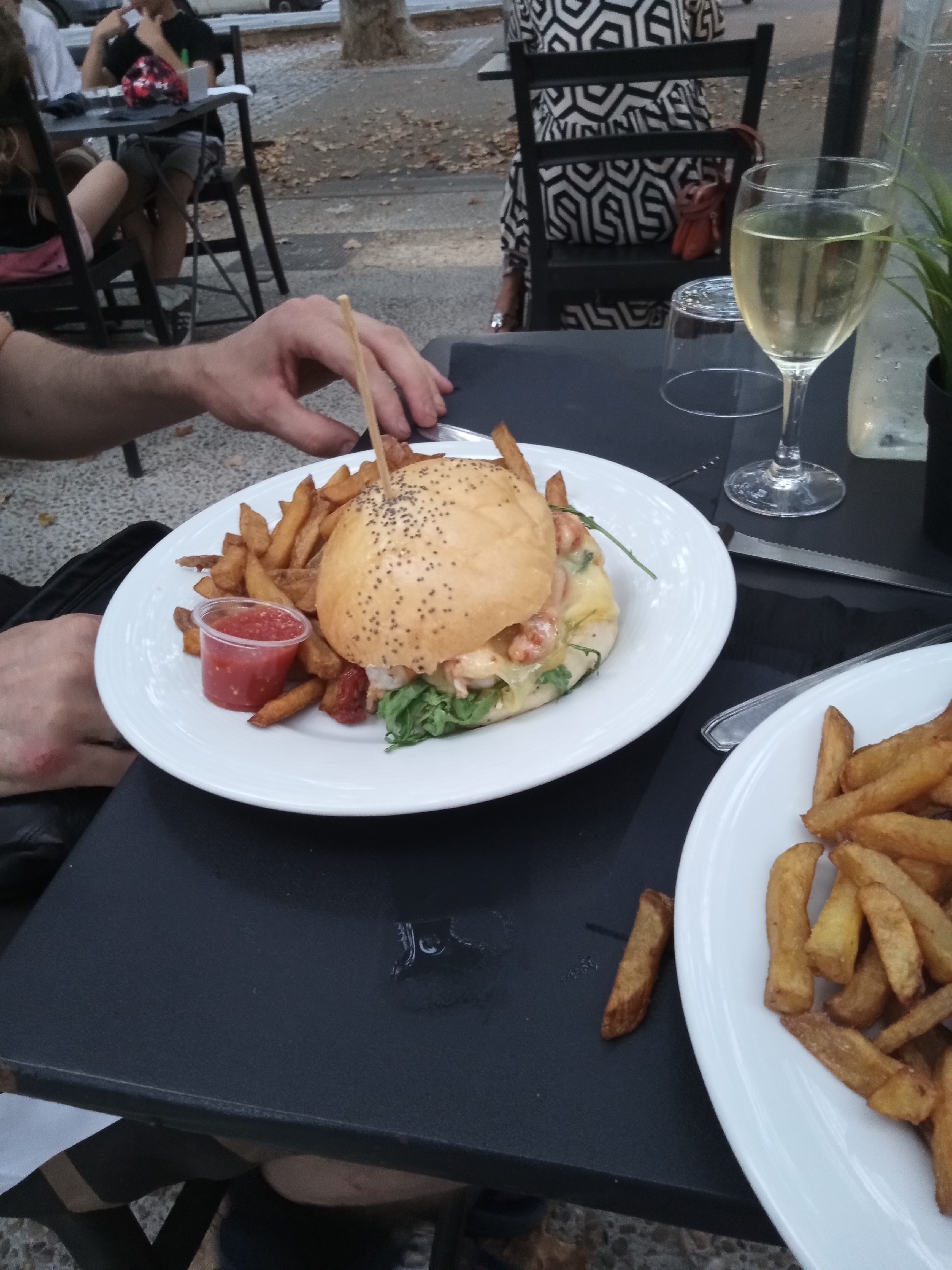 Nous avons commandé 2 hamburgers / frites, Que nous avons mangés sur un banc cause covid. Les pigeons ont été contents, les frites étaient tellement dégueulasses, grasses et froides, que je leur ai tout donné Concernant le burger je l'ai mangé pour ne pas gaspiller. Je n'y retournerai pas !!!