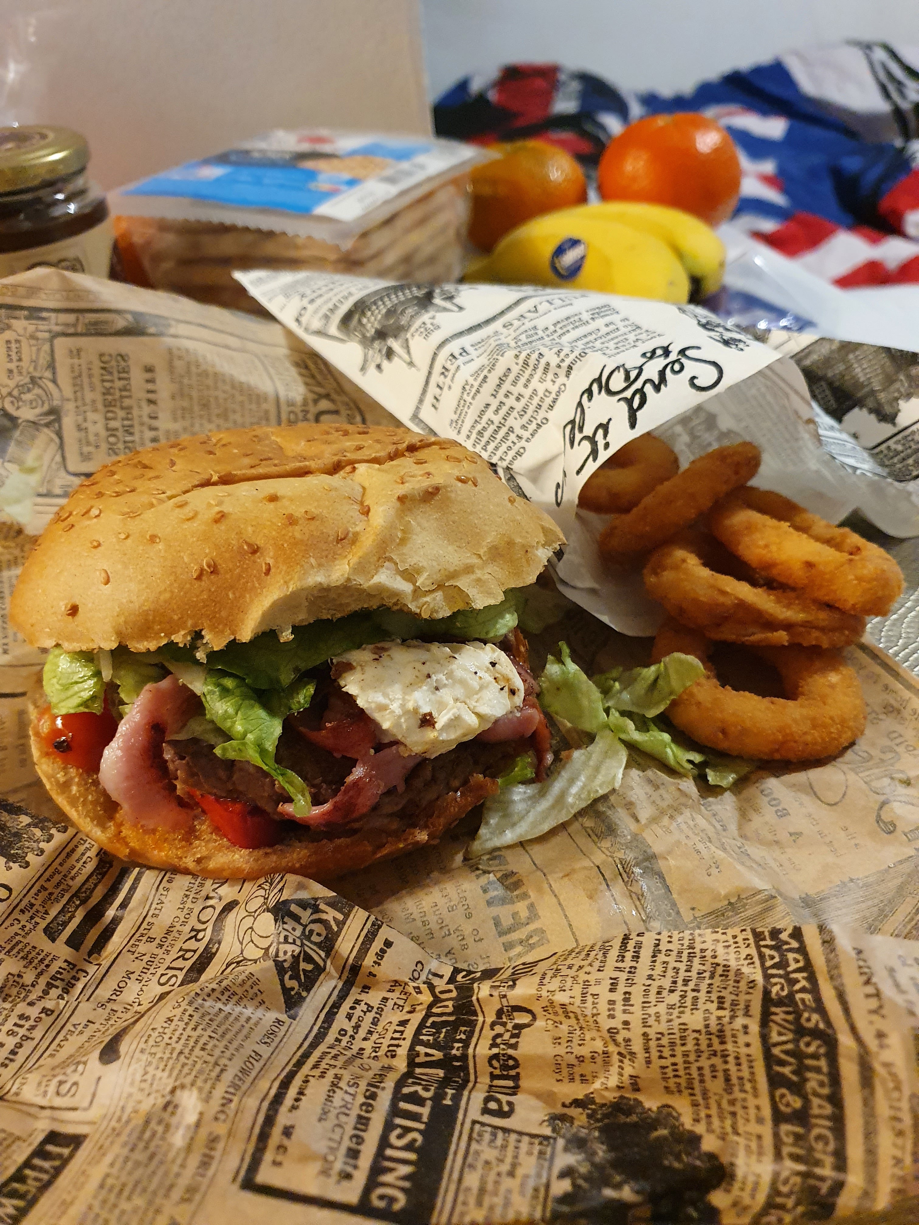 Commandé par le biais de Delivroo. Excellent Burger, chaud à point, beignets d'oignons excellents. Au top